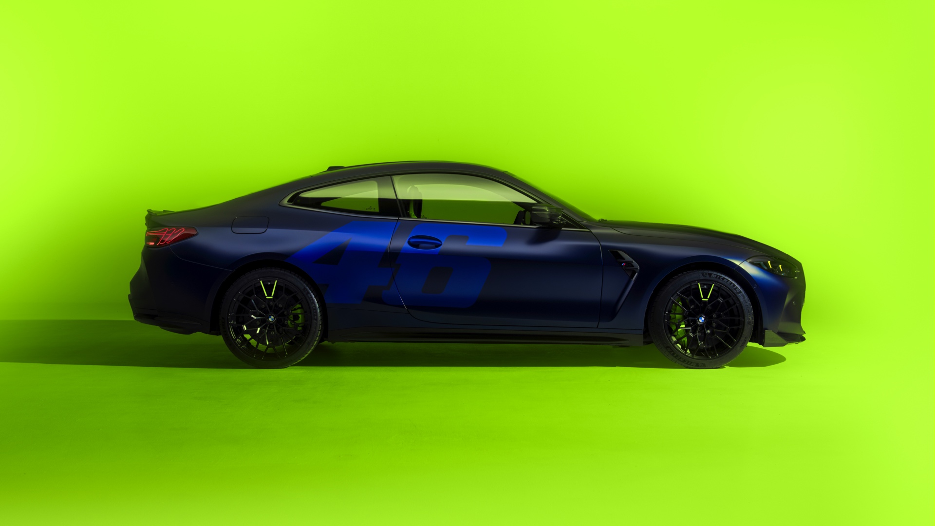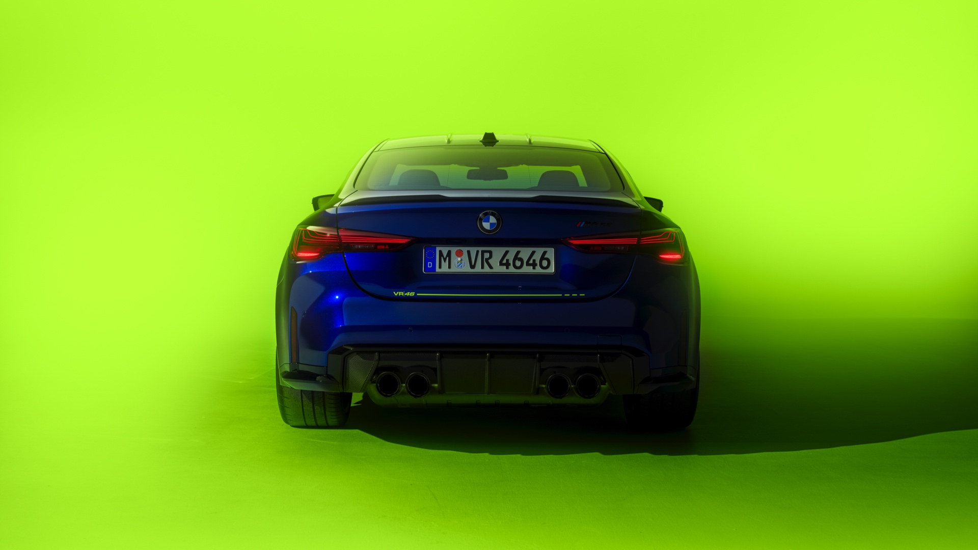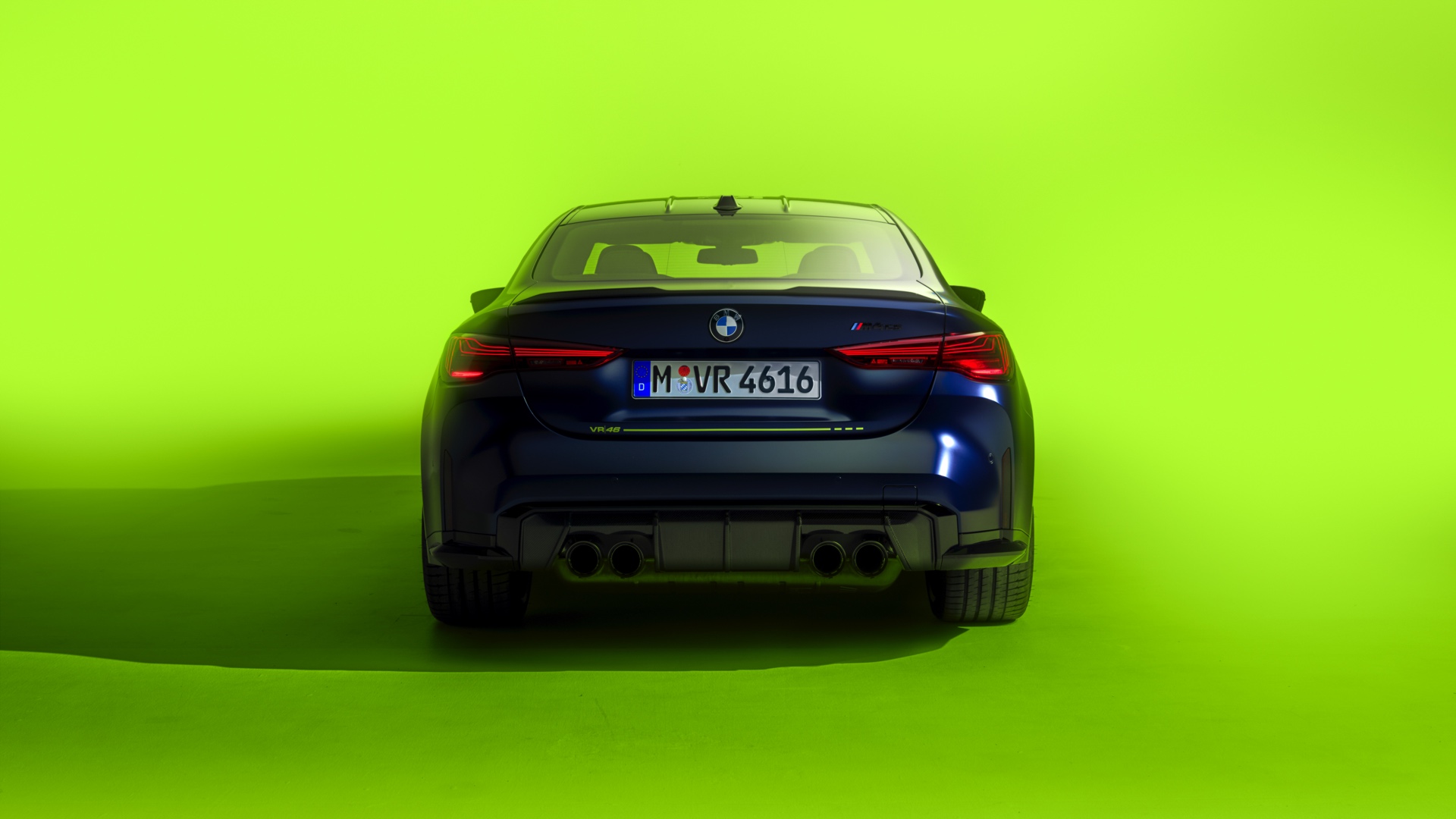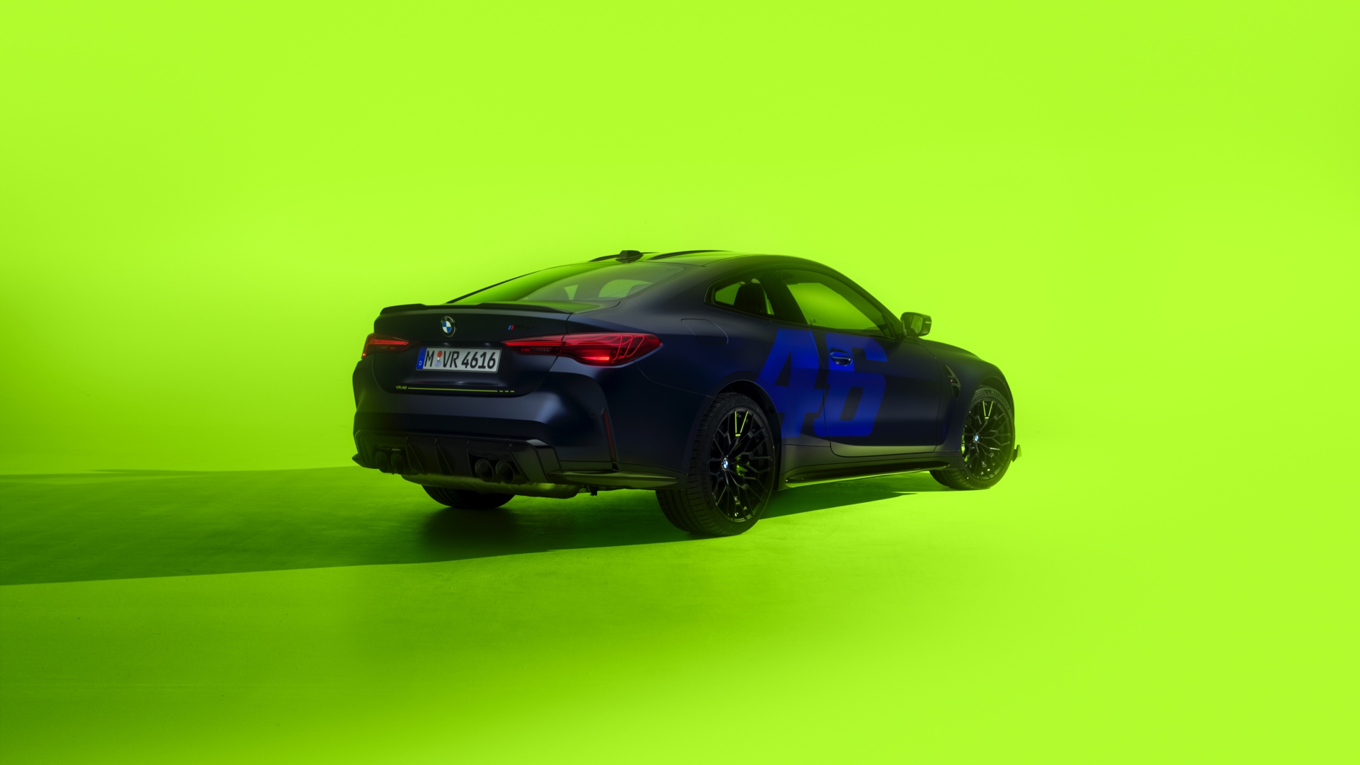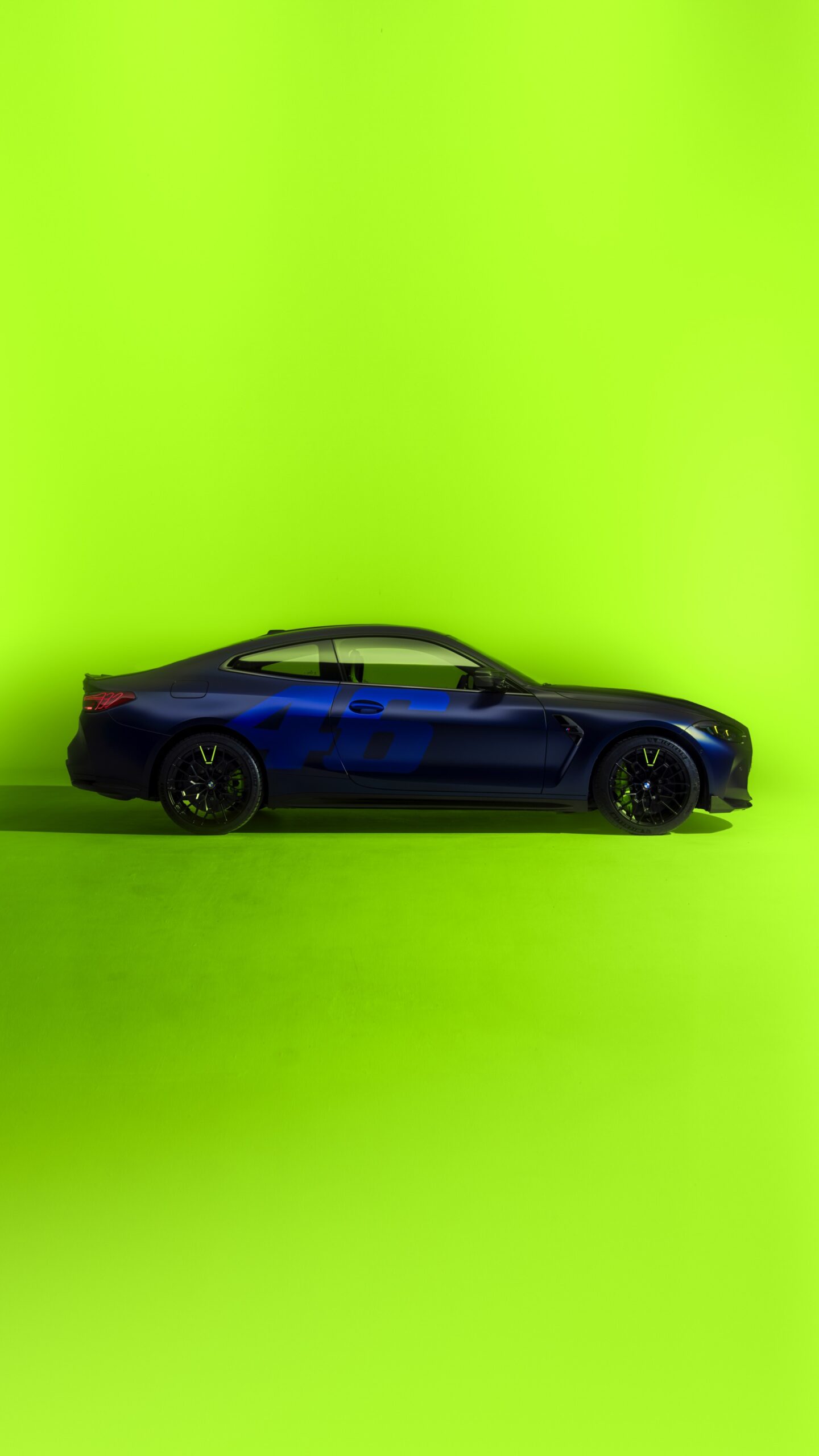 Im Innenraum darf Gelb ebenfalls nicht fehlen, dominierende Farbe ist aber das Nachtblau der Innenausstattung. Besondere Hingucker sind die gelbe 12-Uhr-Markierung, die leuchtende VR46 in den Rückenlehnen und die geprägte 01|46 auf dem Ablage-Pad der Carbon-Mittelkonsole.