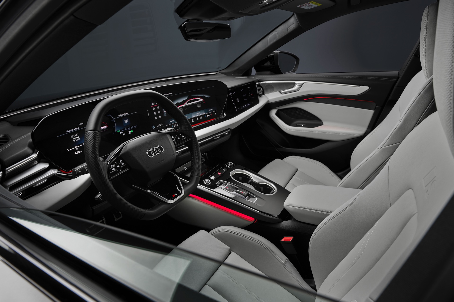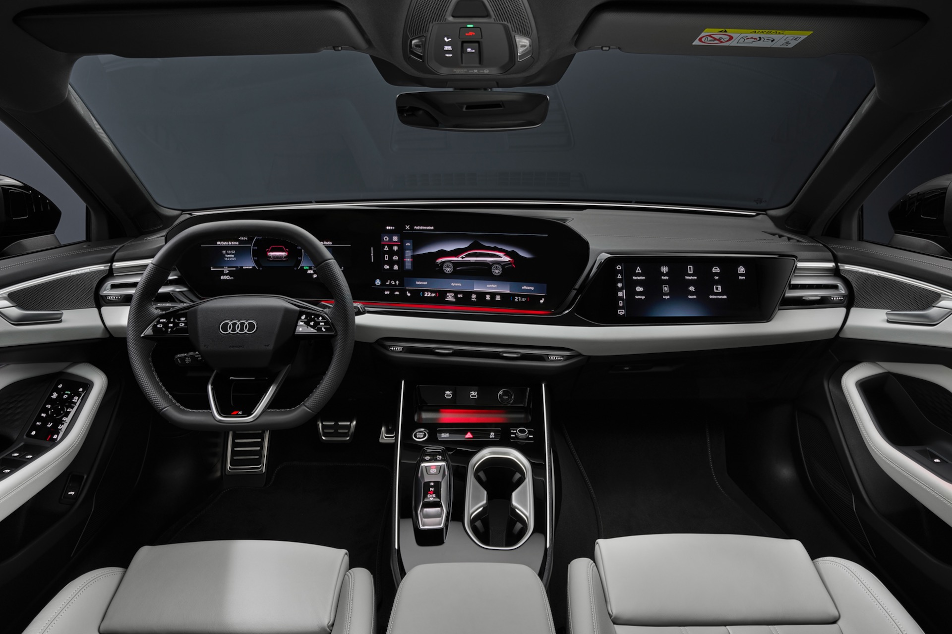 Das Innenraum-Layout orientiert sich eng an anderen aktuellen Audi-Modellen wie dem Q6, optional gibt es auch im A6 ein Beifahrer-Display. Bei Infotainment & Co. gibt es so gesehen ähnlich wenig Überraschungen wie bei den Antrieben und auch optionale Features wie Luftfederung und Allradlenkung sind im Segment des Audi A6 2025 kaum noch erwähnenswert.