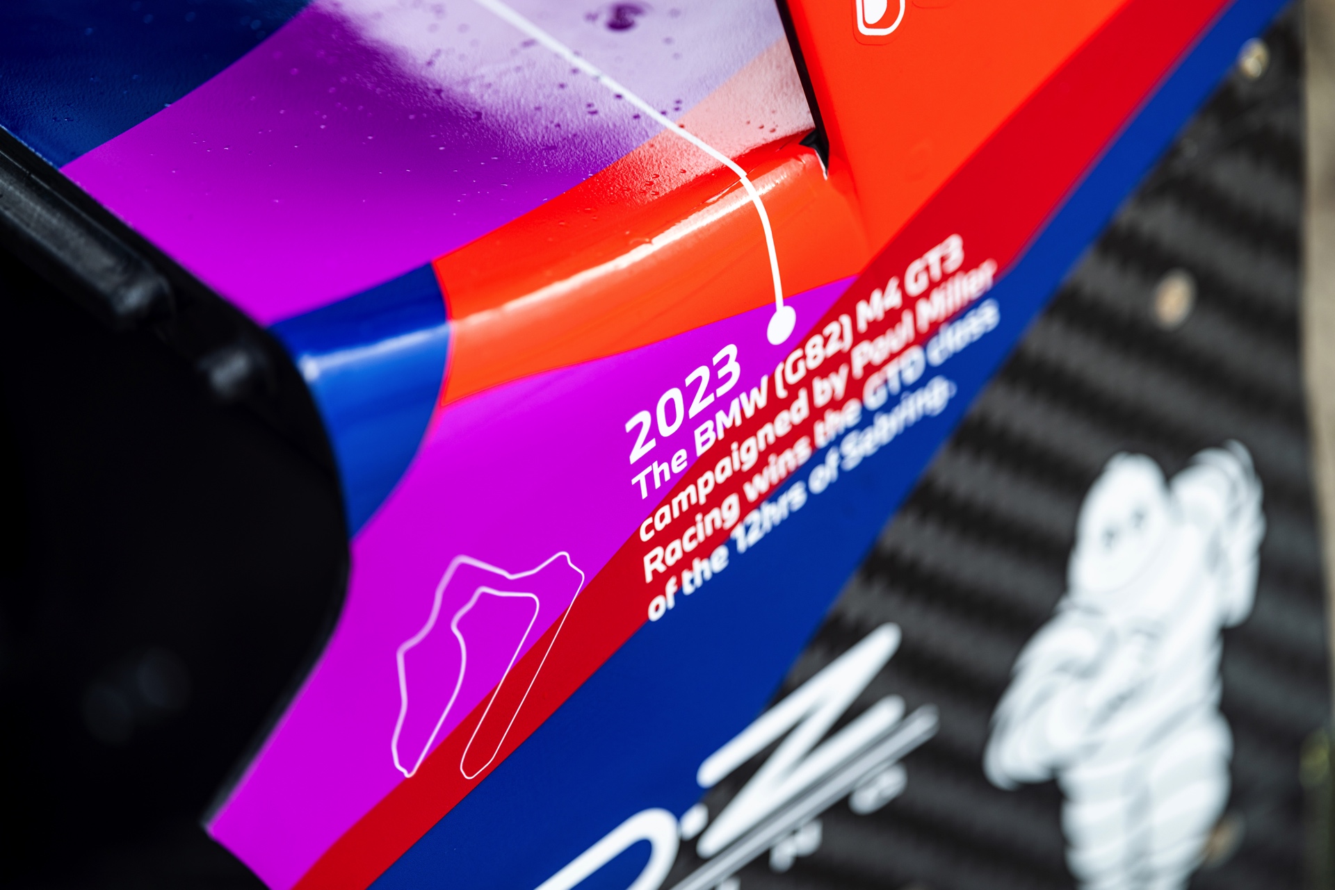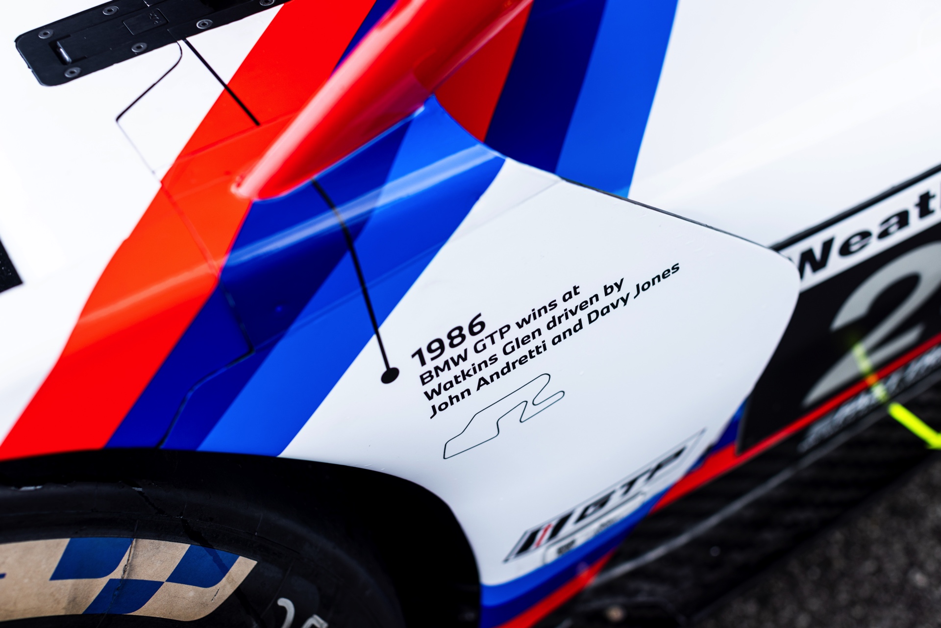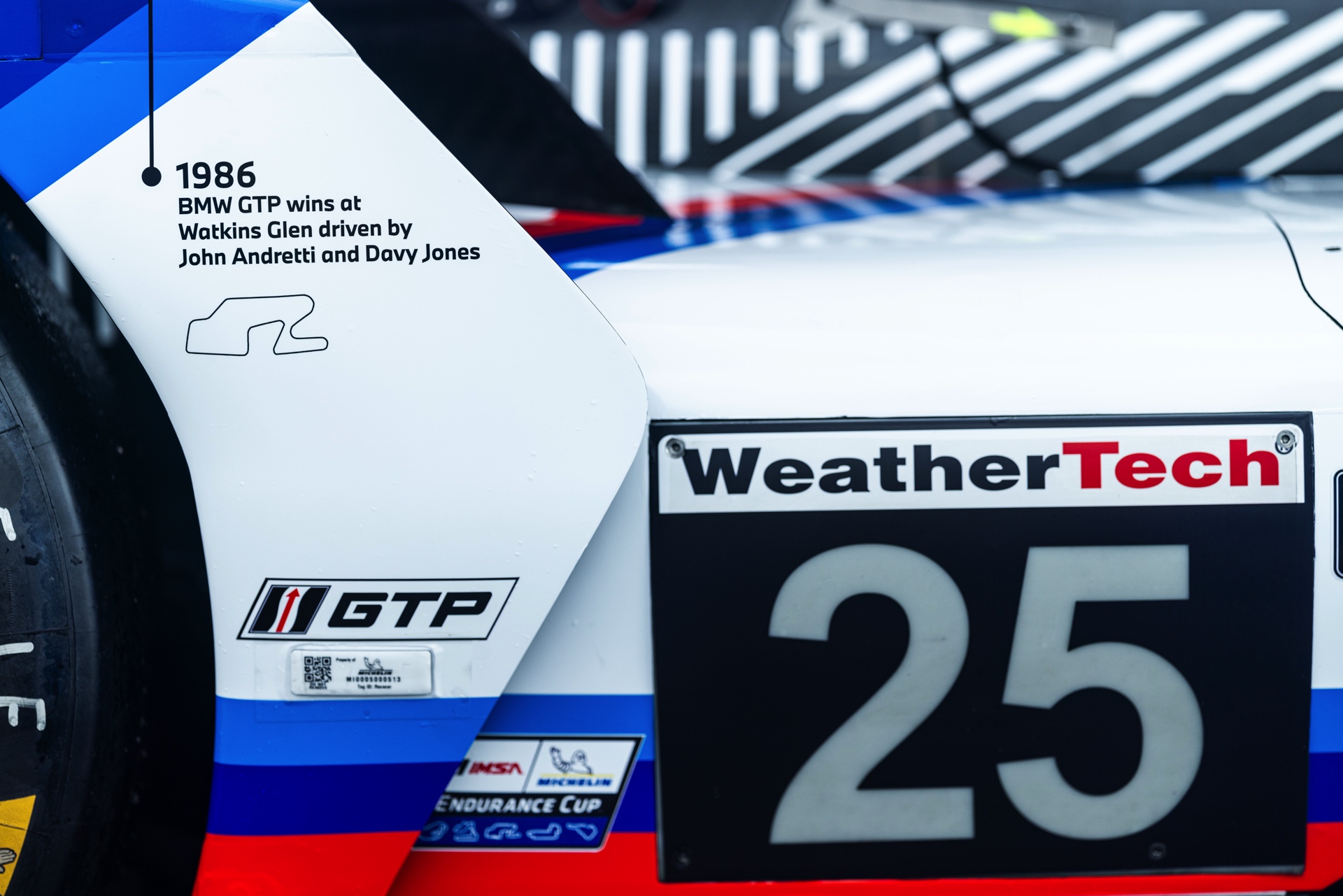 50 Jahre nach dem unerwarteten Triumph erinnert das Design des BMW M Hybrid V8 mit einer riesigen 50 an das Jubiläum, außerdem wird der ganze Vorderwagen vom Umriss der Strecke in den Farben von BMW Motorsport geziert. Diverse kleinere Schriftzüge erinnern an einzelne Erfolge auf den Rennstrecken Nordamerikas, darunter der Sieg des BMW V12 LMR bei den 12 Stunden von Sebring 1999 oder die Siege des BMW M8 GTE bei den 24 Stunden von Daytona 20 Jahre später.