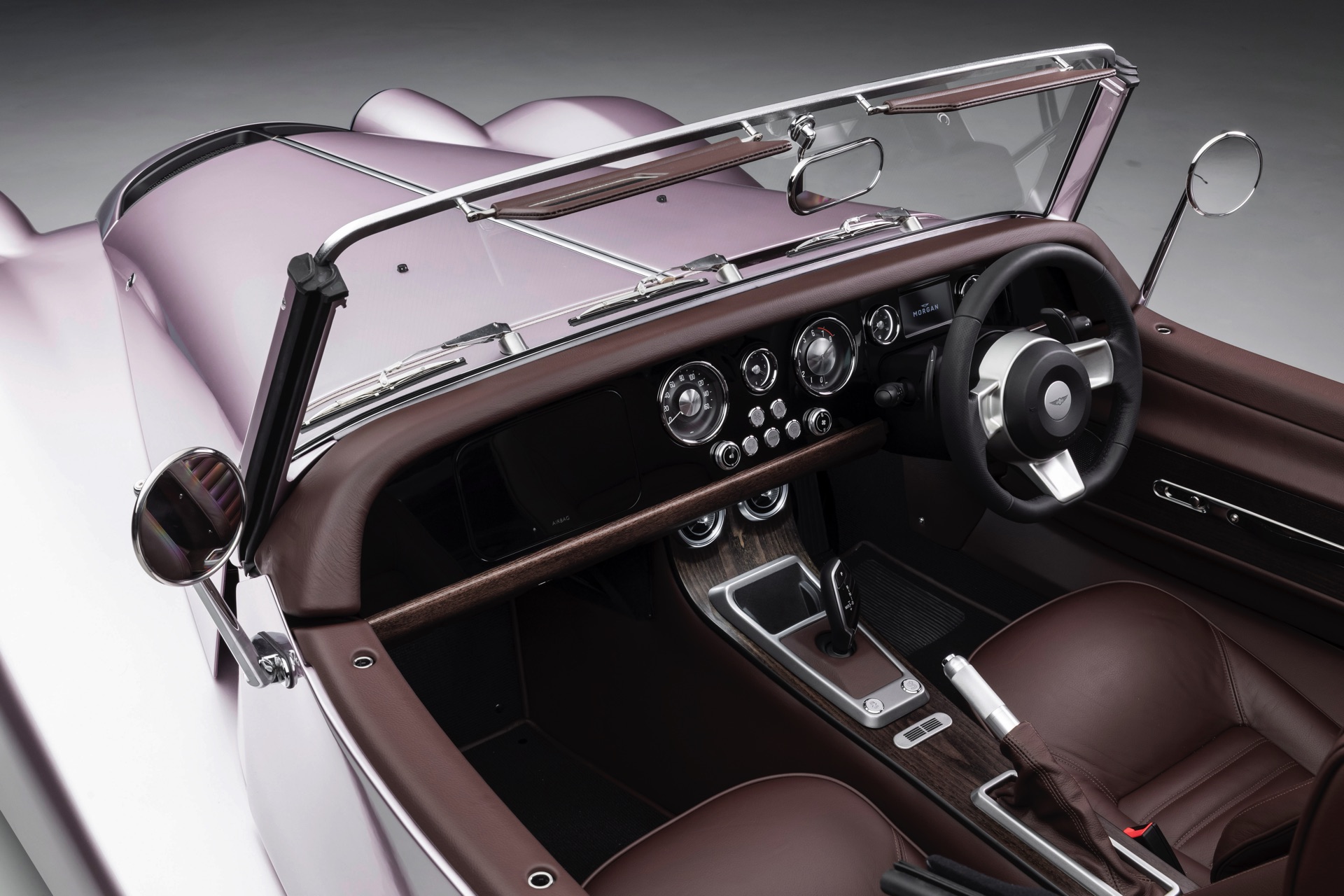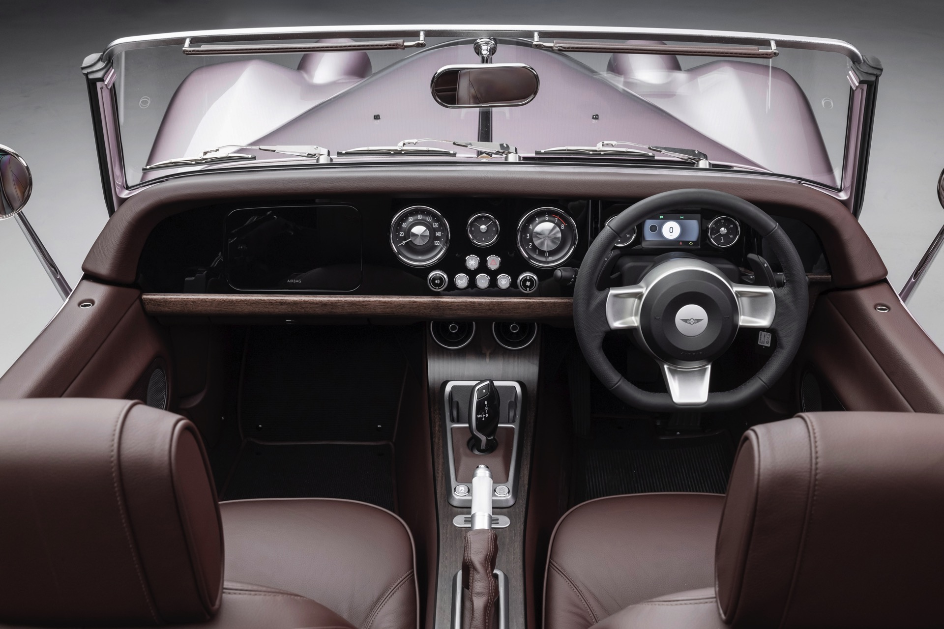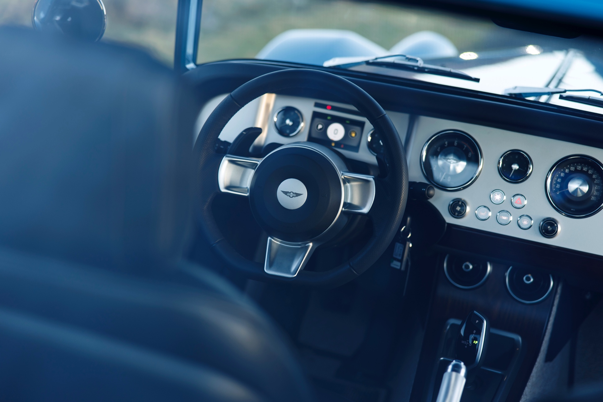 Einen gelungenen Mittelweg aus Klassik und Moderne präsentiert der jüngste Morgan auch im Innenraum. Reduzierte Formen treffen auf klassische Rundinstrumente, feine Holz-Leisten und den noch immer modern wirkende Automatik-Wählhebel früherer BMW-Modelle. Auf Wunsch kommen eine Wireless-Charging-Ablage für Smartphones und ein Soundsystem von Sennheiser ebenso hinzu wie feinstes Leder in der individuellen Wunschfarbe.