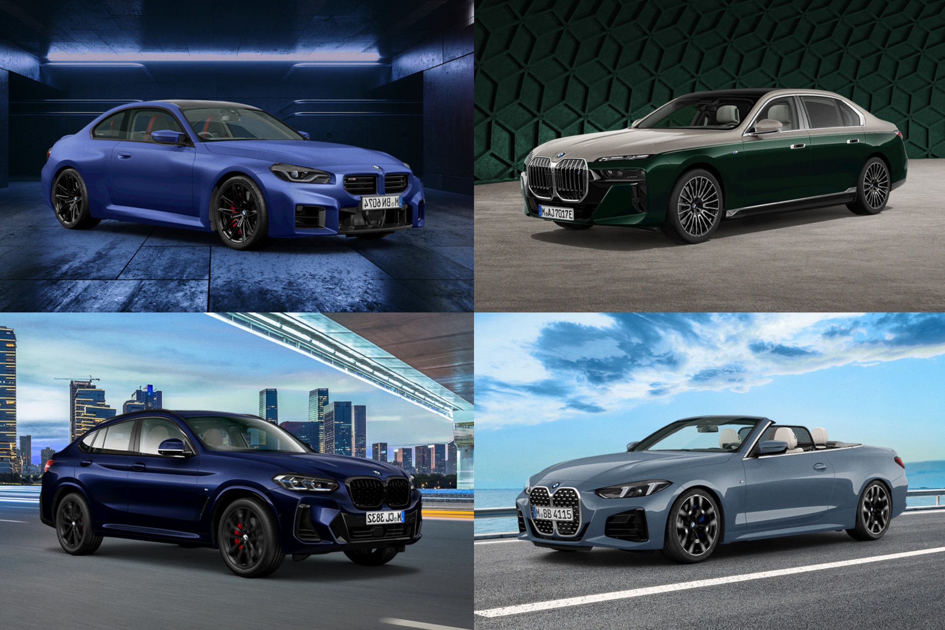 Da der 5er keine weiteren Impulse benötigt, lenkt BMW Südkorea die Aufmerksamkeit der Kunden zum Jubiläum auf vier andere Modelle: Zur Wahl stehen ein auf 30 Exemplare limitierter BMW M2 (G87 LCI mit 480 PS) in Frozen Portimao Blue, eine auf 20 Fahrzeuge limitierte Edition des 4er Cabrio (G23 LCI) als 420i mit Individual-Lackierung in der 8er-Launchfarbe Barcelonablau, eine Edition des X4 (G02 LCI) in Tansanitblau und als besonderer Hingucker ein BMW i7 mit Two-Tone-Lackierung in Peridotgrün und Oxidgrau.