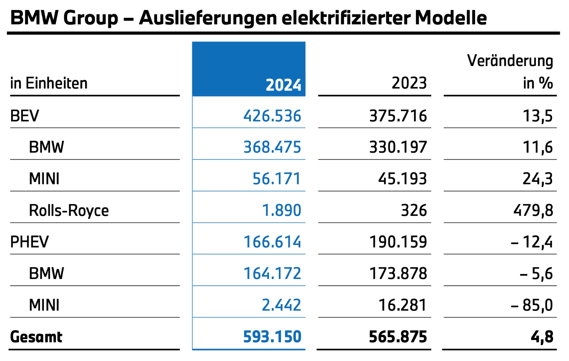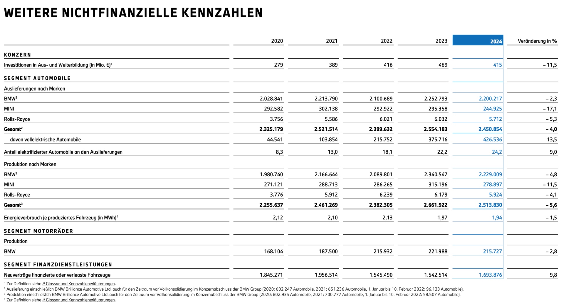 Dass die Zahlen trotz allem besser als bei vielen Wettbewerbern ausfallen, liegt an der ungebrochenen Attraktivität der Modellpalette, die BMW zum unumstrittenen Premium-Marktführer beim weltweiten Absatz macht. Hierbei spielen die Elektroautos eine immer größere Rolle, sie stehen inzwischen für 17,4 Prozent der weltweiten Verkaufszahlen und konnten ihren Anteil gegenüber dem Vorjahr damit um weitere 18,4 Prozent steigern. Sie tragen entscheidend dazu bei, dass die CO2-Emissionen der europäischen Neuwagen-Flotte um weitere 2,5 Prozent auf nun nur noch 99,5 Gramm pro Kilometer reduziert werden konnten. Den aktuellen Elektro-Erfolgen zum Trotz investiert BMW enorme Summen in die Entwicklung der Neuen Klasse, die ab Ende 2025 den nächsten großen Schritt gehen soll.