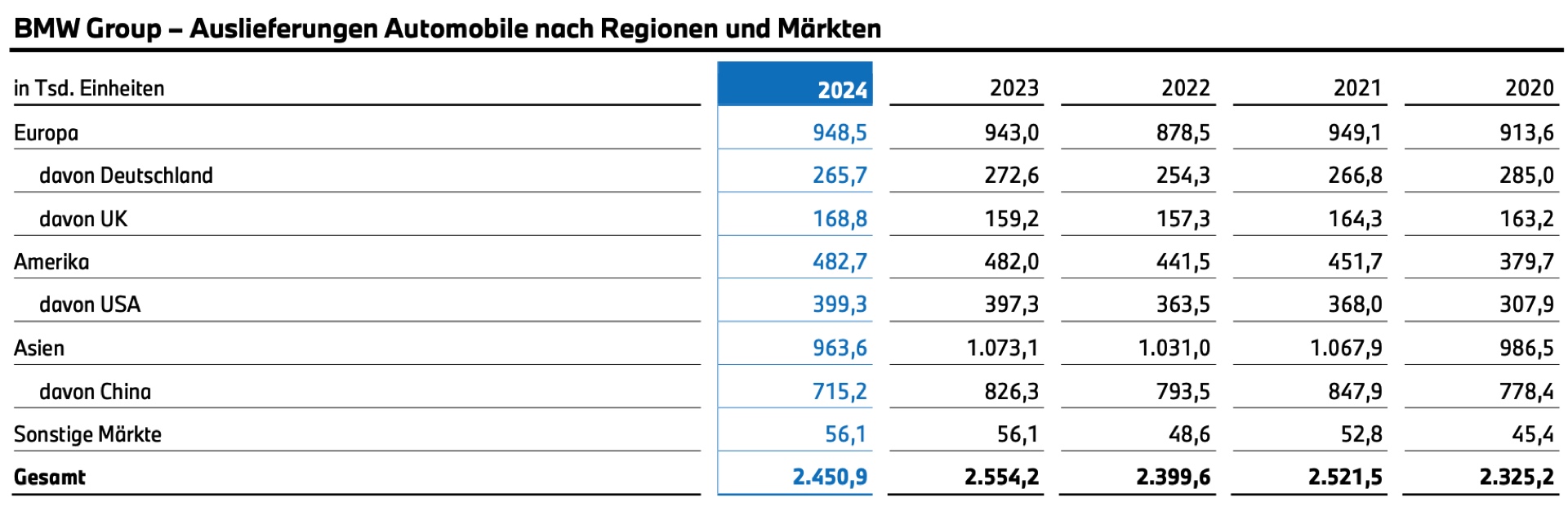 Bemerkenswert ist das ausgewogene Verhältnis zwischen den Weltregionen, das der BMW Group sowohl beim Absatz als auch bei der Produktion gelingt: Europa, die USA und China sind jeweils ähnlich gewichtet, sodass die Zahlen der Münchner auf drei beinahe gleichstarken Säulen stehen.