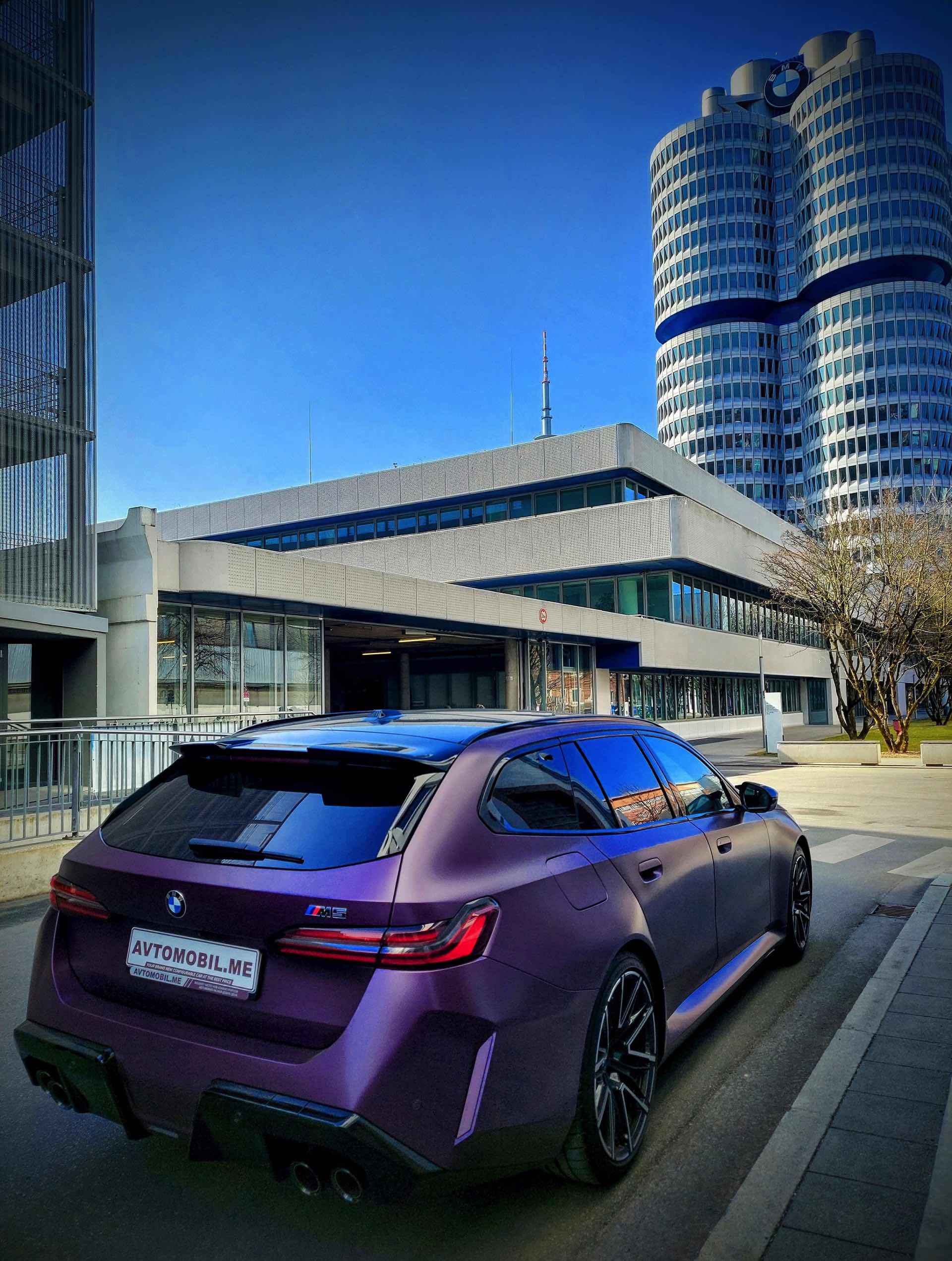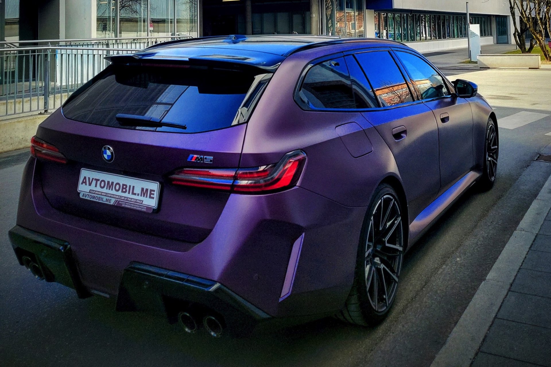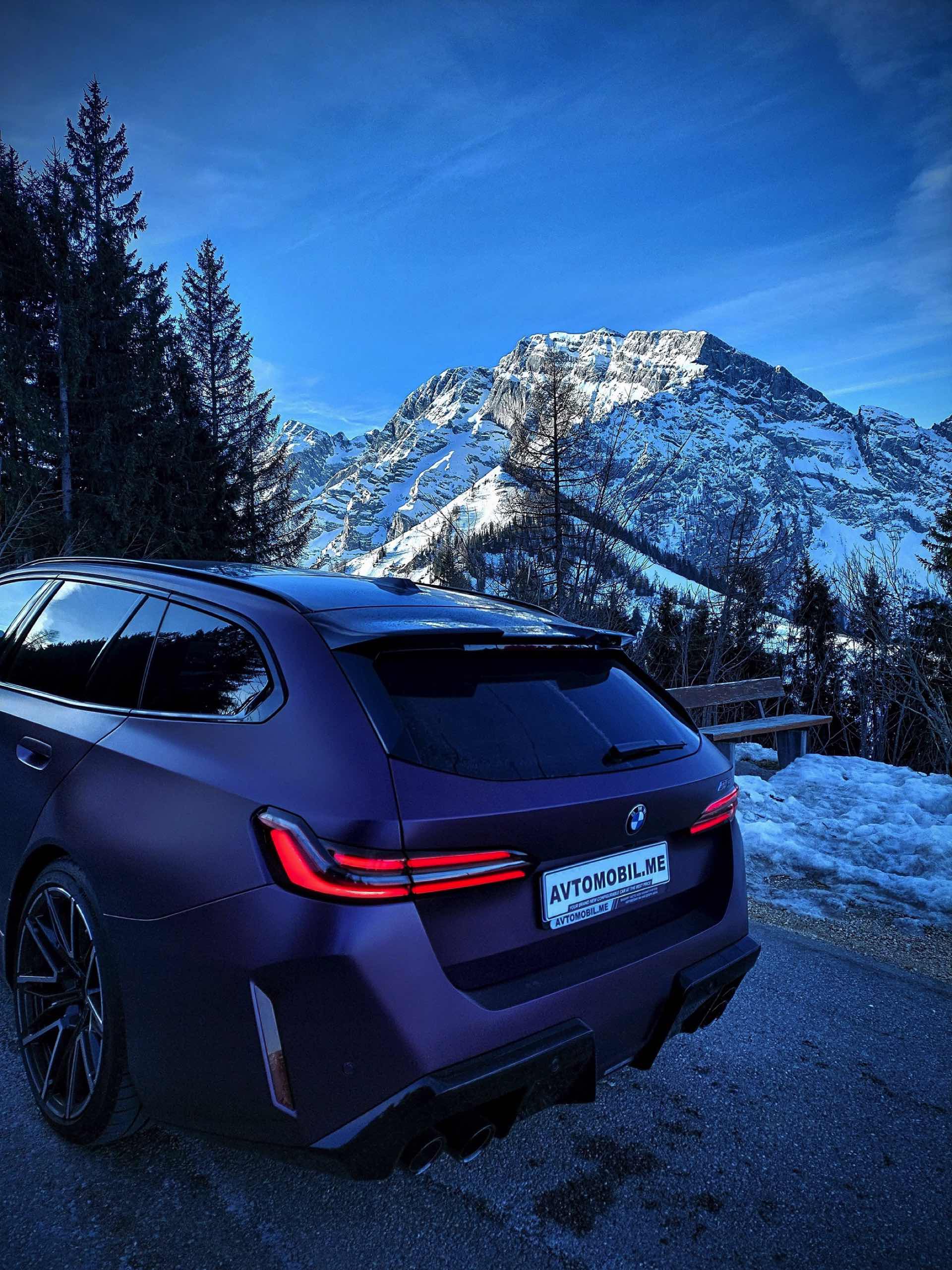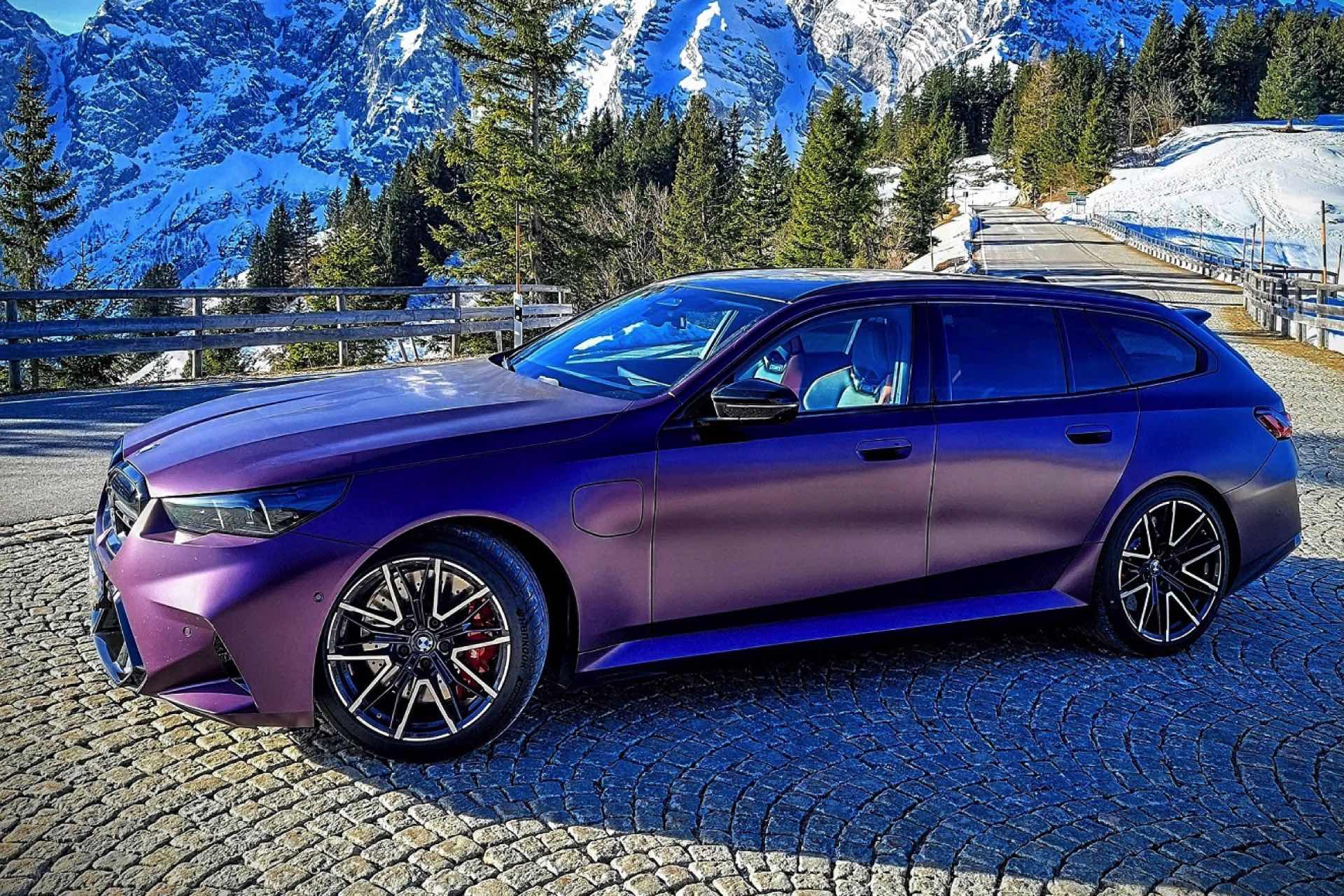 Der neue BMW M5 Touring (G99) bietet nicht nur jede Menge Platz im Kofferraum, er ist auch eine riesige Leinwand für spannende Individual-Farben. Bereits im vergangenen September bestellte einer unserer Leser den nach eigener Aussage ersten neuen M5 Touring mit Sonderwunsch-Lackierung – und das gleich im ausgesprochen seltenen Frozen Purple Metallic (Farbcode P9A). Der 727 PS starke Power-Kombi im ebenso matten wie intensiven Violett ist in absolut jedem Umfeld der Hingucker Nummer 1, woran neben der Farbe natürlich auch die muskulösen Formen des G99 ihren Anteil haben: Die Kotflügel sind vorne wie hinten deutlich verbreitert und schaffen so Platz für eine im Vergleich zum regulären G61 erheblich breitere Spur.