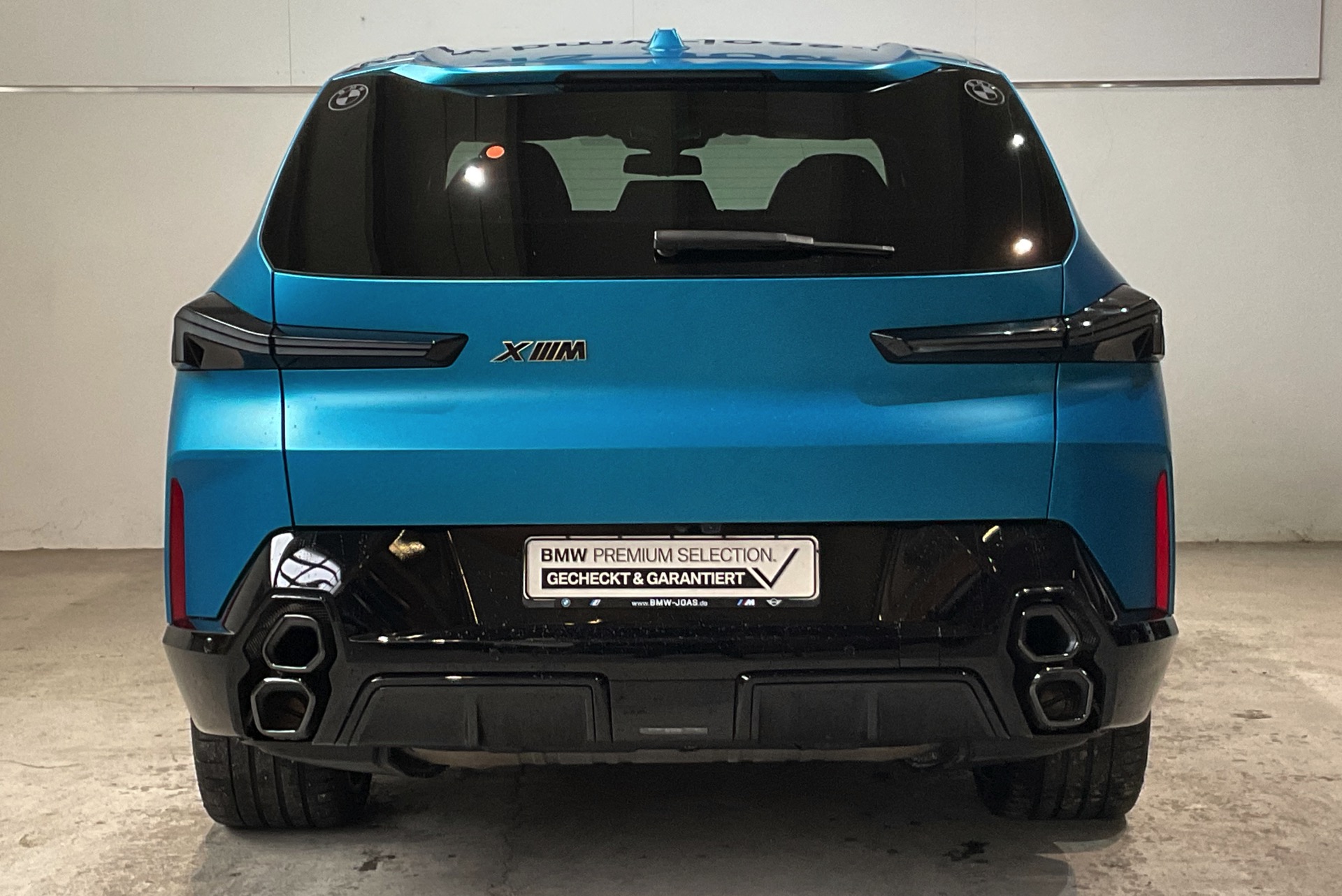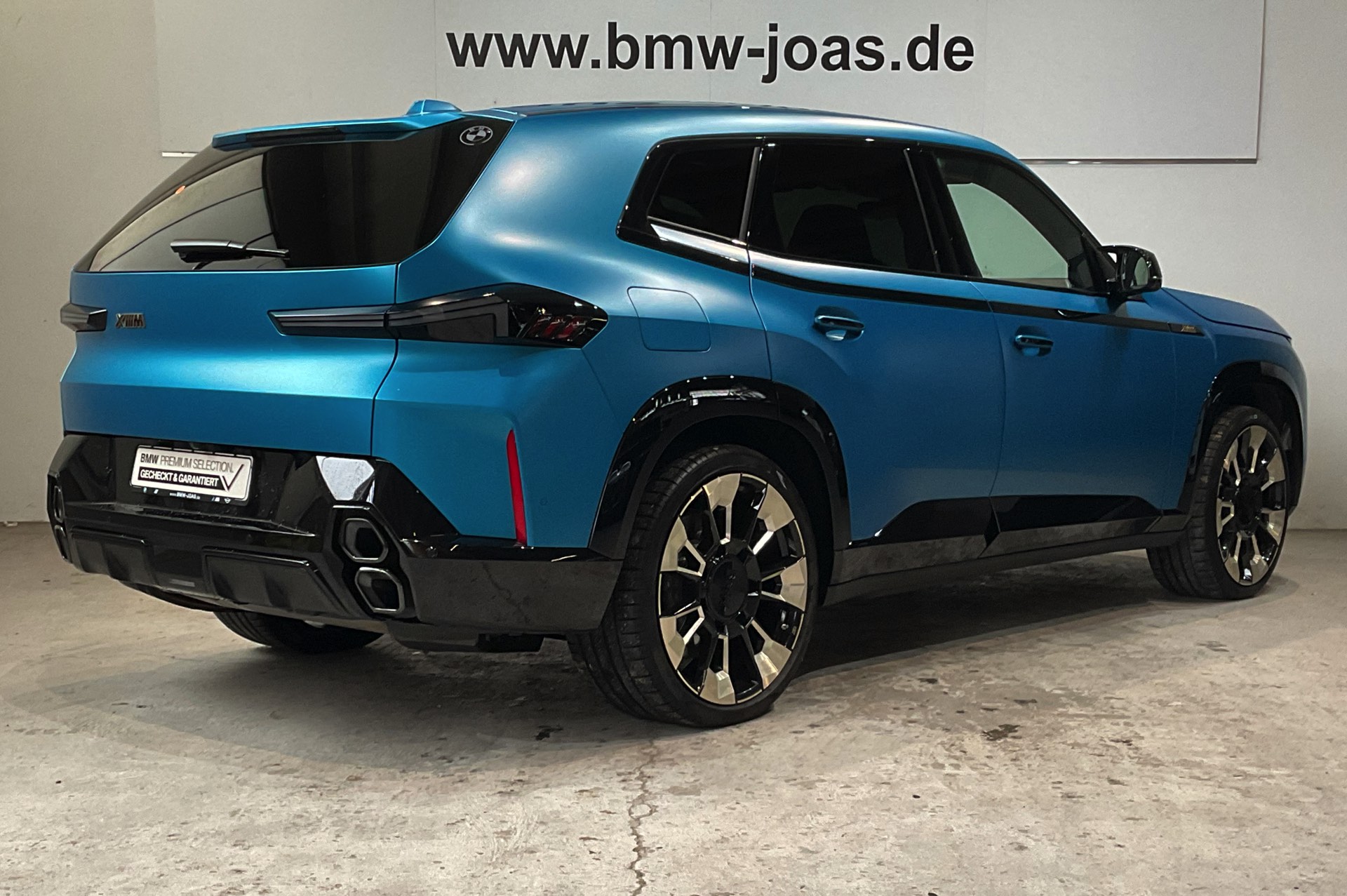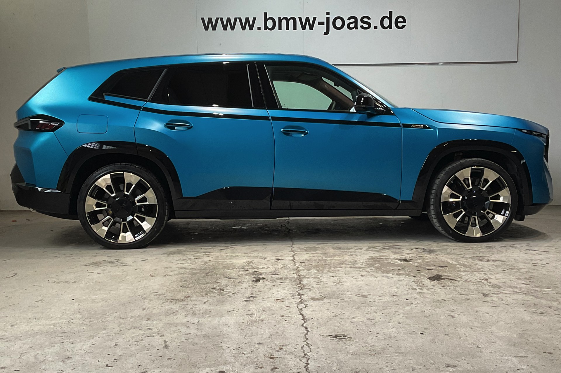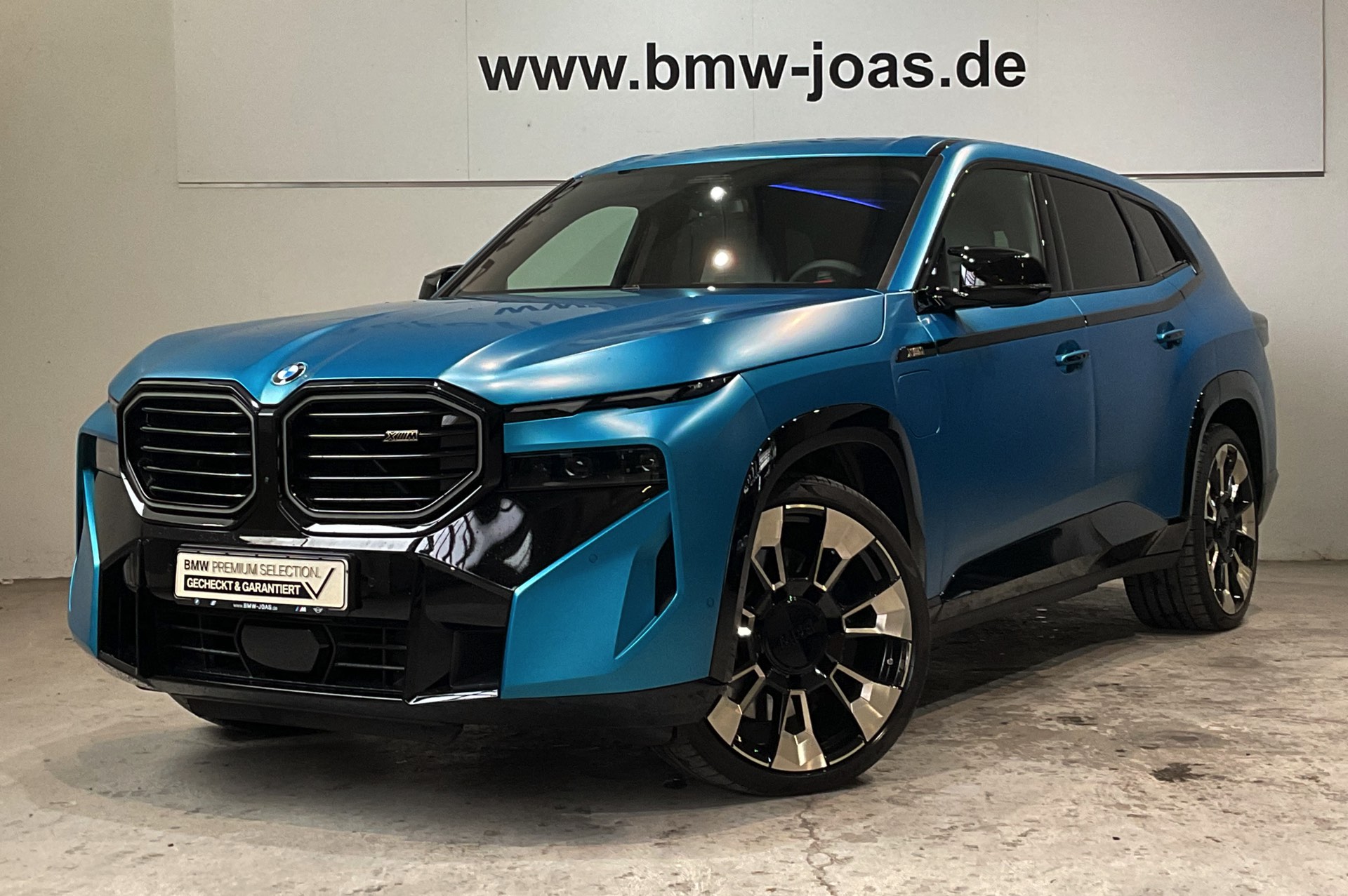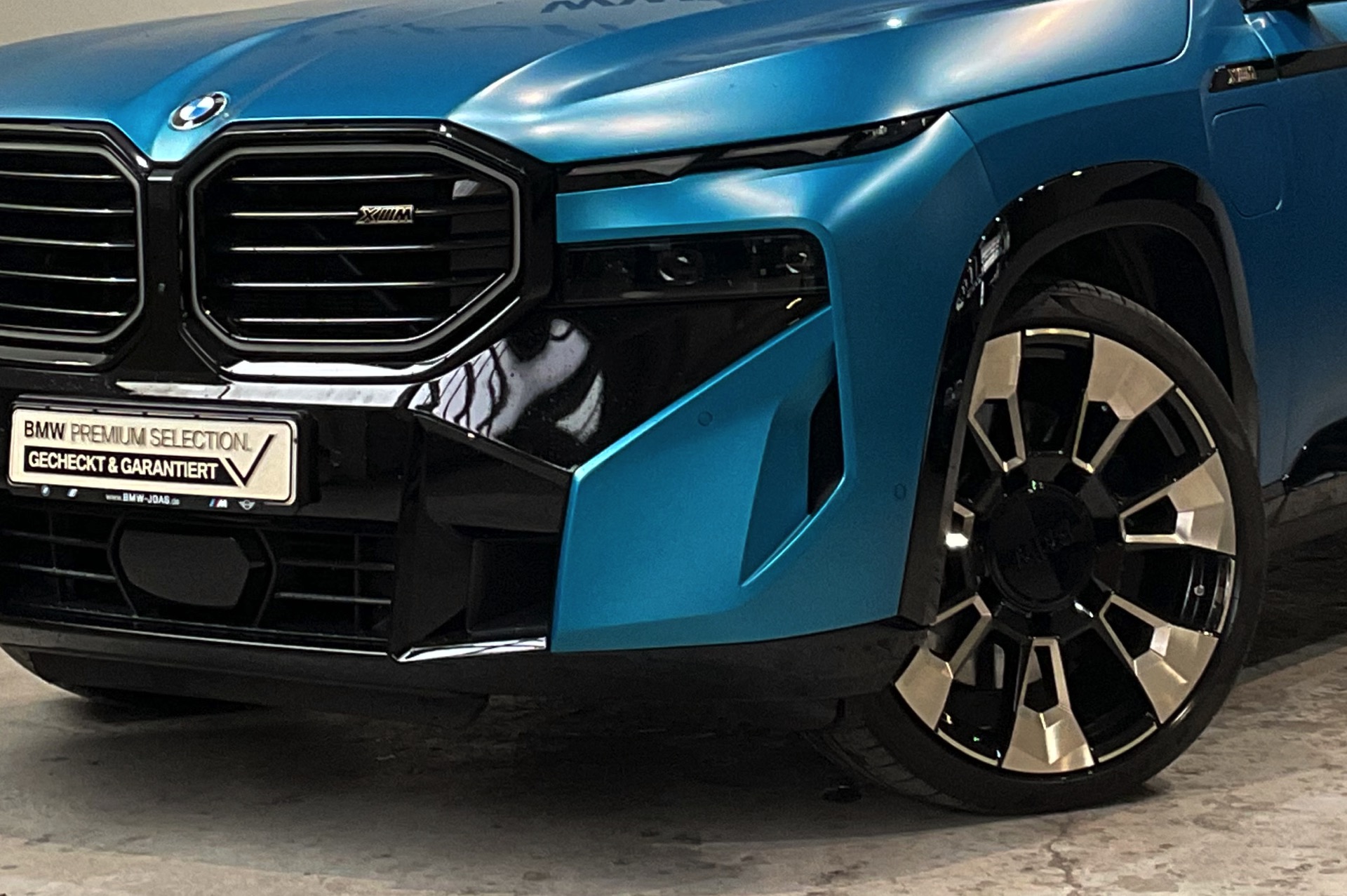 Weiter steigern lässt sich die Exklusivität mit einer der offiziell für den BMW XM angebotenen Individual-Farben – doch auch damit ist das Ende der Fahnenstange noch nicht erreicht: Wer wirklich auf Nummer Sicher gehen will, dass er keinem zweiten Fahrzeug wie seinem eigenen begegnet, kann auch jenseits der im Individual Visualizer gezeigten Sonderwunsch-Farben zuschlagen. Was dann möglich ist, zeigt uns ein aktuell bei BMW Joas in Dillingen angebotener BMW XM in Frozen Tulum Blue: