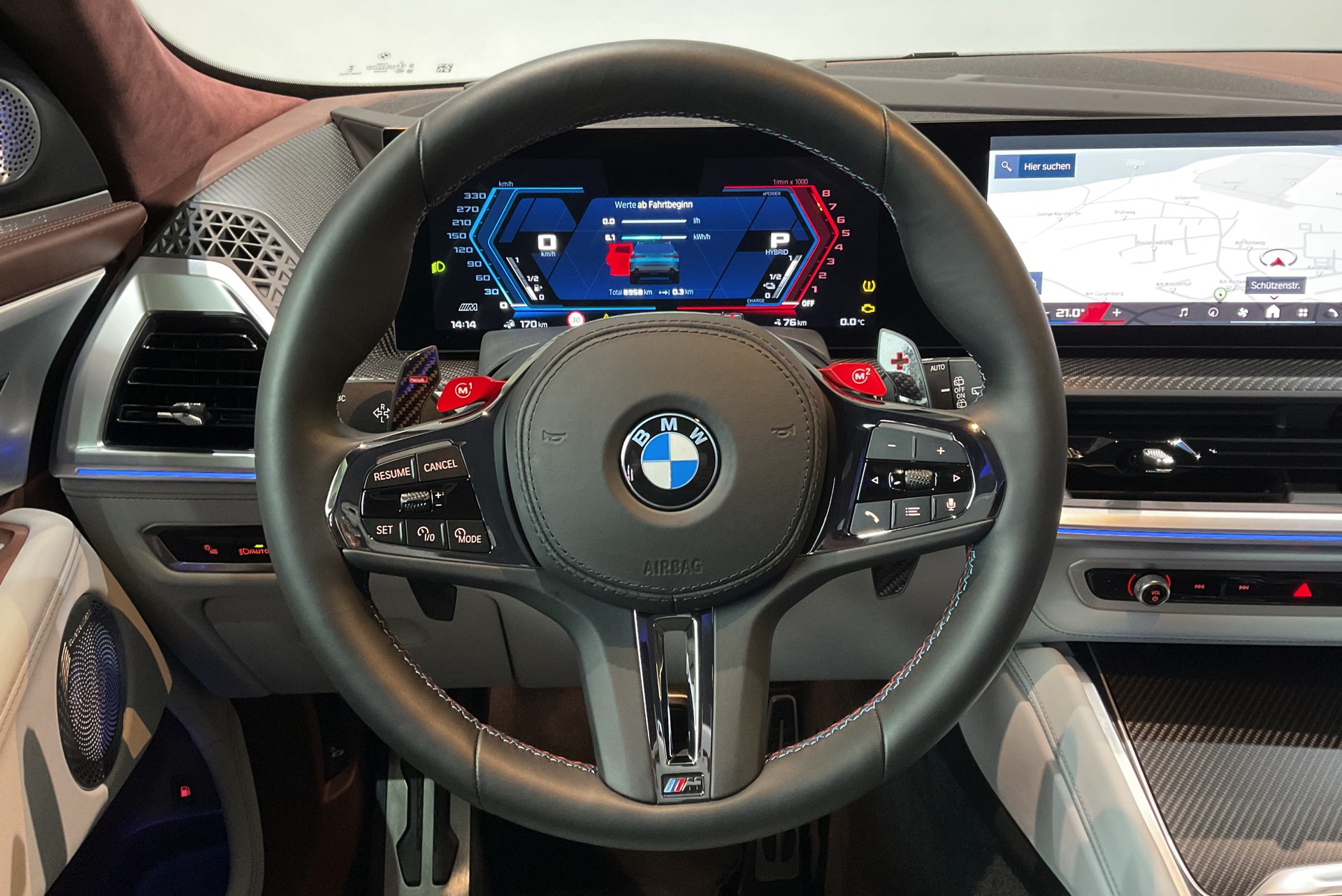Während eine derart hochwertige Ausführung des 653 PS starken BMW XM im Listenpreis durchaus die 200.000-Euro-Marke knacken kann, ist sie als junger Gebrauchtwagen erheblich günstiger: BMW Joas verkauft den gezeigten XM mit lediglich 9.100 gefahrenen Kilometern zum Preis von 138.500 Euro – womit er kaum teurer ist als ein neuer XM 50e mit dem schwächeren Sechszylinder-Antrieb.