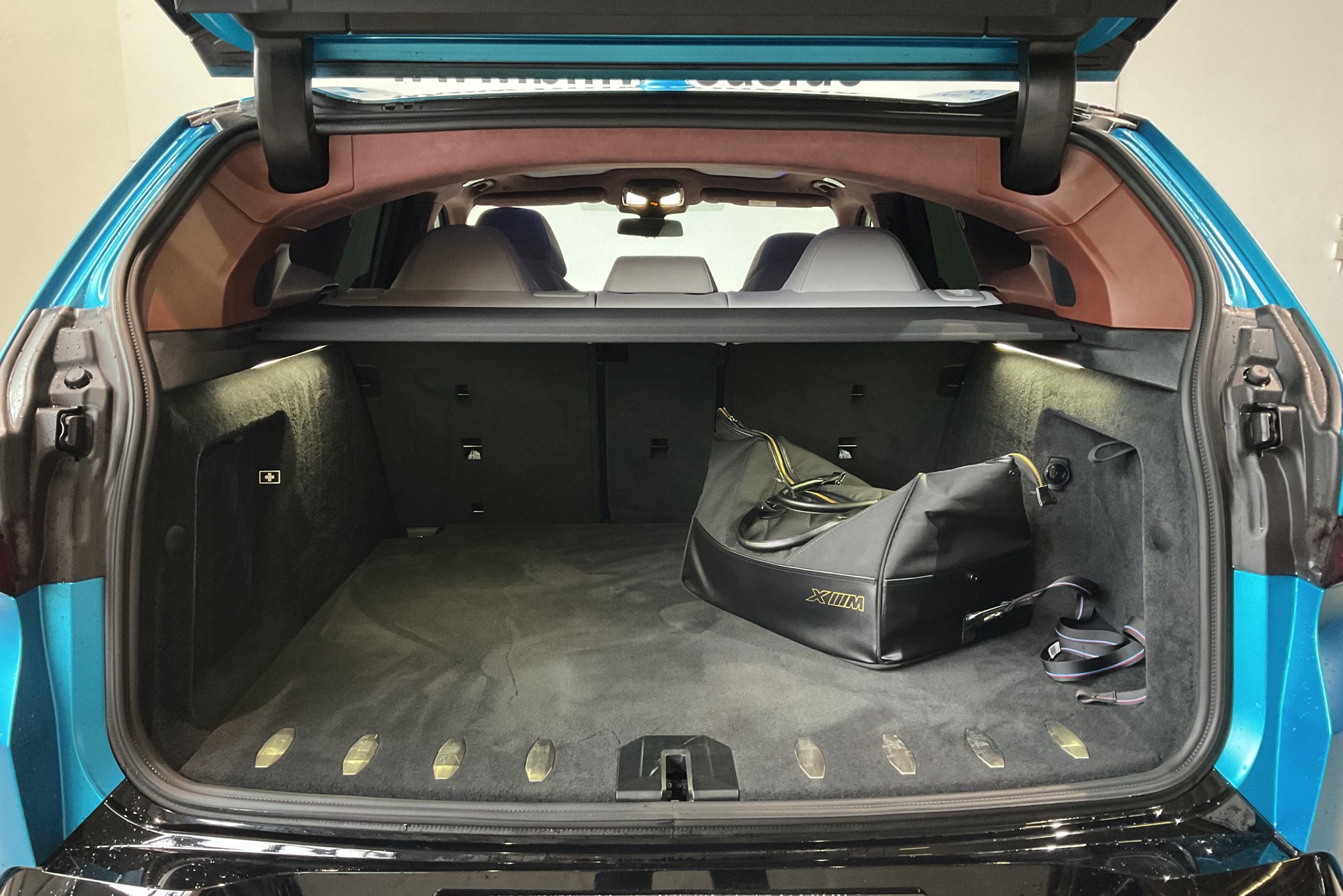 Das matte Türkisblau sorgt für einen absolut unverwechselbaren Auftritt und betont die markante Formensprache des BMW XM zusätzlich. Zahlreiche dunkel abgesetzte Details, von der Einfassung für die beleuchteten Iconic Glow-Nieren über die Außenspiegel und Akzentleisten bis hin zu den Scheiben, Rückleuchten und Details wie den Radhaus-Einfassungen unterstreichen den sportlichen Auftritt und tragen zu einem interessanten Effekt bei, weil das glänzende Schwarz im Zusammenspiel mit der matten Lackierung besonders gut zur Geltung kommt.