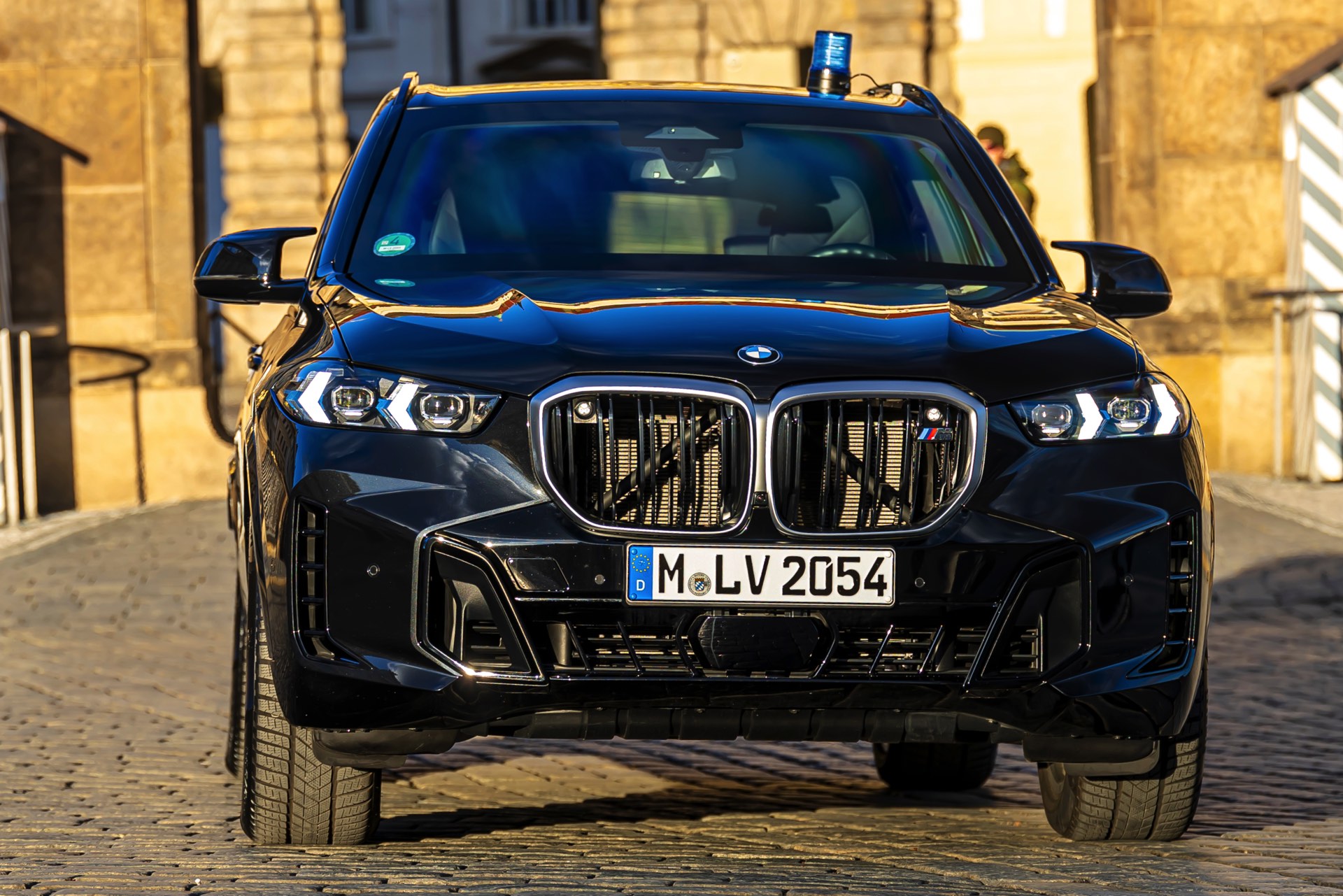 Genau wie beim BMW 7er Protection gilt auch beim X5, dass der wichtigste Schutz die vergleichsweise seriennahe Optik ist: Den meisten Betrachtern dürfte ein gepanzerter X5 im regulären Straßenbild kaum auffallen und natürlich kann er sich auch in einer zügig fahrenden Kolonne mit mehreren dunklen SUV unauffällig einreihen. Dank des 530 PS starken V8-Biturbo des X5 M60i ist jederzeit genügend Kraft vorhanden. Wer auf Details achtet, kann den BMW X5 Protection VR6 aber durchaus erkennen: Vor allem die dunklen schwarzen Ränder rund um die Scheiben verraten die Panzerung, hinzu kommen optionale Details wie die in den Nieren platzierten Blitz-Lichter für Einsätze mit Sonderrechten.