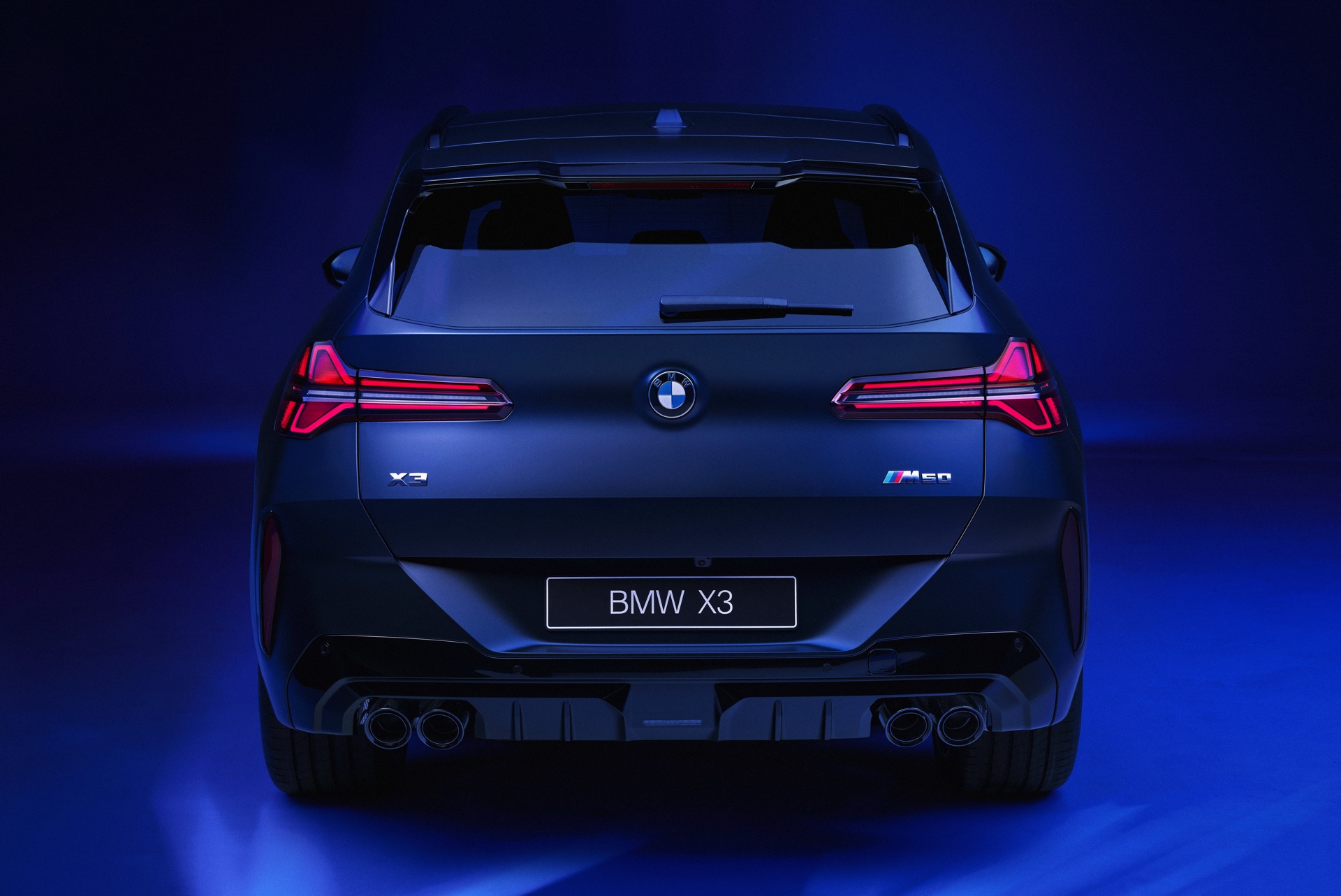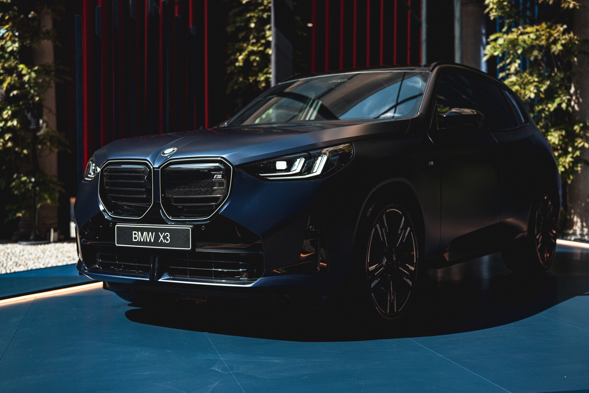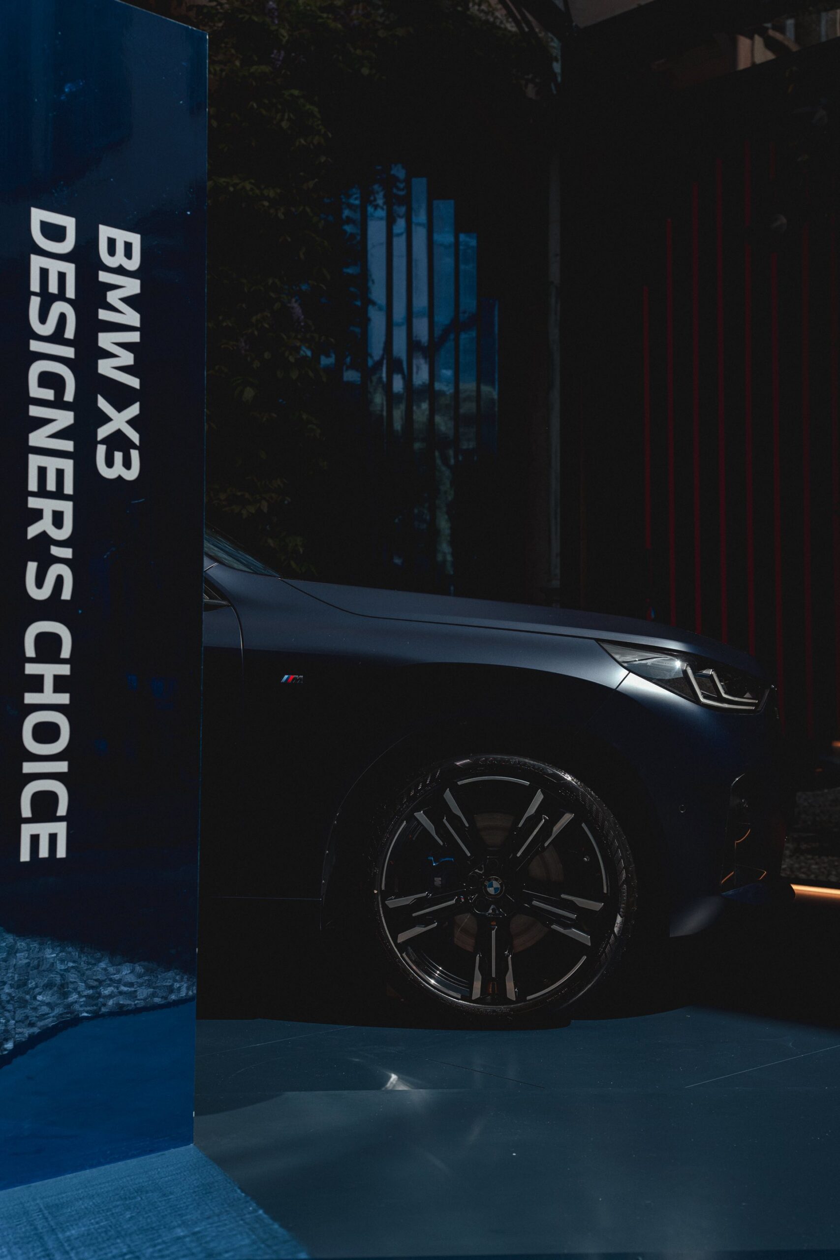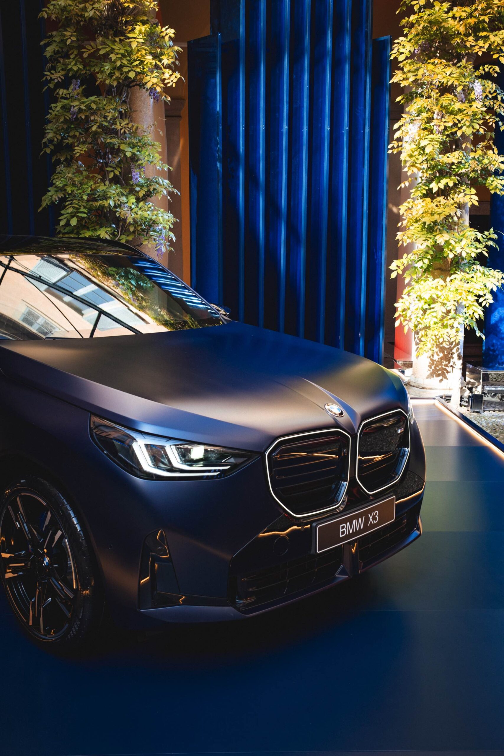 Auch die neue Formensprache des BMW X3 (G45), die von seinen Designern als monolithisch bezeichnet wird und im Vergleich zu fast allen anderen Modellen mit wesentlich weniger Sicken und Kanten auskommt, kommt dank der matten Sonderwunsch-Lackierung besonders gut zur Geltung. Wie die Niere mit ihren horizontalen Streben, aber natürlich auch weitere Details wie die M-Außenspiegel und die Abgasanlage mit vier stattlichen Endrohren verraten, haben sich die Verantwortlichen bei der Designer’s Choice für einen BMW X3 M50 mit vielen sportlichen Merkmalen und knapp 400 PS starkem Reihensechszylinder entschieden.