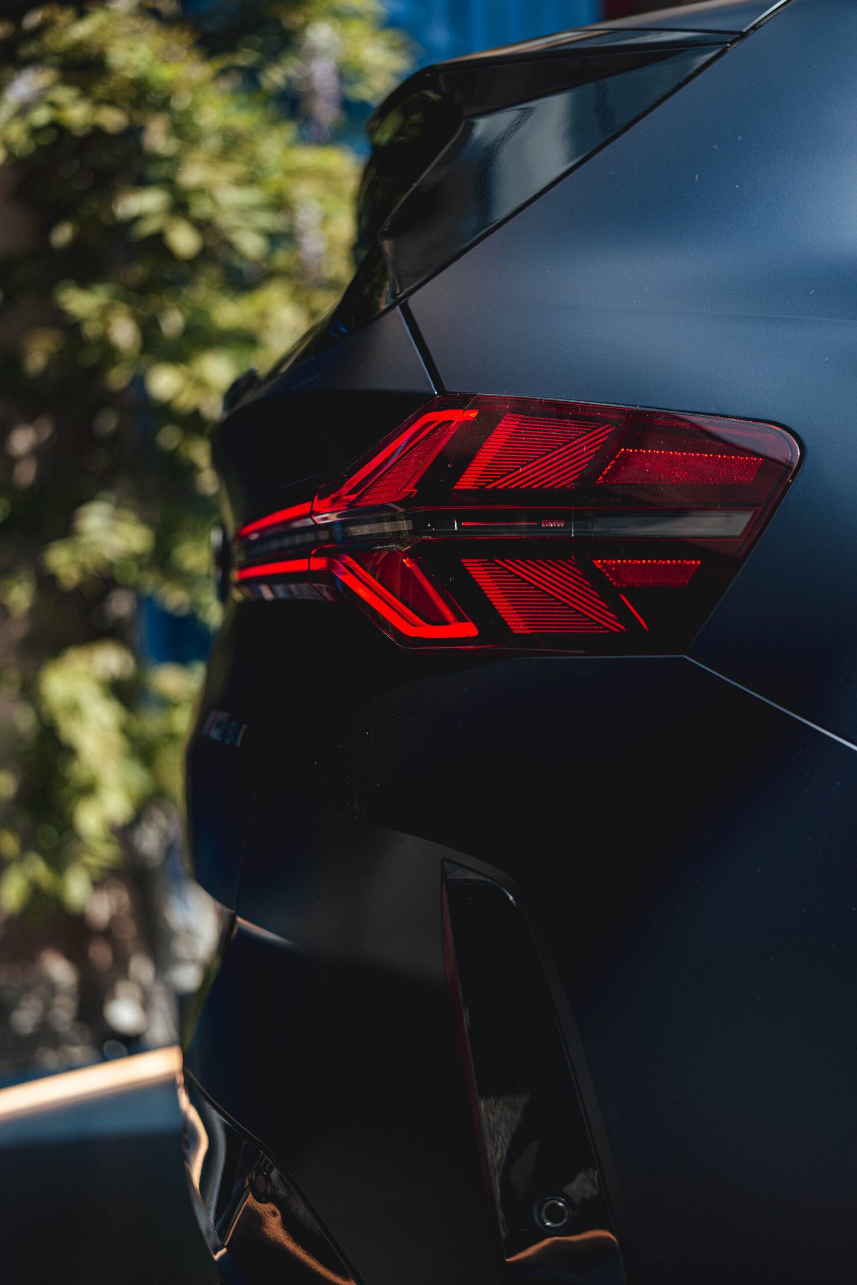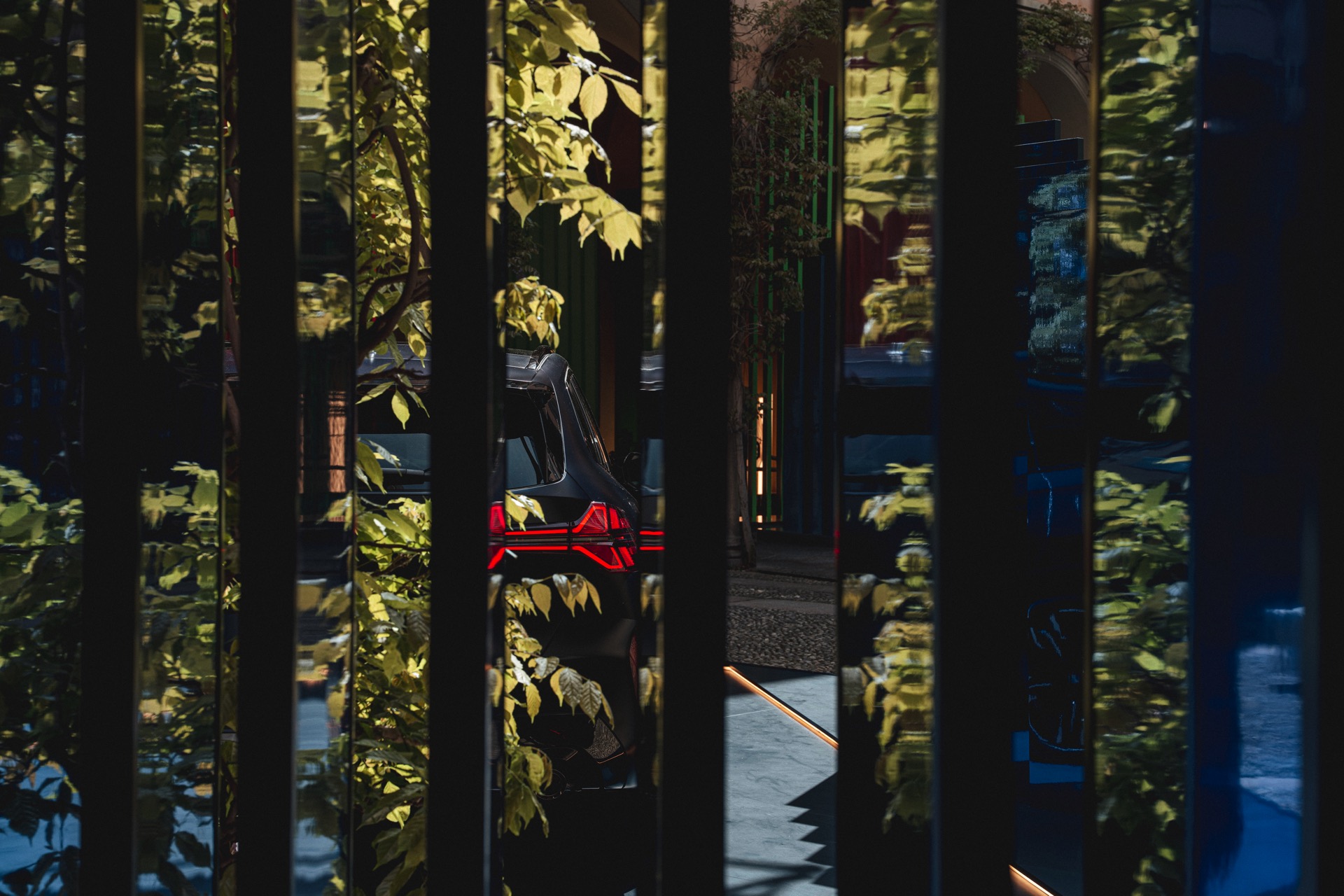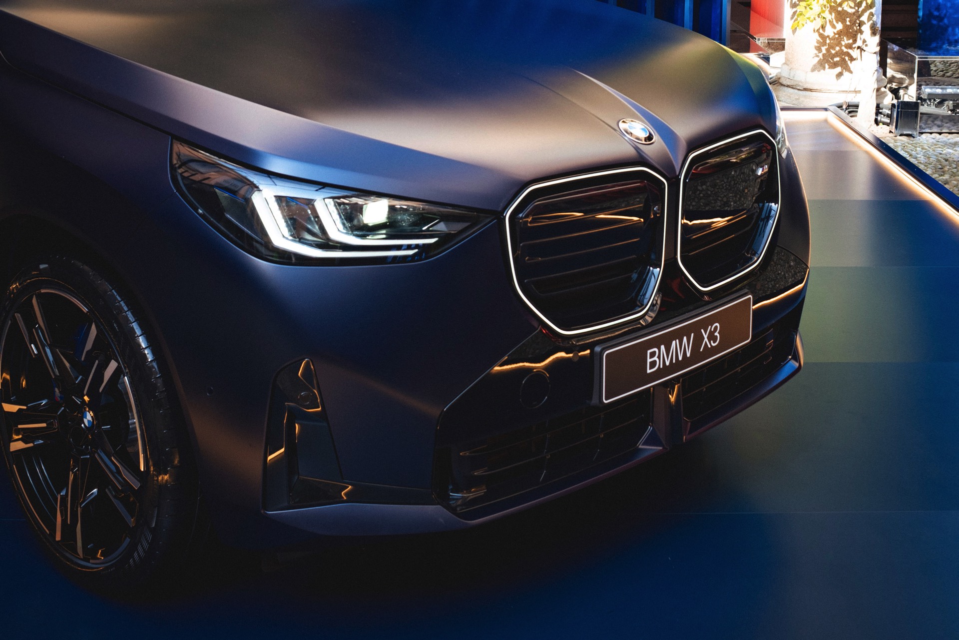 Auch die neue Formensprache des BMW X3 (G45), die von seinen Designern als monolithisch bezeichnet wird und im Vergleich zu fast allen anderen Modellen mit wesentlich weniger Sicken und Kanten auskommt, kommt dank der matten Sonderwunsch-Lackierung besonders gut zur Geltung. Wie die Niere mit ihren horizontalen Streben, aber natürlich auch weitere Details wie die M-Außenspiegel und die Abgasanlage mit vier stattlichen Endrohren verraten, haben sich die Verantwortlichen bei der Designer’s Choice für einen BMW X3 M50 mit vielen sportlichen Merkmalen und knapp 400 PS starkem Reihensechszylinder entschieden.