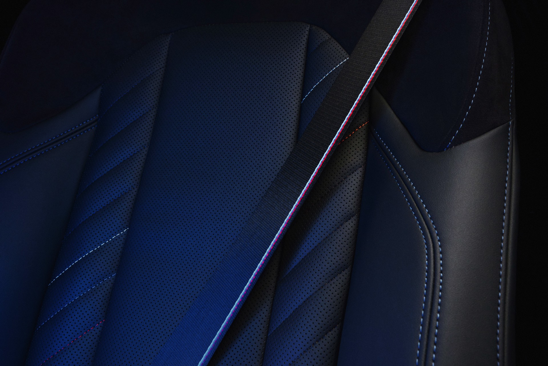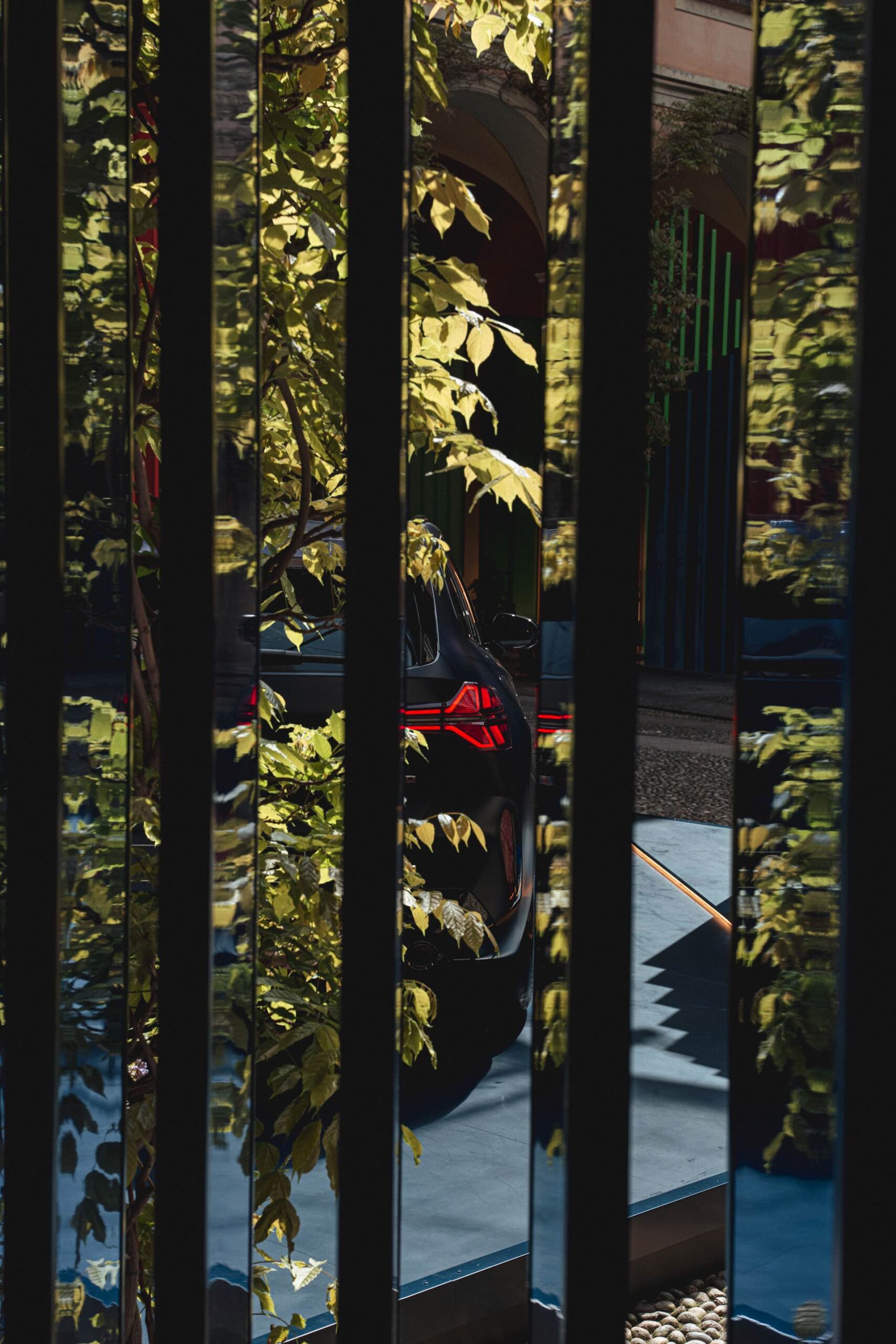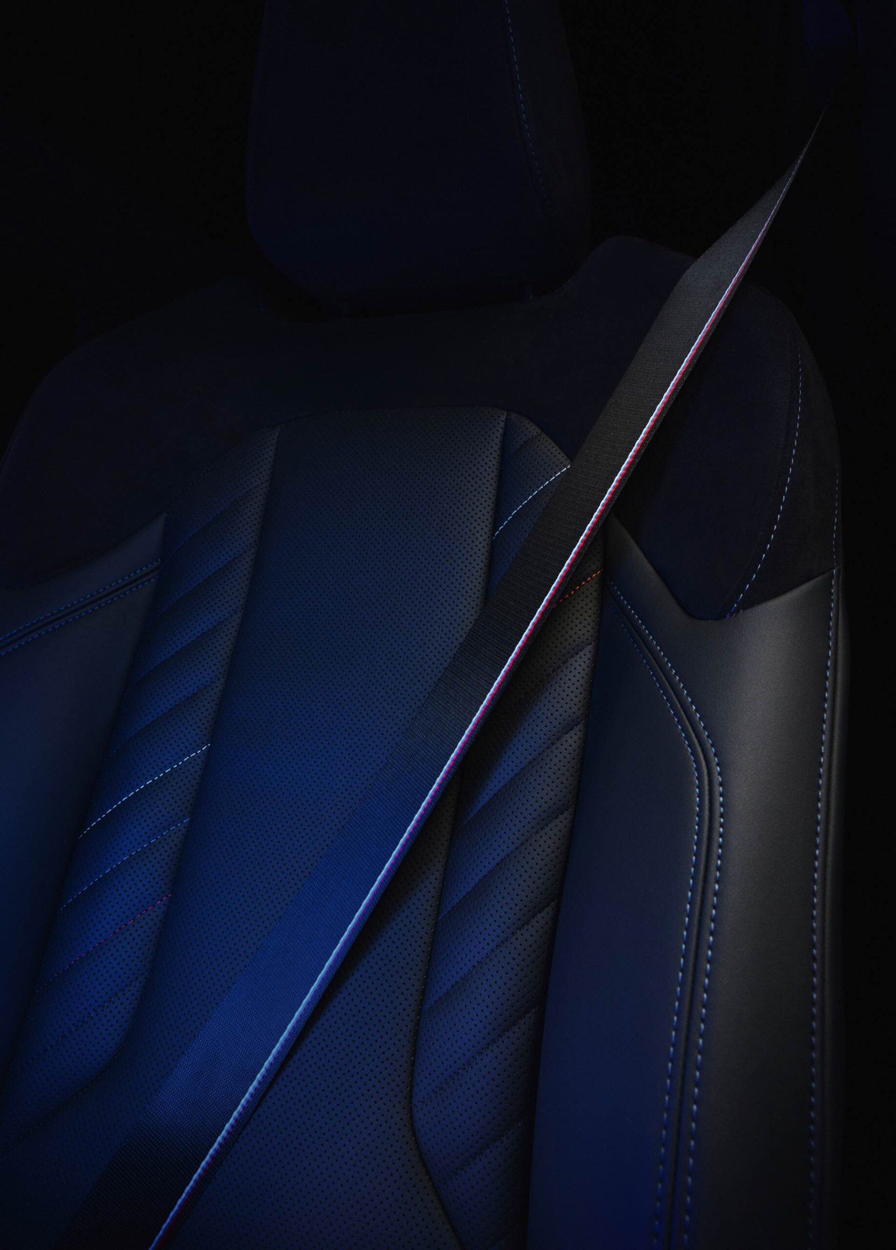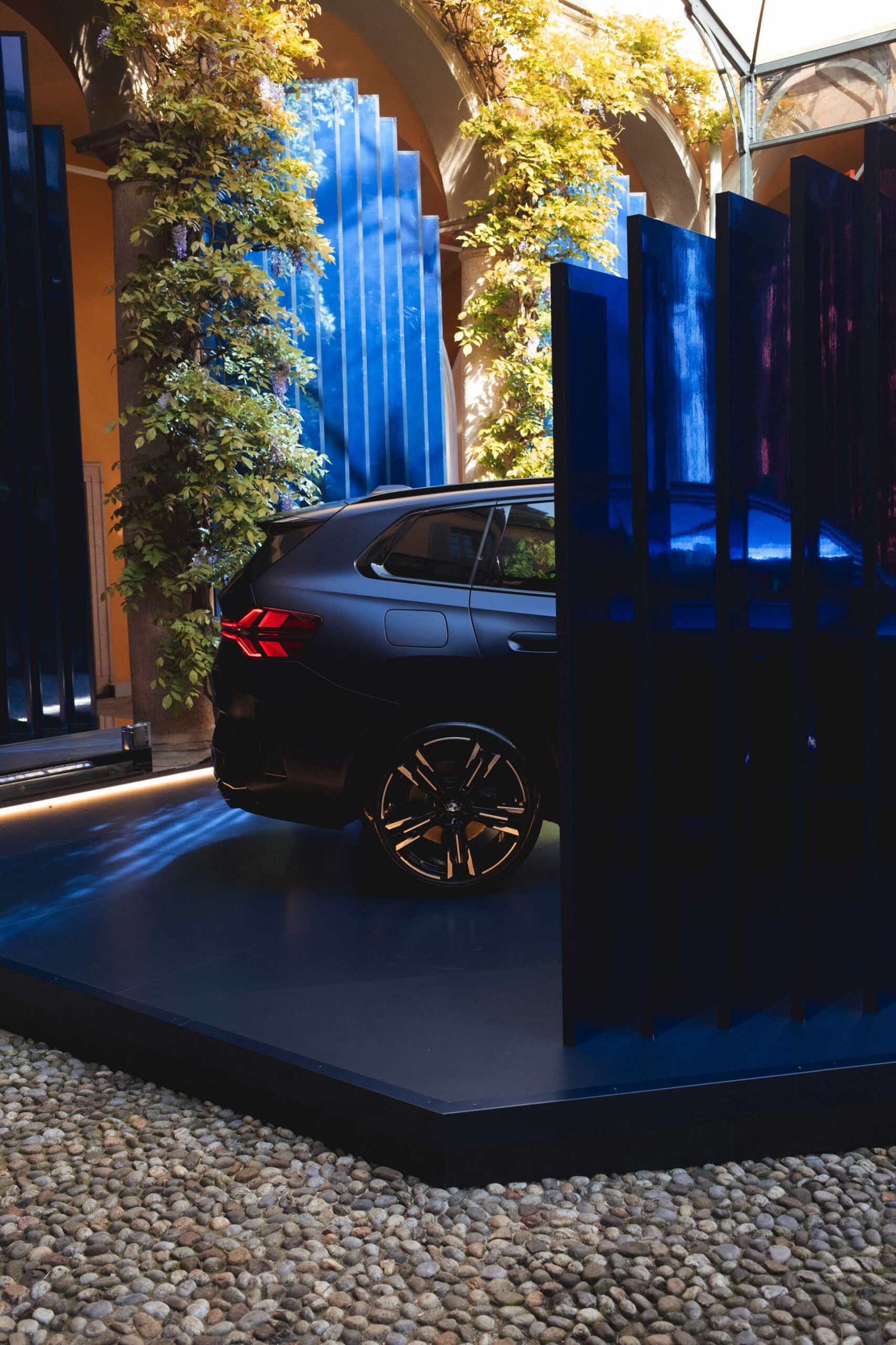 Auch die neue Formensprache des BMW X3 (G45), die von seinen Designern als monolithisch bezeichnet wird und im Vergleich zu fast allen anderen Modellen mit wesentlich weniger Sicken und Kanten auskommt, kommt dank der matten Sonderwunsch-Lackierung besonders gut zur Geltung. Wie die Niere mit ihren horizontalen Streben, aber natürlich auch weitere Details wie die M-Außenspiegel und die Abgasanlage mit vier stattlichen Endrohren verraten, haben sich die Verantwortlichen bei der Designer’s Choice für einen BMW X3 M50 mit vielen sportlichen Merkmalen und knapp 400 PS starkem Reihensechszylinder entschieden.