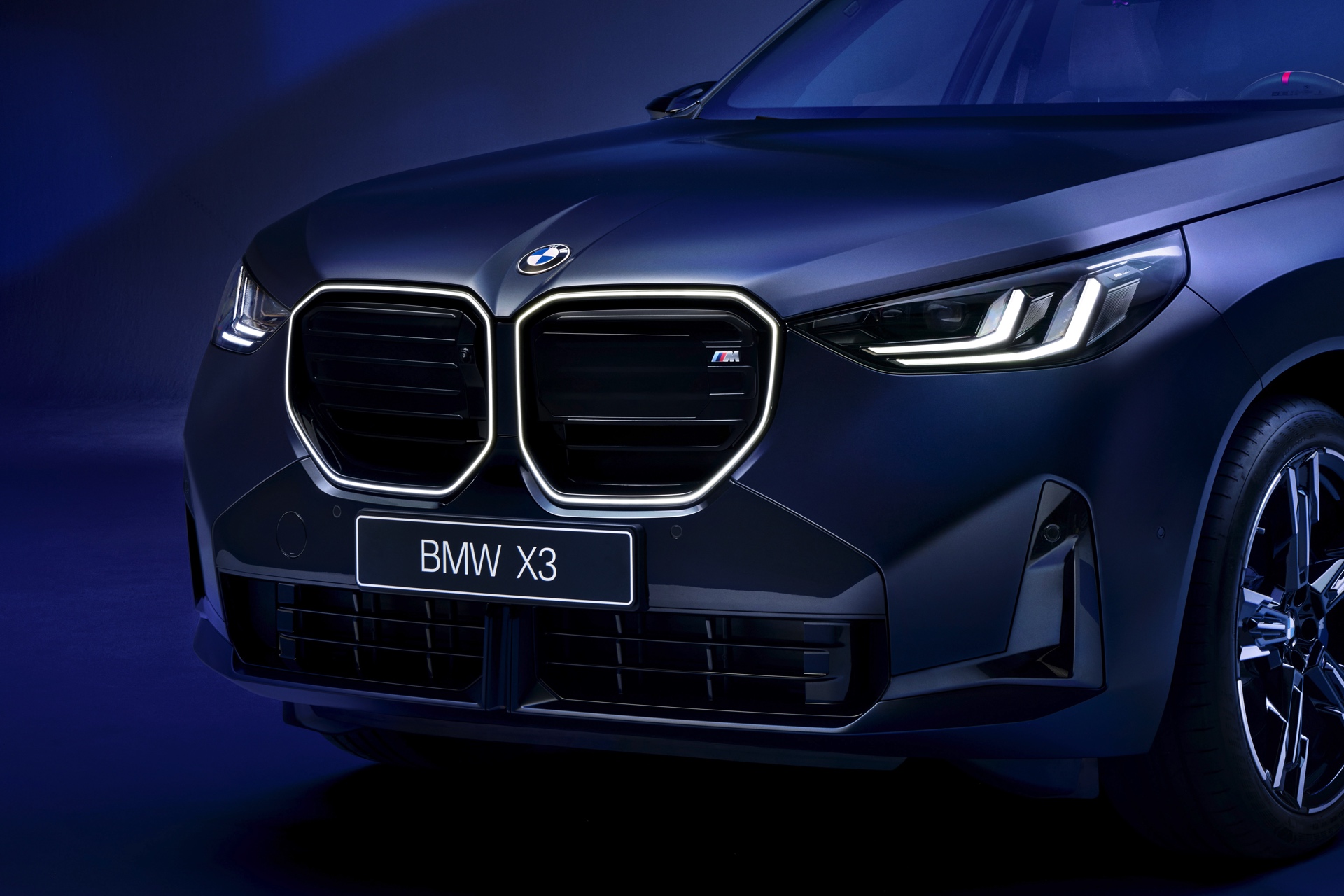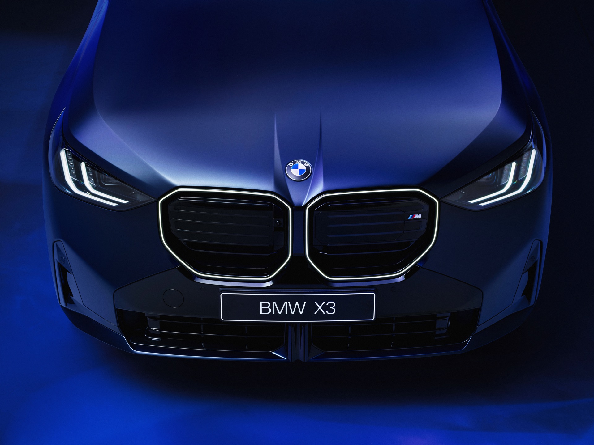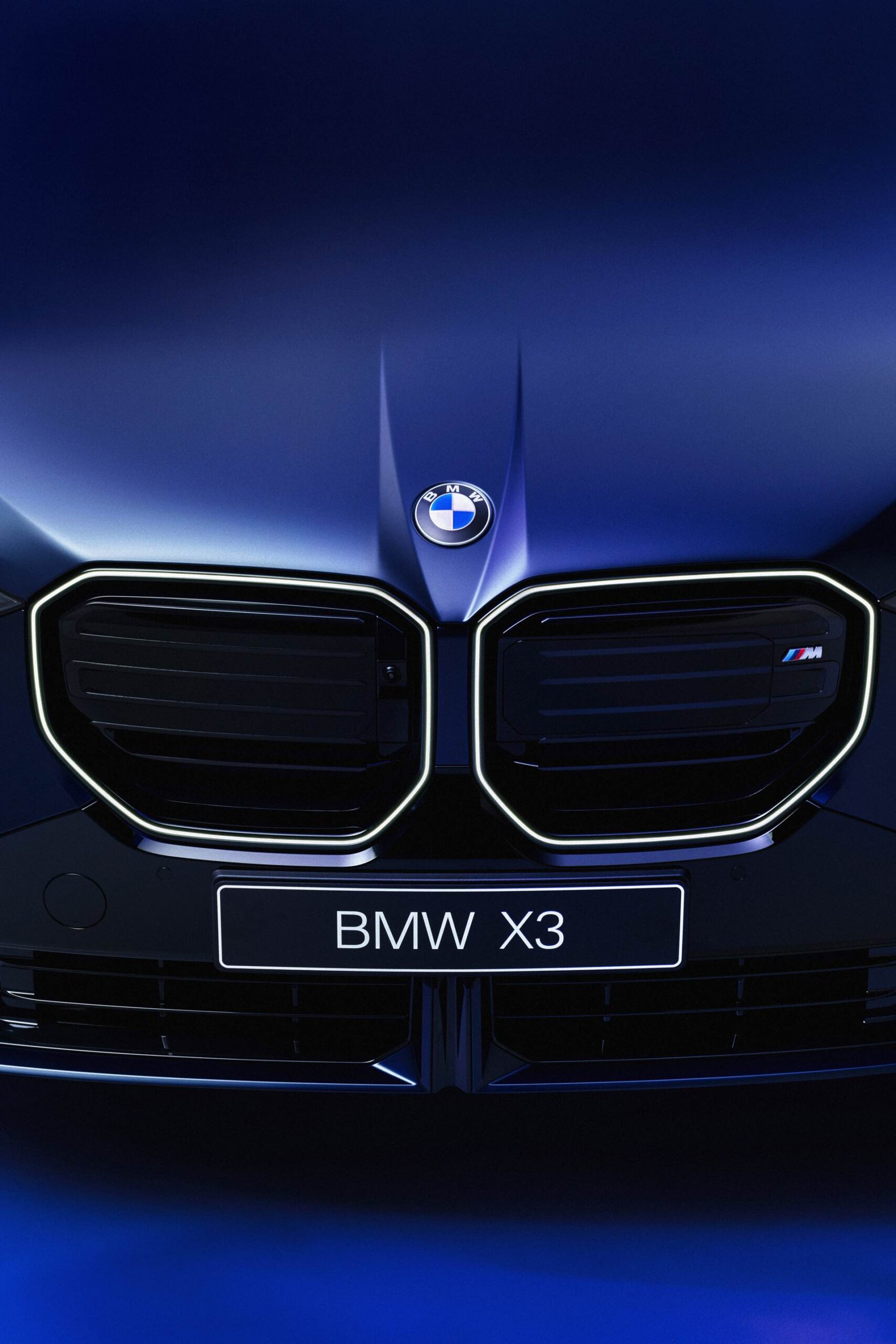 Bei den Felgen bevorzugen die BMW-Designer offenbar die 21 Zoll großen M Leichtmetallräder Sternspeiche 1037 M Bicolor, die zu den größten ab Werk erhältlichen Rädern für den neuen X3 zählen. Auf manchen Fotos kommt außerdem die spezielle Wirkung der beleuchteten Iconic Glow-Nieren zur Geltung, die gerade bei Nacht für eine eigenständige Optik des X3 sorgt.