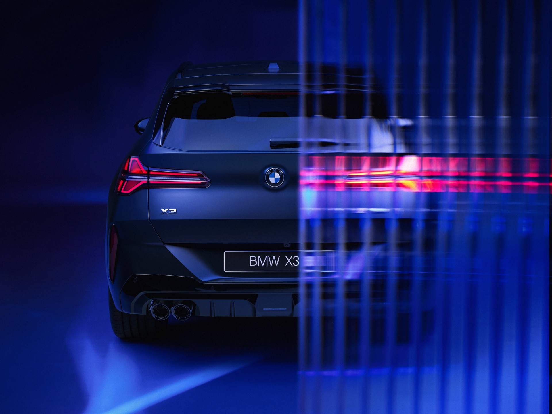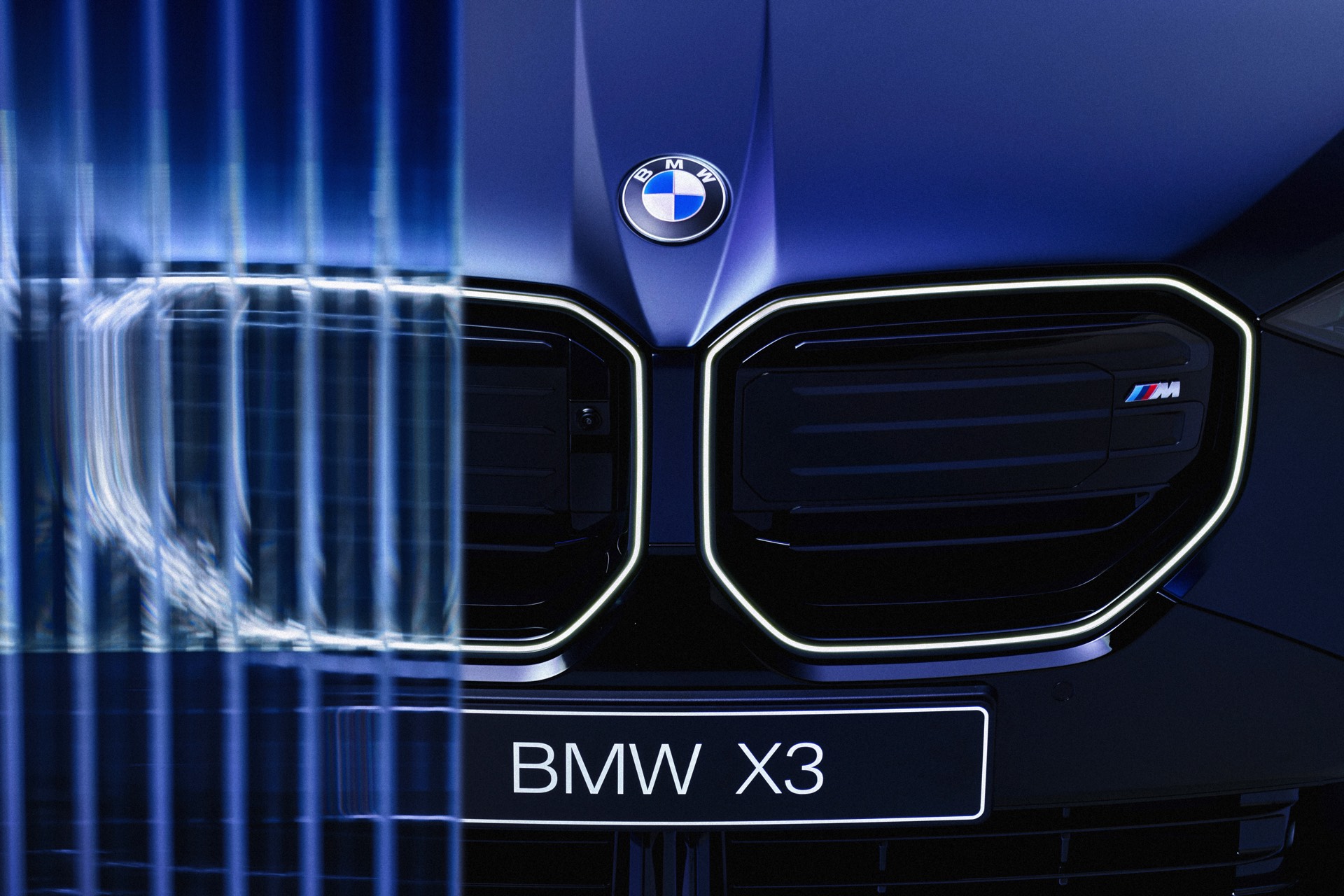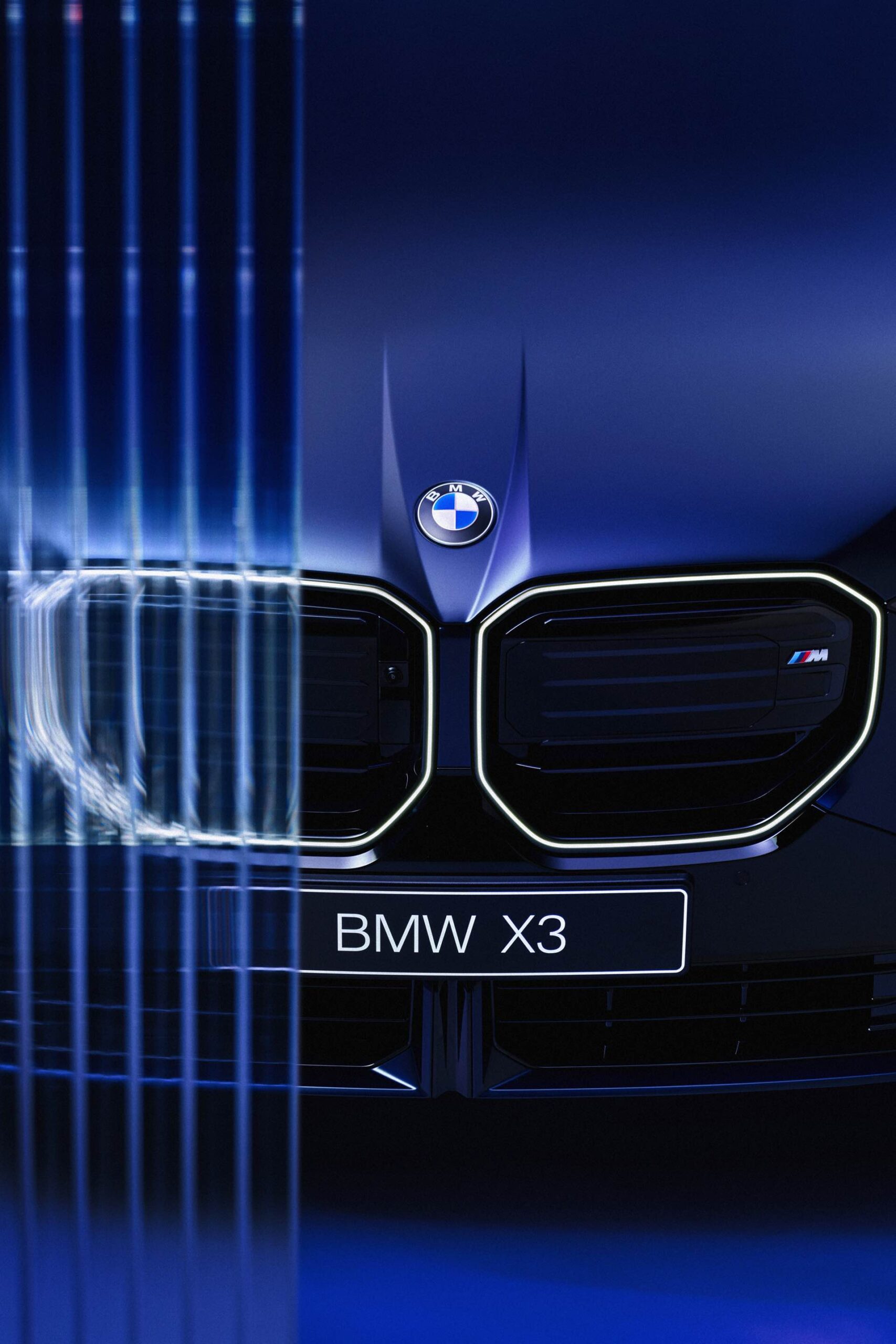 Bei den Felgen bevorzugen die BMW-Designer offenbar die 21 Zoll großen M Leichtmetallräder Sternspeiche 1037 M Bicolor, die zu den größten ab Werk erhältlichen Rädern für den neuen X3 zählen. Auf manchen Fotos kommt außerdem die spezielle Wirkung der beleuchteten Iconic Glow-Nieren zur Geltung, die gerade bei Nacht für eine eigenständige Optik des X3 sorgt.