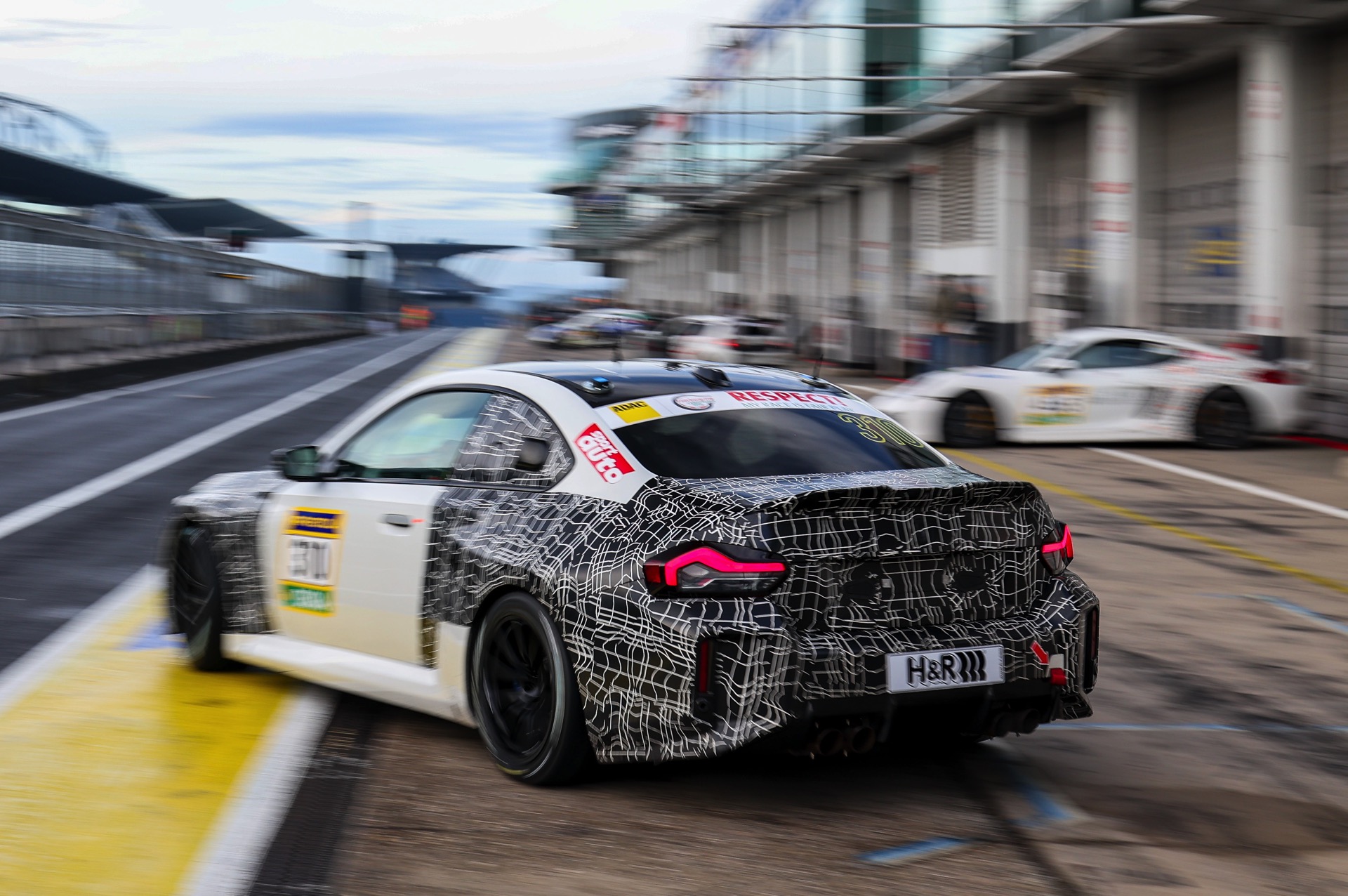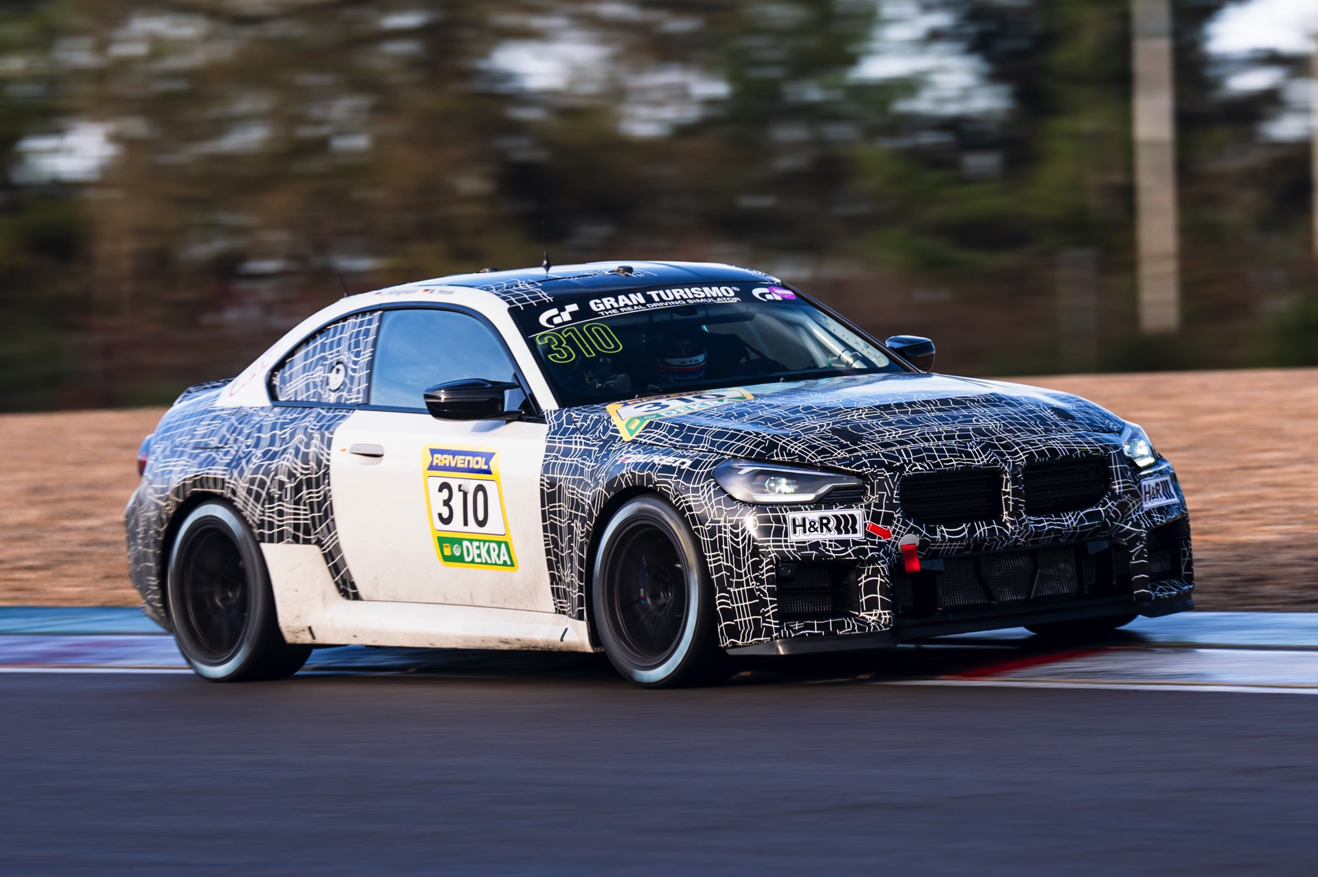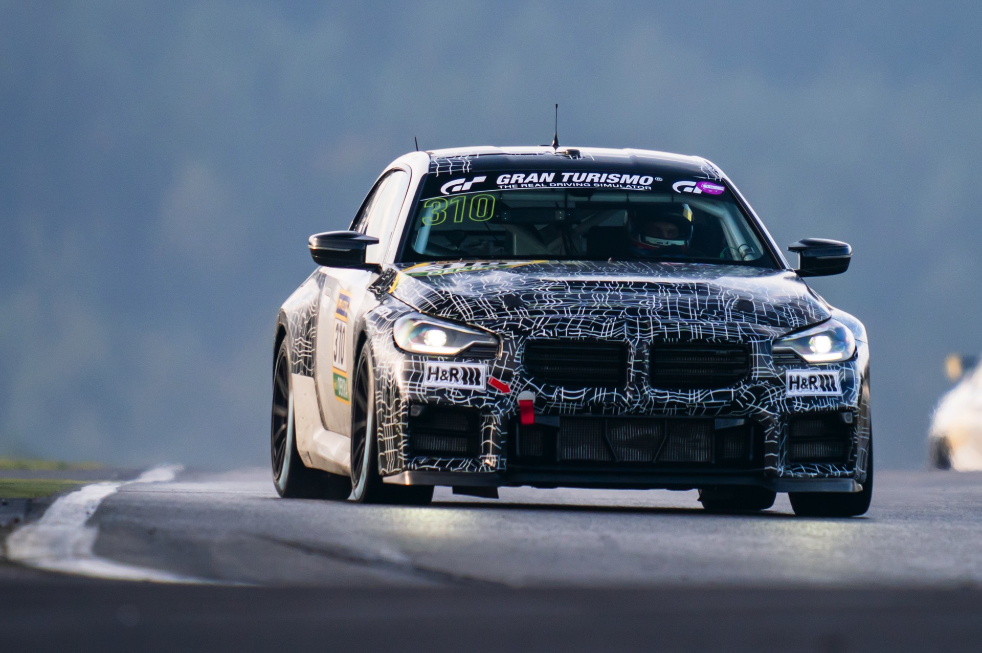 Dass Motorleistung dabei eine völlig untergeordnete Rolle spielt, zeigt sich spätestens beim Blick unter die Motorhaube: Während der Serien-G87 mit Biturbo-Reihensechszylinder und aktuell 480 PS aufschlägt, arbeitet unter der Haube des BMW M2 Racing “nur” eine Variante des Turbo-Vierzylinders B48. Mit 313 PS und 420 Newtonmeter Drehmoment mangelt es dem Vierzylinder-G87 sicher nicht an Kraft, aber das klare Defizit im Vergleich zur Serie deutet an, dass für gute Rundenzeiten in seinem Fall vor allem die kurvigen Passagen ausschlaggebend sind. Nichtsdestotrotz lassen sich auf langen Geraden wie der Döttinger Höhe bis zu 270 km/h Höchstgeschwindigkeit erreichen.