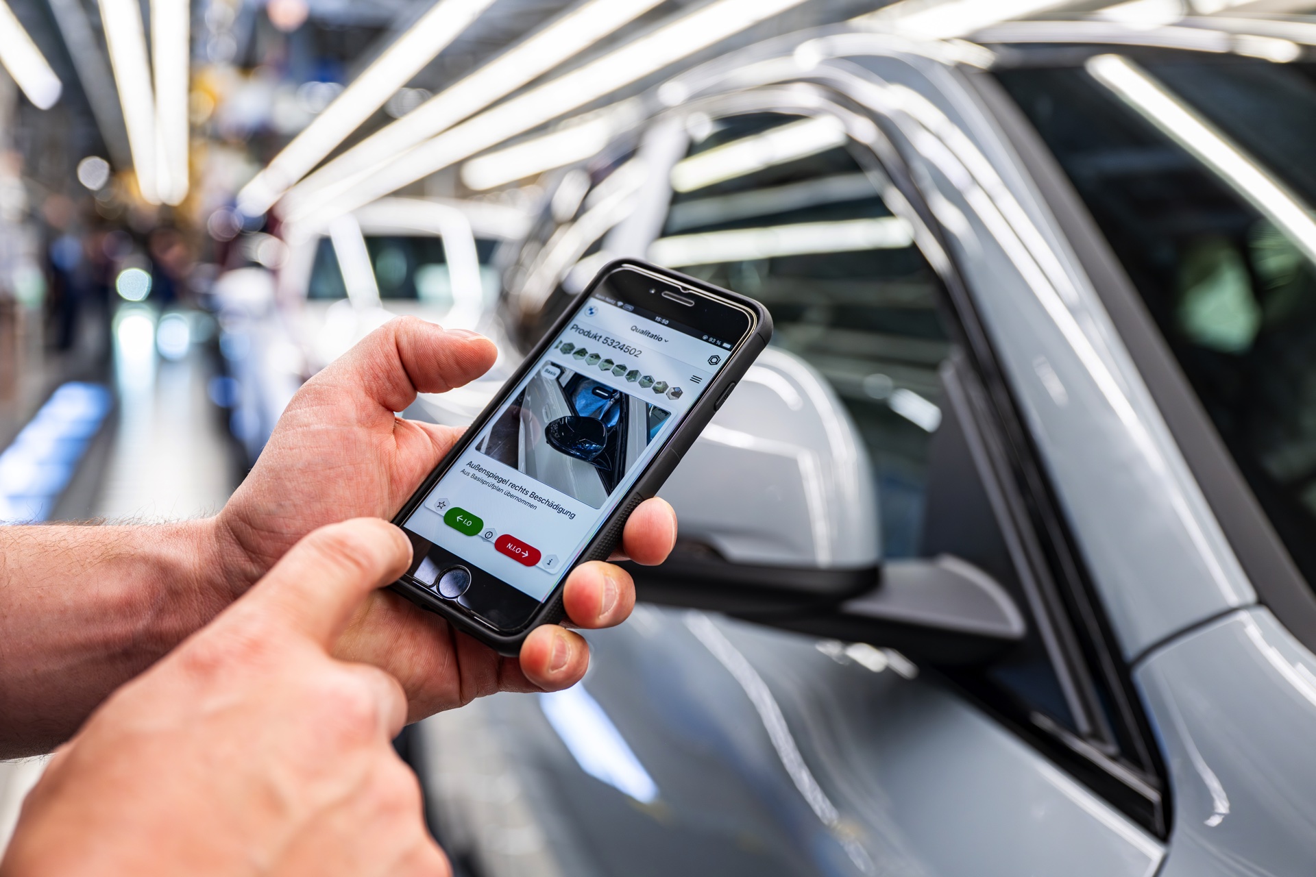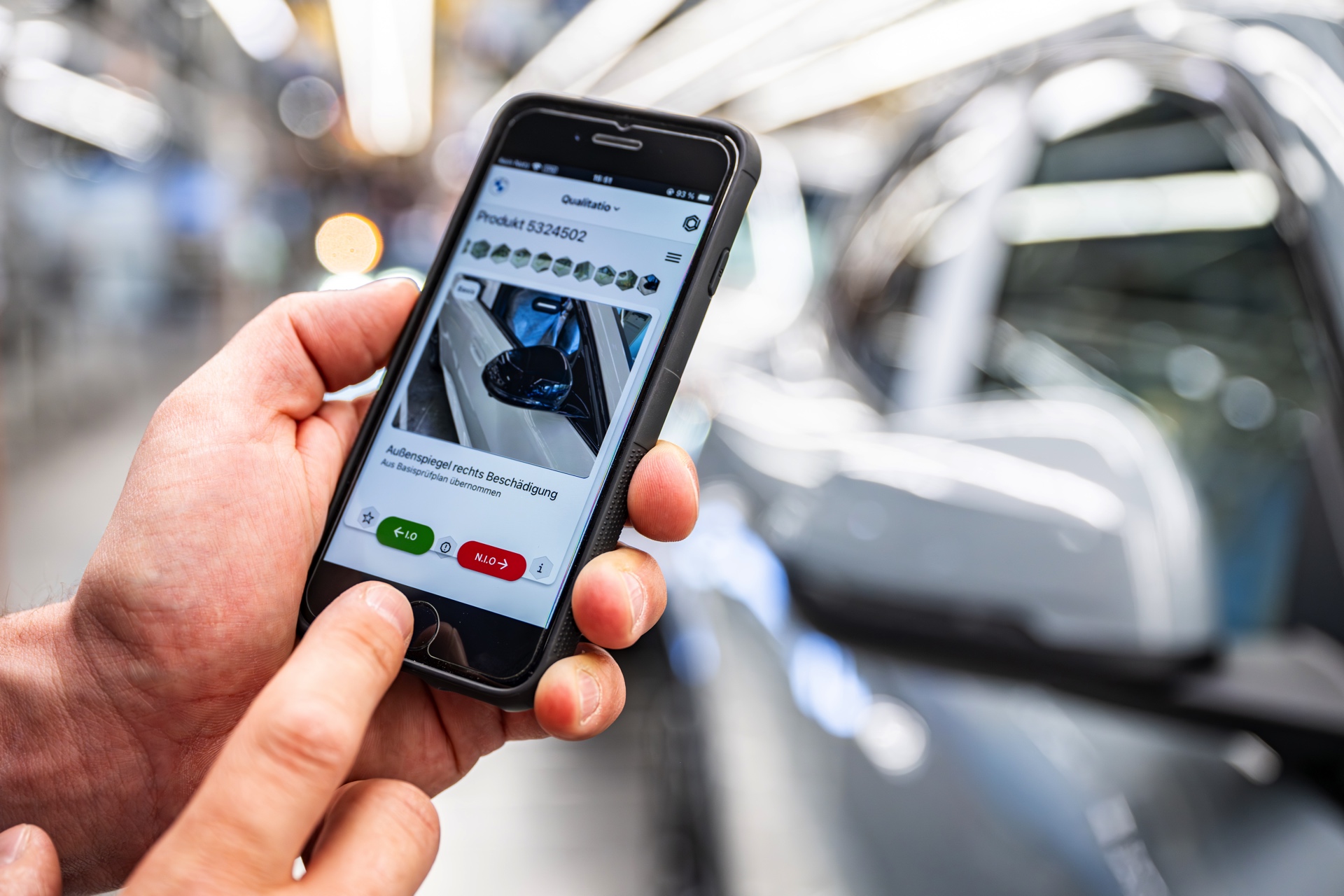 Rüdiger Römich (Verantwortlicher für Prüffeld und Finish in der Regensburger Fahrzeugmontage): “Unser KI-Tool erstellt einen individuellen Prüfkatalog für jedes spezifische Kundenfahrzeug. Eine intuitive Bedienung ermöglicht die einfache Erfassung der Prüfergebnisse. Der Mitarbeitende kann dabei bei Bedarf auch weiterführende Funktionen nutzen, beispielsweise über ein Mikrofon-Icon in der App eine Sprachaufnahme starten.”