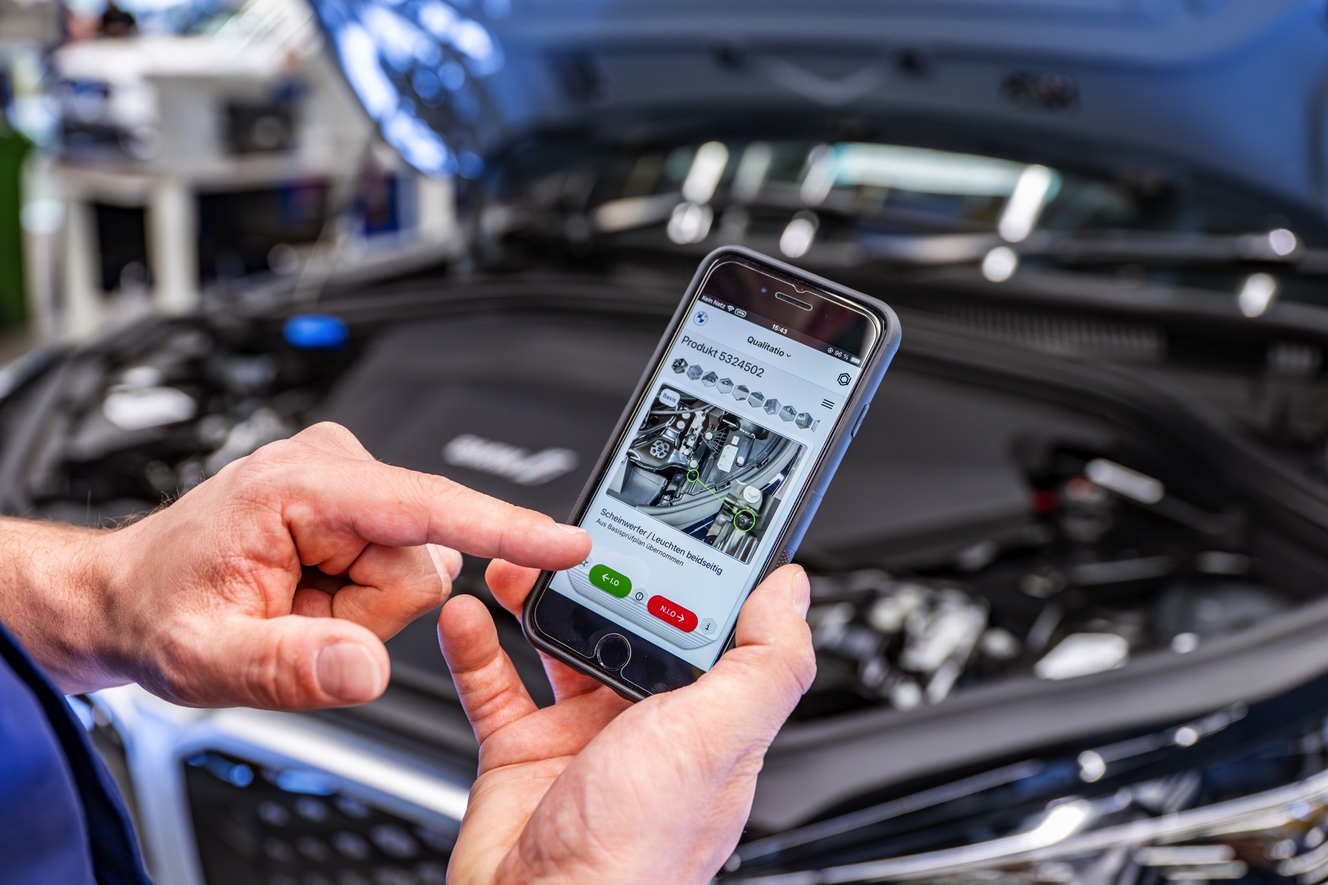 Neben der Konfiguration berücksichtigt die GenAI4Q-KI auch aktuelle Daten aus der Produktion, sucht selbständig nach Mustern und Zusammenhängen und stellt auf Basis ihrer Erfahrungen einen Prüfumfang zusammen, der von den Mitarbeiterinnen und Mitarbeitern in Prüffeld und Finish des Werks abgearbeitet werden kann. Zur Verfügung gestellt werden die Ergebnisse der Qualitätscheck-Analyse in einer Smartphone-App, über die auch Ergänzungen und Rückmeldungen zur KI-Empfehlung gemacht werden können.