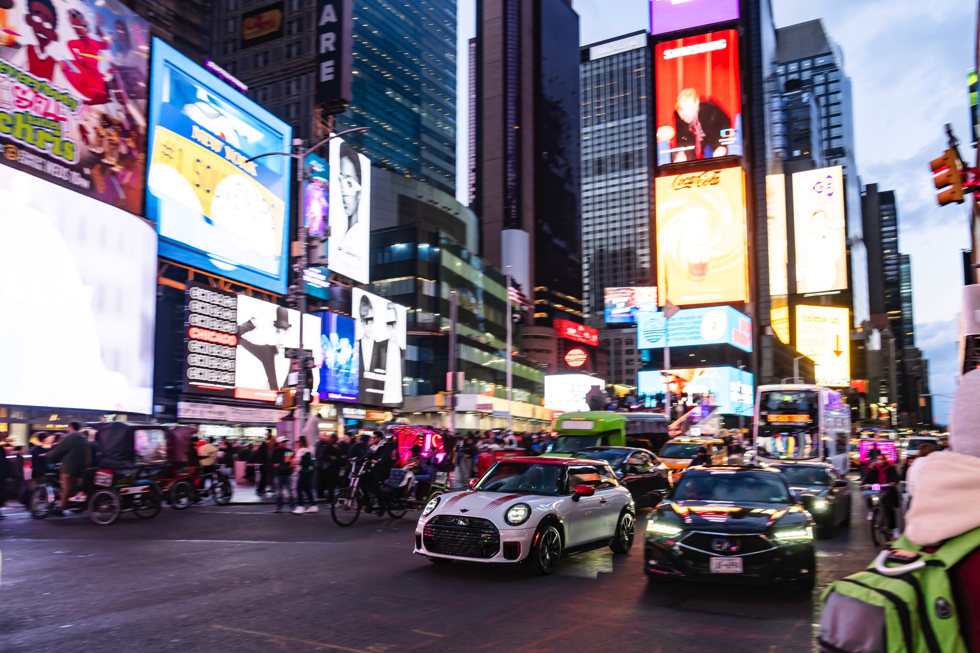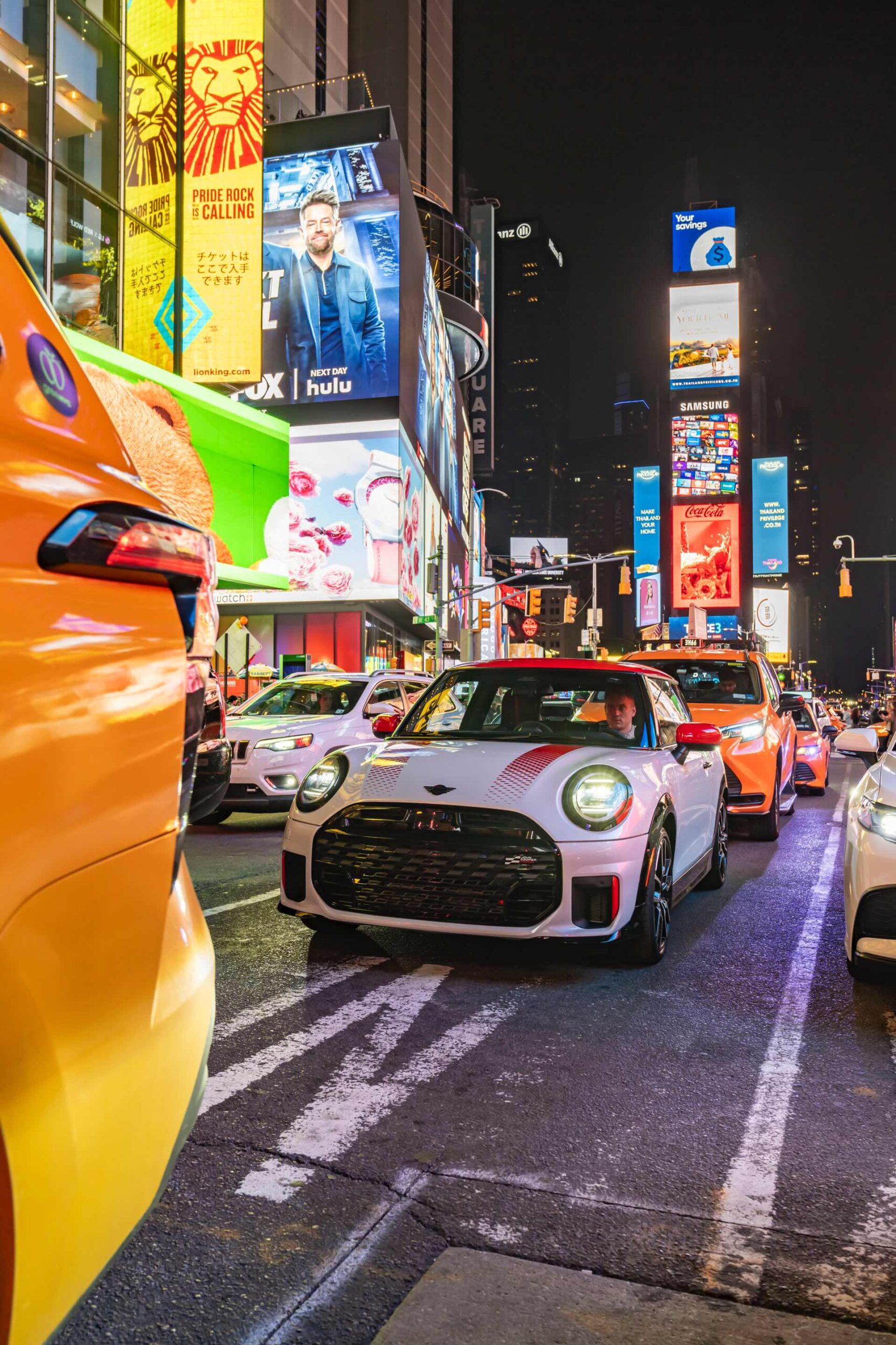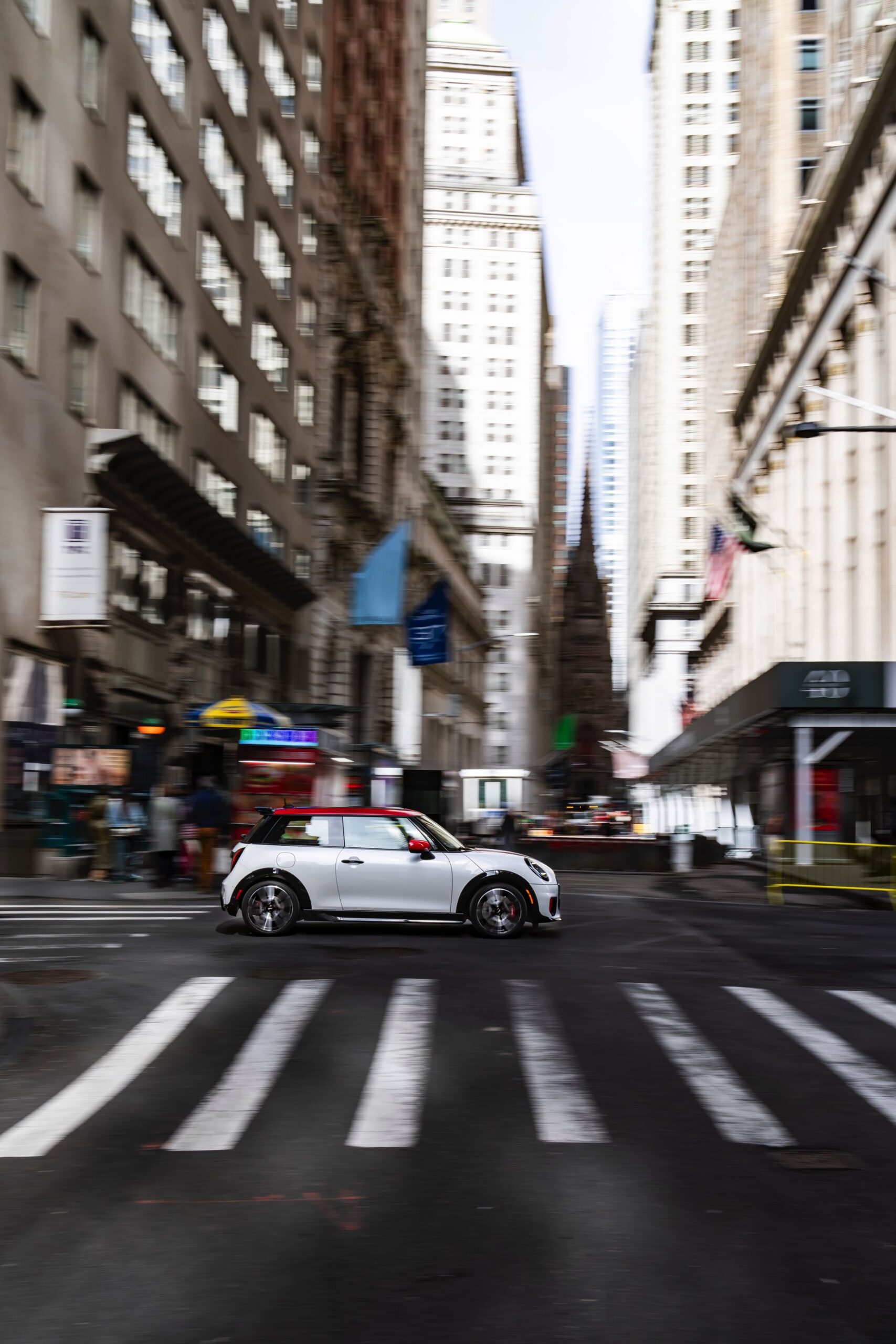 Der MINI Cooper ist selbst im europäischen Kontext ein knackig-kompaktes Auto, auch wenn seine Vorgänger noch wesentlich kleiner waren. In den USA allerdings, wo fast alles etwas größer ist und riesige SUV viel öfter als Kleinwagen anzutreffen sind, sind allein schon die Abmessungen eines MINI Hatch ein Statement. Besonders scharf wird der Kontrast in einer Stadt wie New York City, die mit ihren Wolkenkratzern und dem bunten Mix an Kulturen wie keine andere für den American Way of Life steht.
