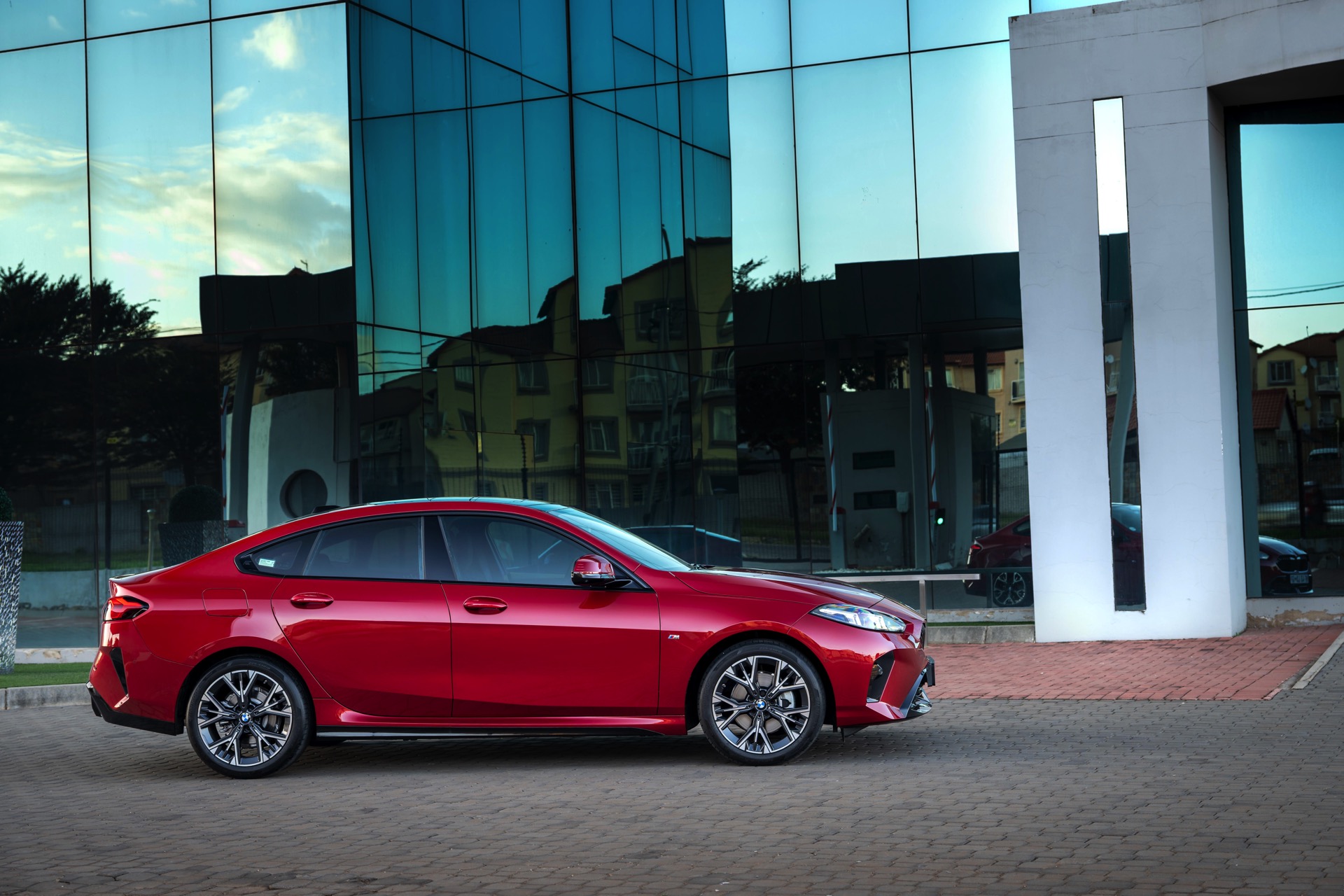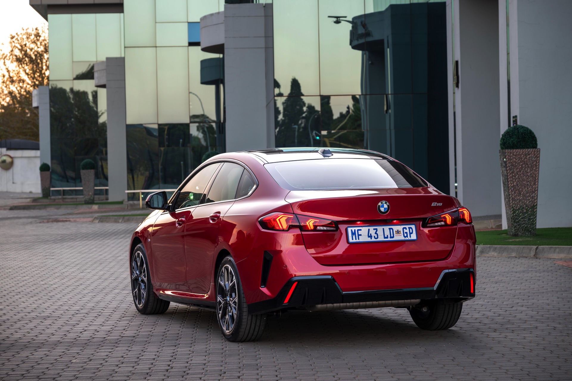 Fire Red Metallic kann es in Sachen Leuchtkraft und Auffälligkeit mühelos mit einigen Individual-Lacken aufnehmen, gerade im vollen Sonnenlicht ist das intensive Rot ein absoluter Hingucker. Zu den Baureihen, für die der in den USA als Vegas Red bezeichnete Farbton verfügbar ist, zählt auch das neue BMW 2er Gran Coupé (F74), das sich nun in einer relativ preisbewussten und dennoch sehr markanten Konfiguration zeigt: In Südafrika zeigt sich das viertürige Coupé als vergleichsweise günstiges Einstiegsmodell 218, andererseits steht die Wahl des M Sport Pro-Pakets für einen ausgesprägten Wunsch nach Sportlichkeit und Fahrspaß.