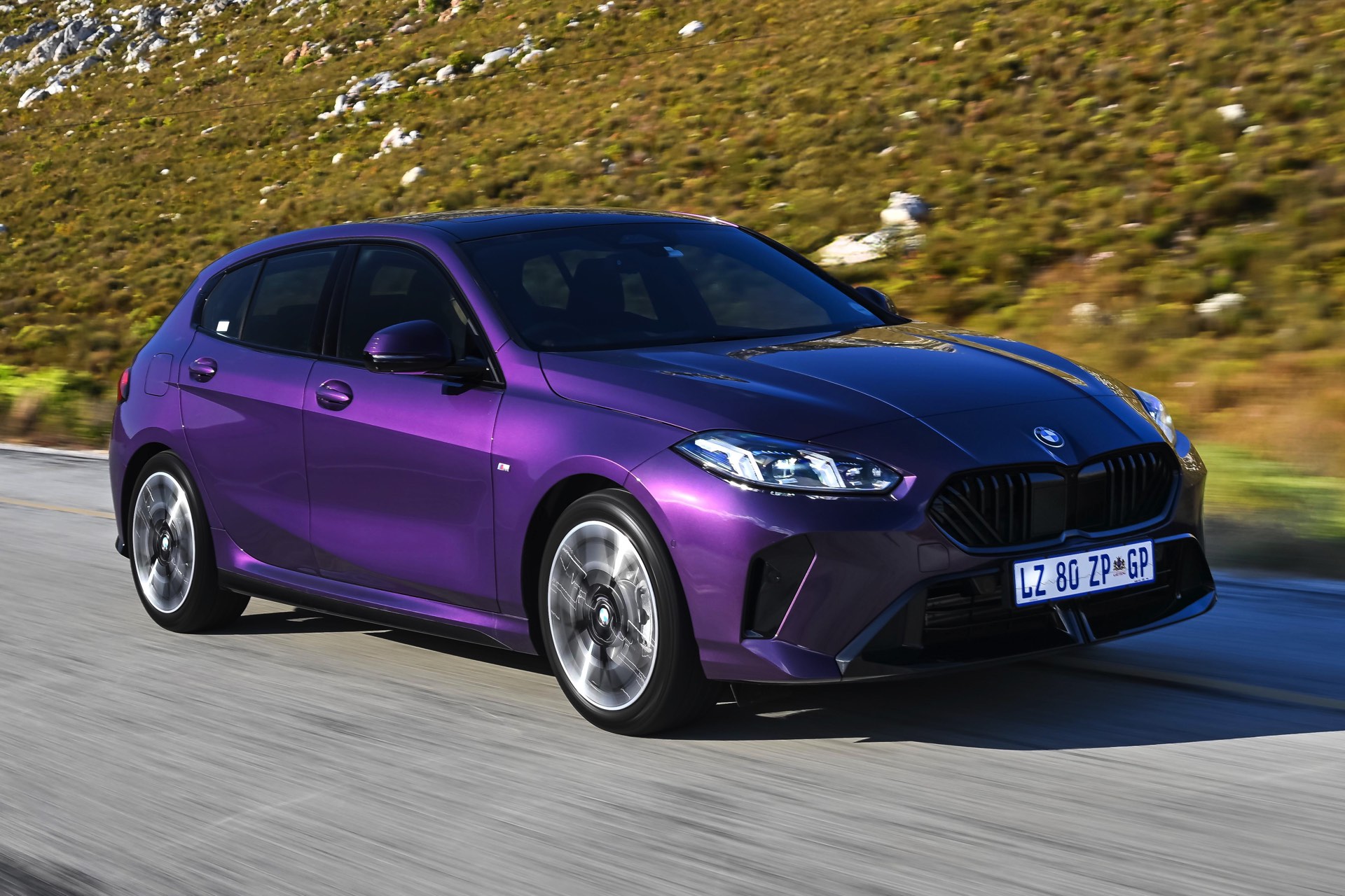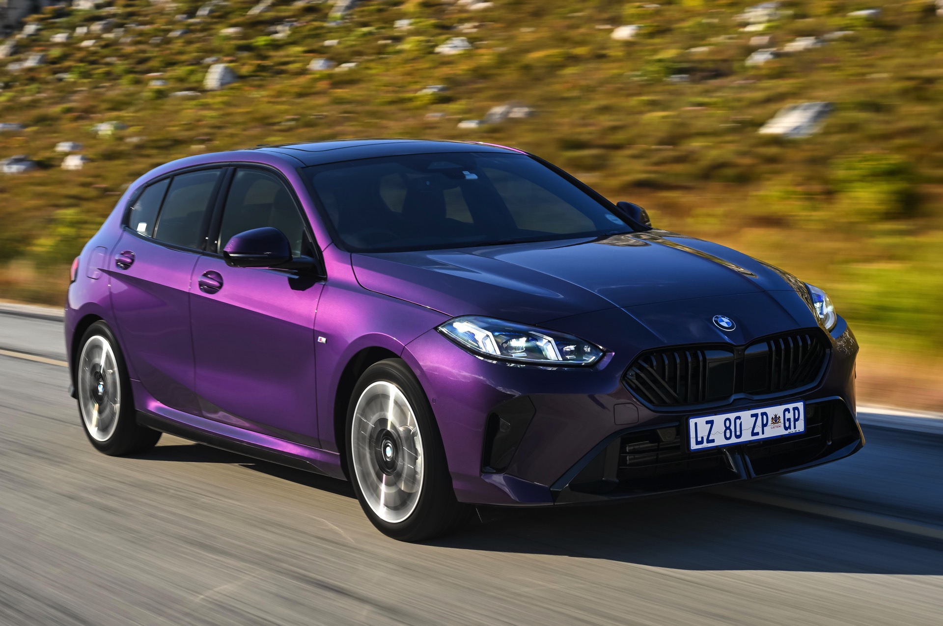 Thundernight Metallic zählt zur seltenen Sorte von Farben, die ein Fahrzeug schon im Alleingang zum Hingucker machen können. Das intensive Violett lässt selbst einen BMW 1er (F70) in Serien-Konfiguration aus der Masse herausragen, aber in Verbindung mit dem M Sport Pro-Paket wird der Kompakte aus Leipzig endgültig zum Star auf so gut wie jedem Parkplatz. Aktuelle Fotos von BMW Südafrika zeigen uns einen neuen 118, der dort mit 156 PS die Rolle des Einstiegsmodells übernimmt und die einzige F70-Variante unterhalb des Topmodells M135 darstellt.