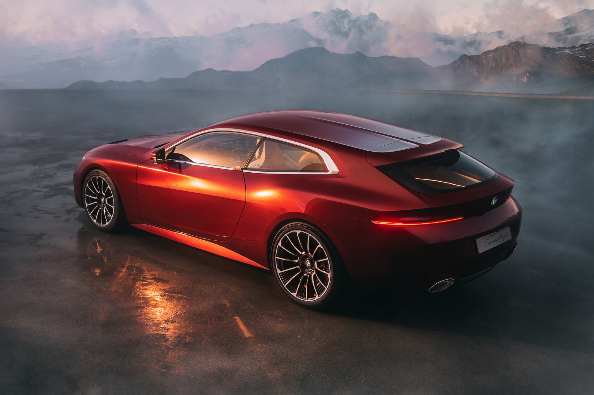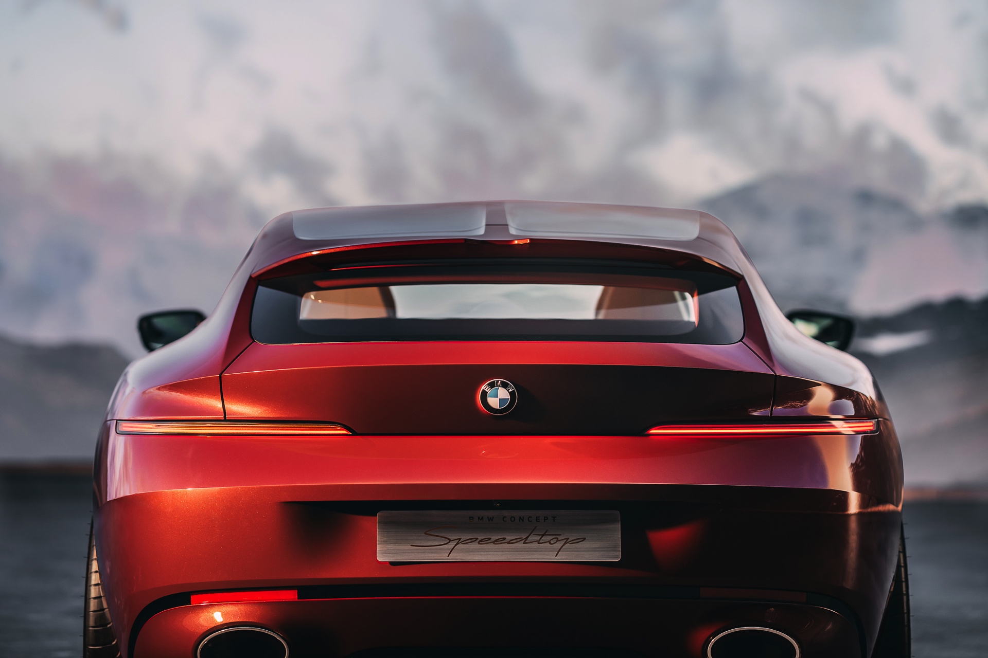Neben dem elegant gestreckten Kombi-Heck bietet der BMW Speedtop noch einige weitere Unterschiede zum Skytop, die bei genauerem Hinsehen ins Auge fallen: An der Front werden die Formen von Nieren und Lufteinlässen durch zusätzliche Zierelemente noch stärker betont, die Felgen sind eine sportlicher gestaltete Weiterentwicklung des Skytop-Designs und auch die Farben greifen die Ideen des Roadsters in gewisser Weise auf.