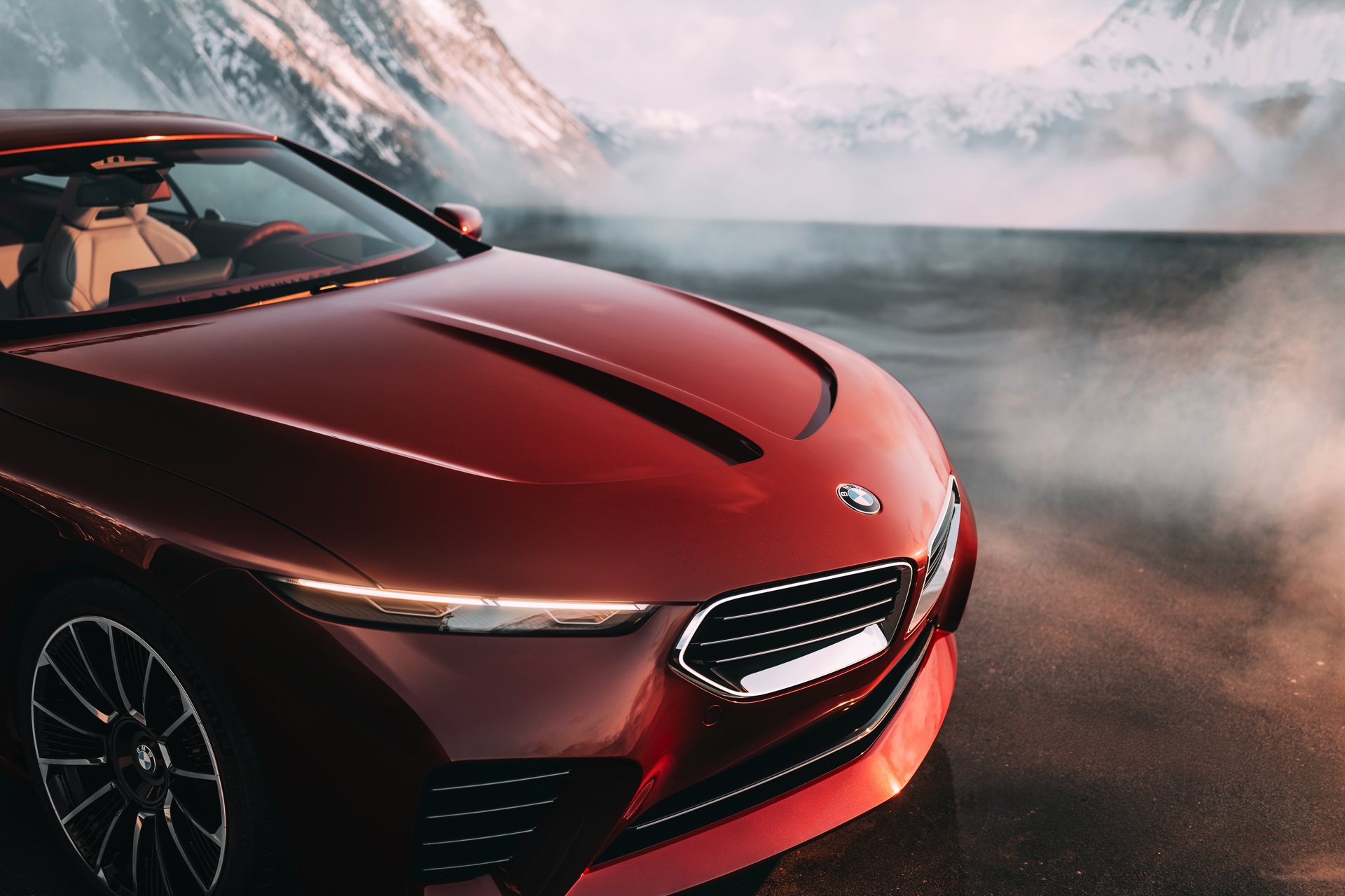 Floating Sunstone Maroon heißt die prägende Lackierung auf den meisten Oberflächen, doch das Dach ist mit einem coolen Effekt auch in Floating Sundown Silver lackiert – hier wurde der Look des BMW Skytop praktisch umgekehrt, denn dieser trägt auf der Yacht-artigen Fläche hinter den Insassen einen ganz ähnlichen Farbeffekt.
