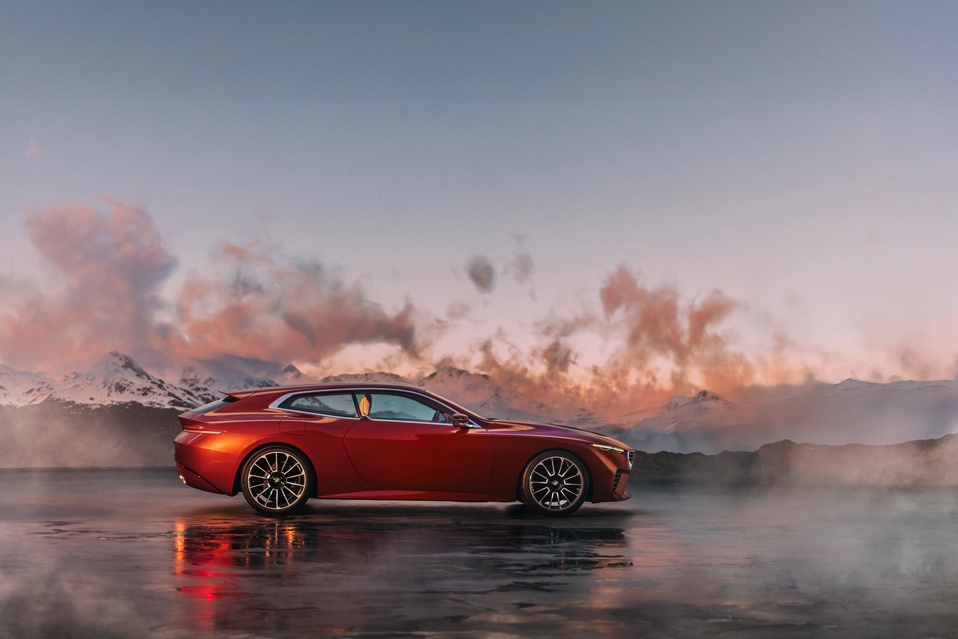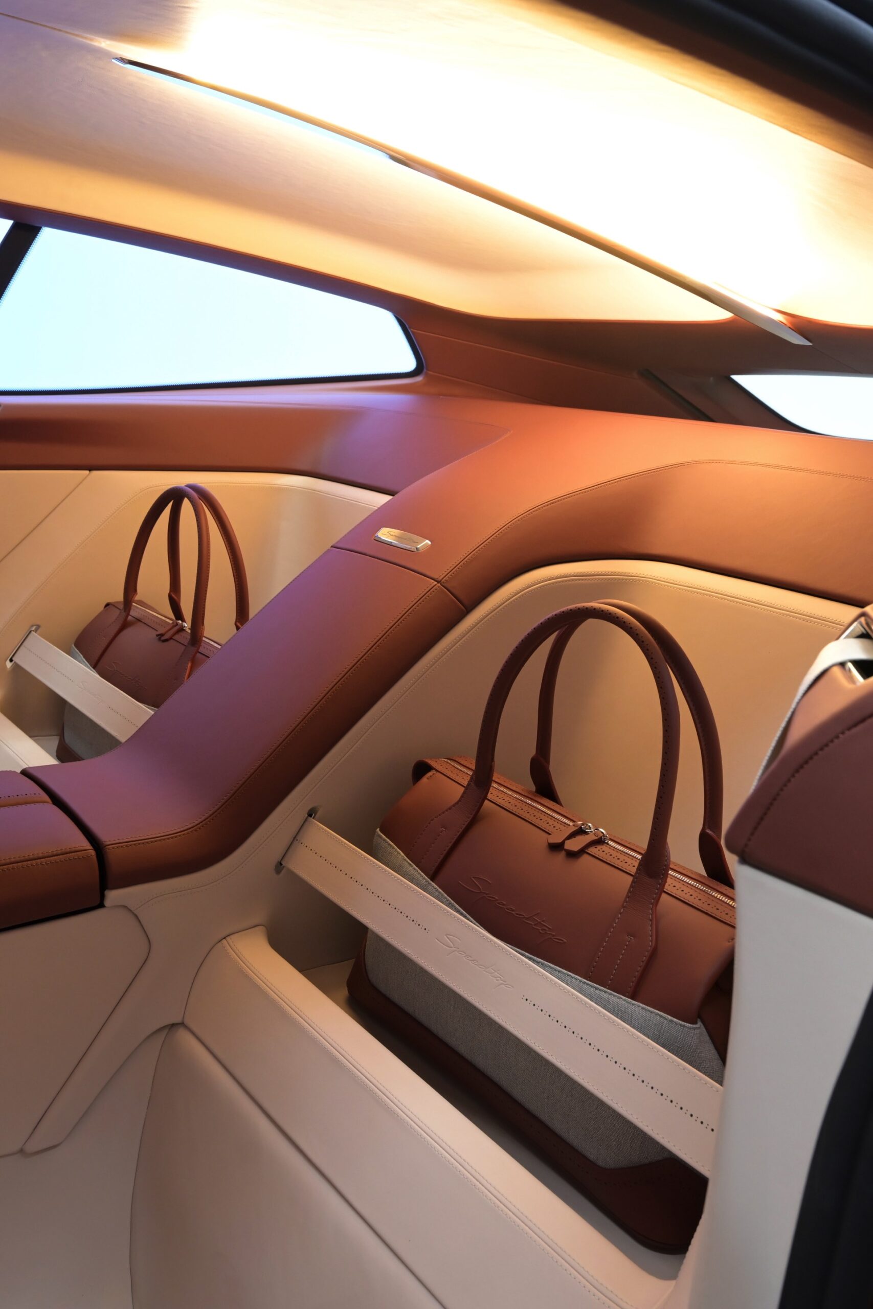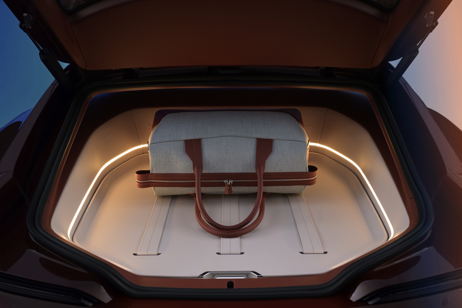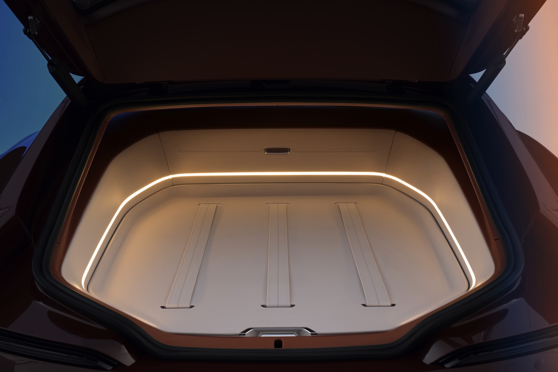 Das zentrale Zierelement auf dem Heck des Skytop wird am Dach des Speedtop zitiert und wer glaubt, dass ein derart eleganter Kombi sicher nicht viel Platz haben würde, wird hinter der elektrisch öffnenden Heckklappe eines Besseren belehrt: Unterhalb einer Abdeckung findet sich ein durchaus großzügiger Gepäckraum, in dem wahlweise ein Golfbag oder genügend Gepäck für einen Ausflug zu zweit Platz findet.