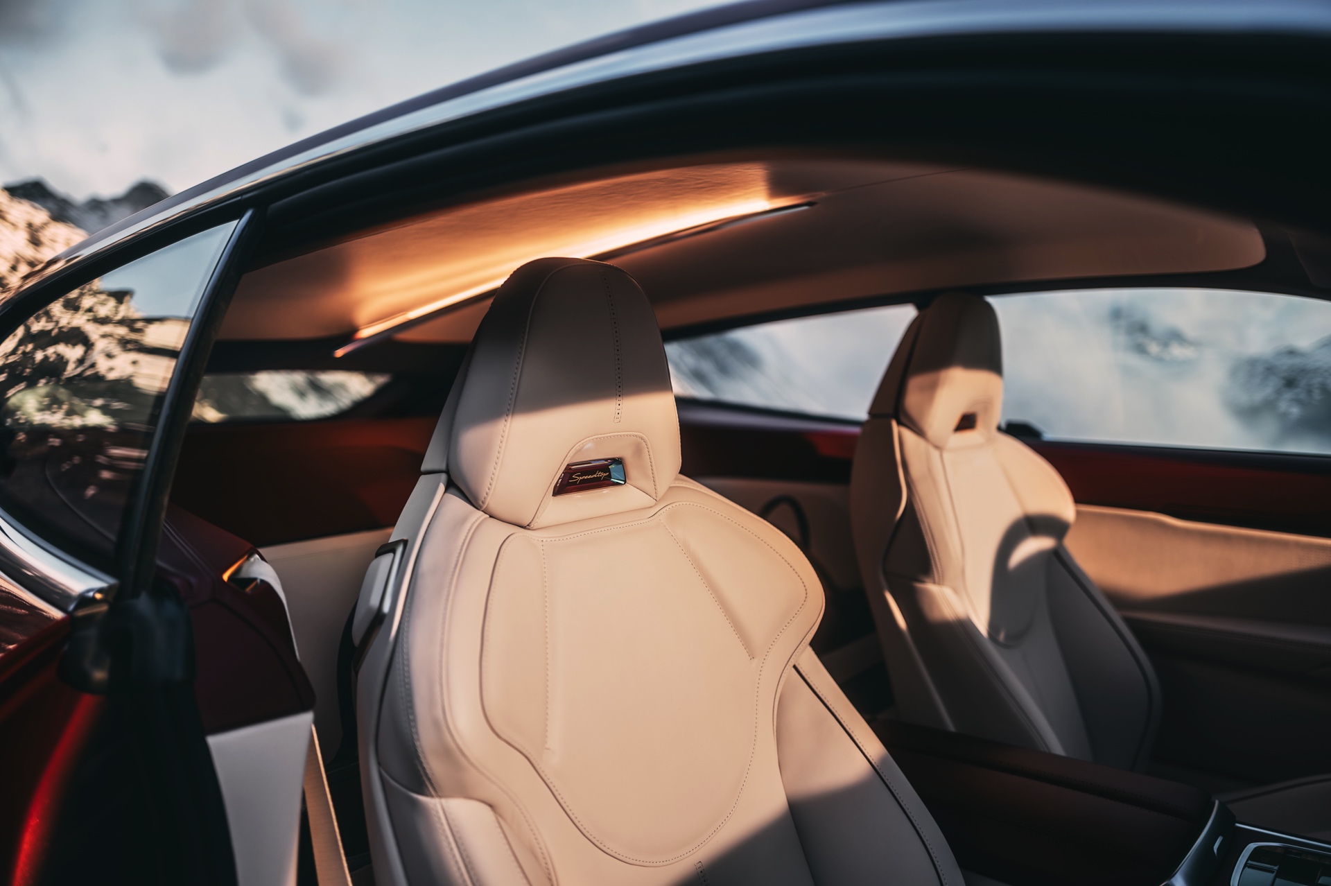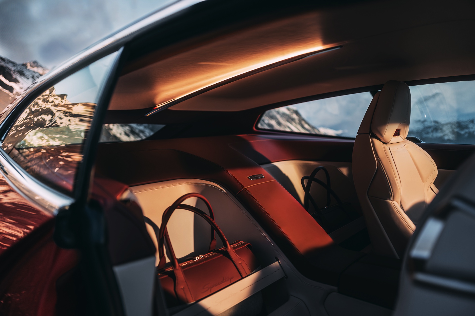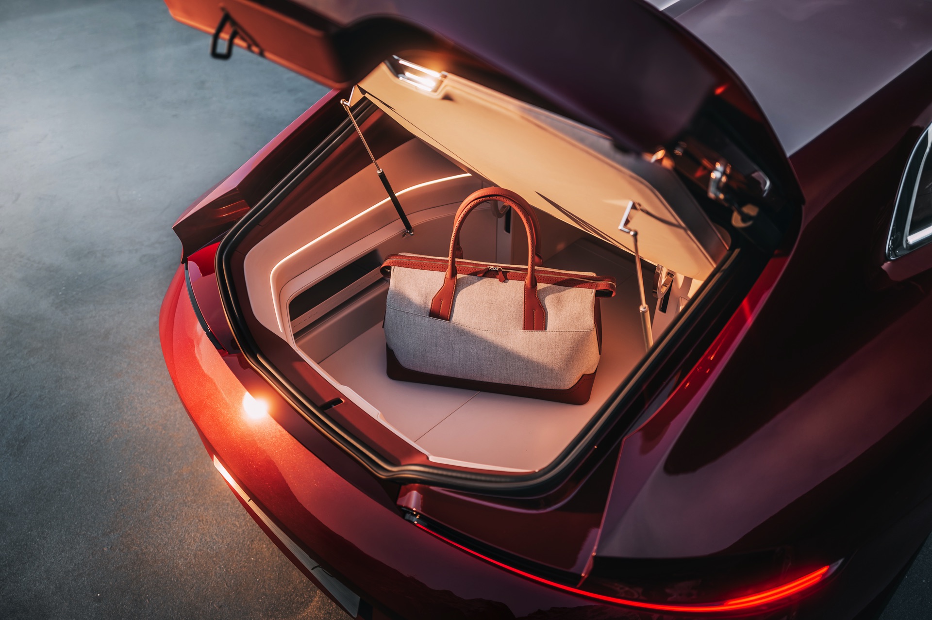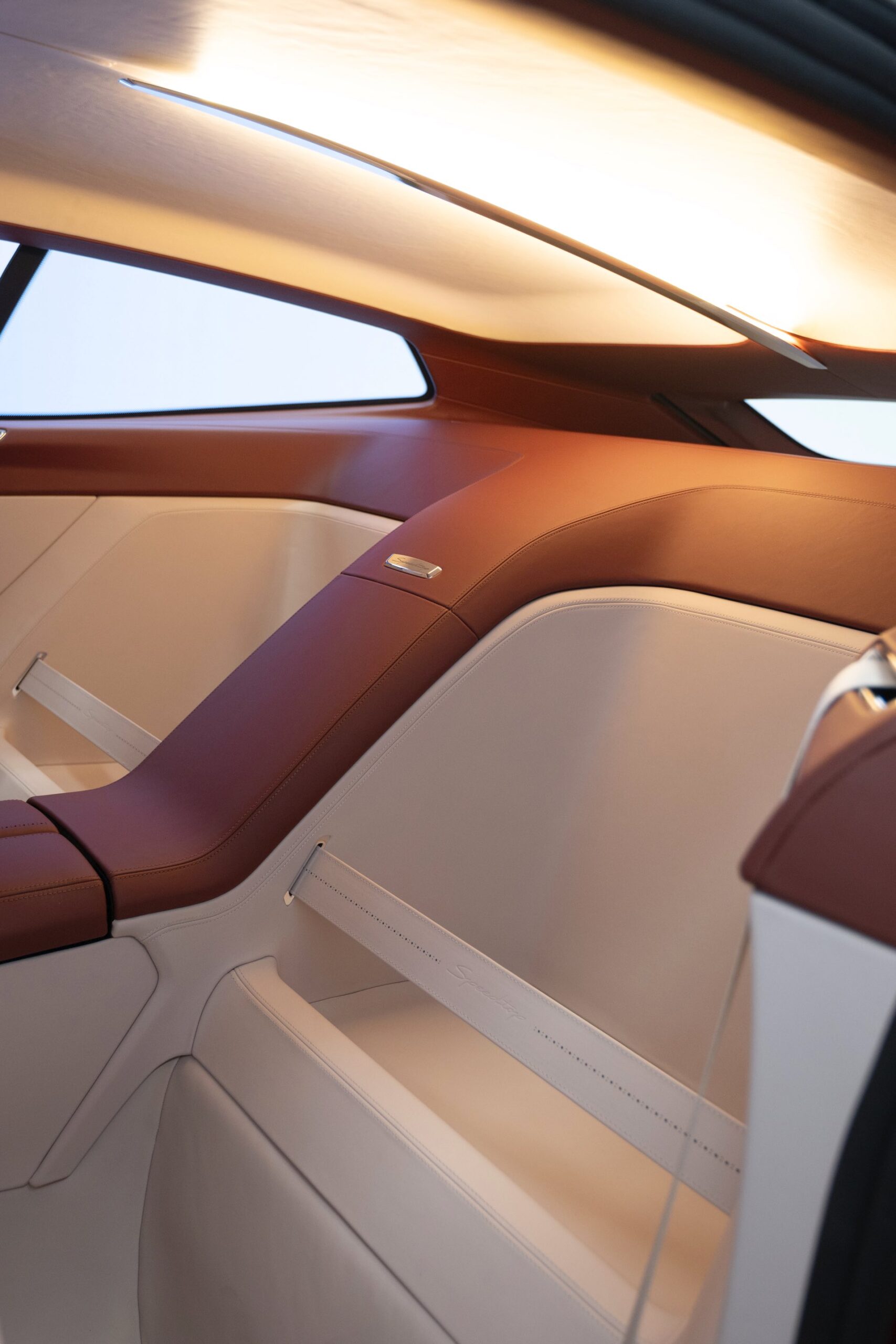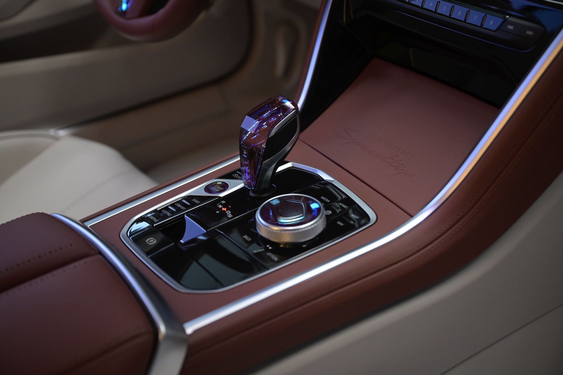 Anleihen an den BMW Skytop finden sich auch im Innenraum, dessen mit einer Bicolor-Lederausstattung in den Farben Sundown Maroon und Moonstone White veredeltes Cockpit eng an den 8er angelehnt ist. Hinter den Vordersitzen mit Details im Budapester-Stil findet sich jedoch keine Rückbank, sondern zwei Stellplätze für exklusive Gepäckstücke in passenden Farben.