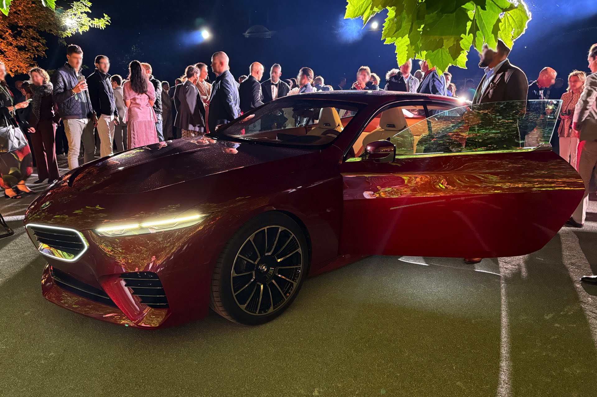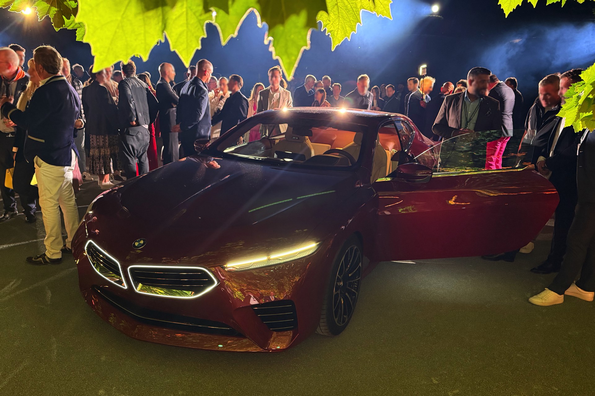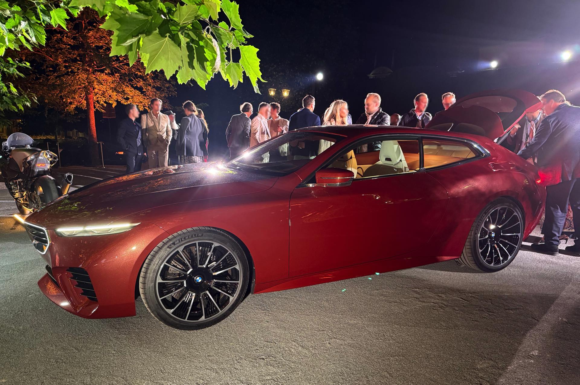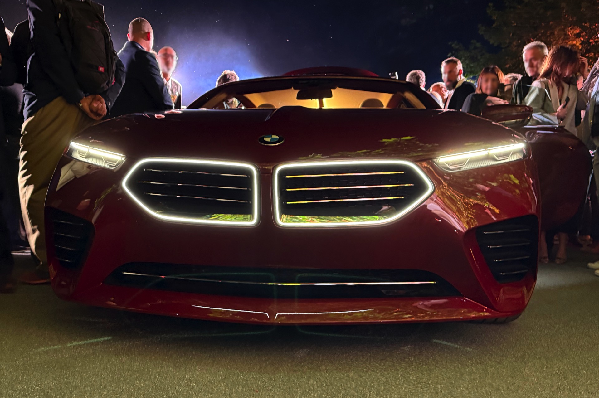 Bei seiner Weltpremiere im Rahmen des Concorso d’Eleganza Villa d’Este 2025 glänzt der BMW Speedtop mit einem Design, das sich im Bereich der Front eng am Skytop Roadster orientiert, der vor einem Jahr am gleichen Ort enthüllt wurde. Dank seiner tiefroten Lackierung wirkt der Speedtop dennoch völlig anders und bei Dunkelheit kommen sowohl die Iconic Glow-Niere als auch die extrem schmal gezeichneten Scheinwerfer ausgesprochen gut zur Geltung.