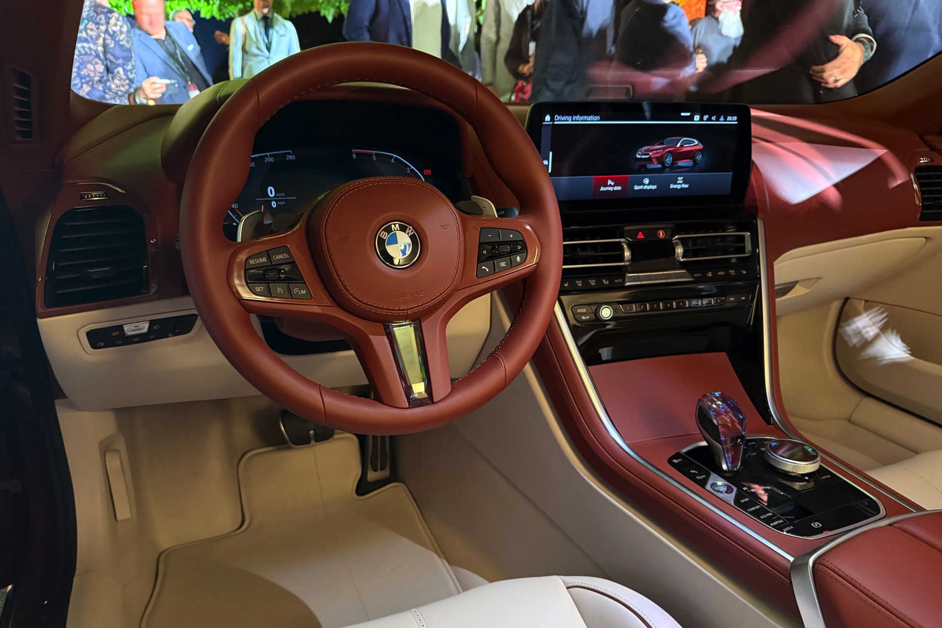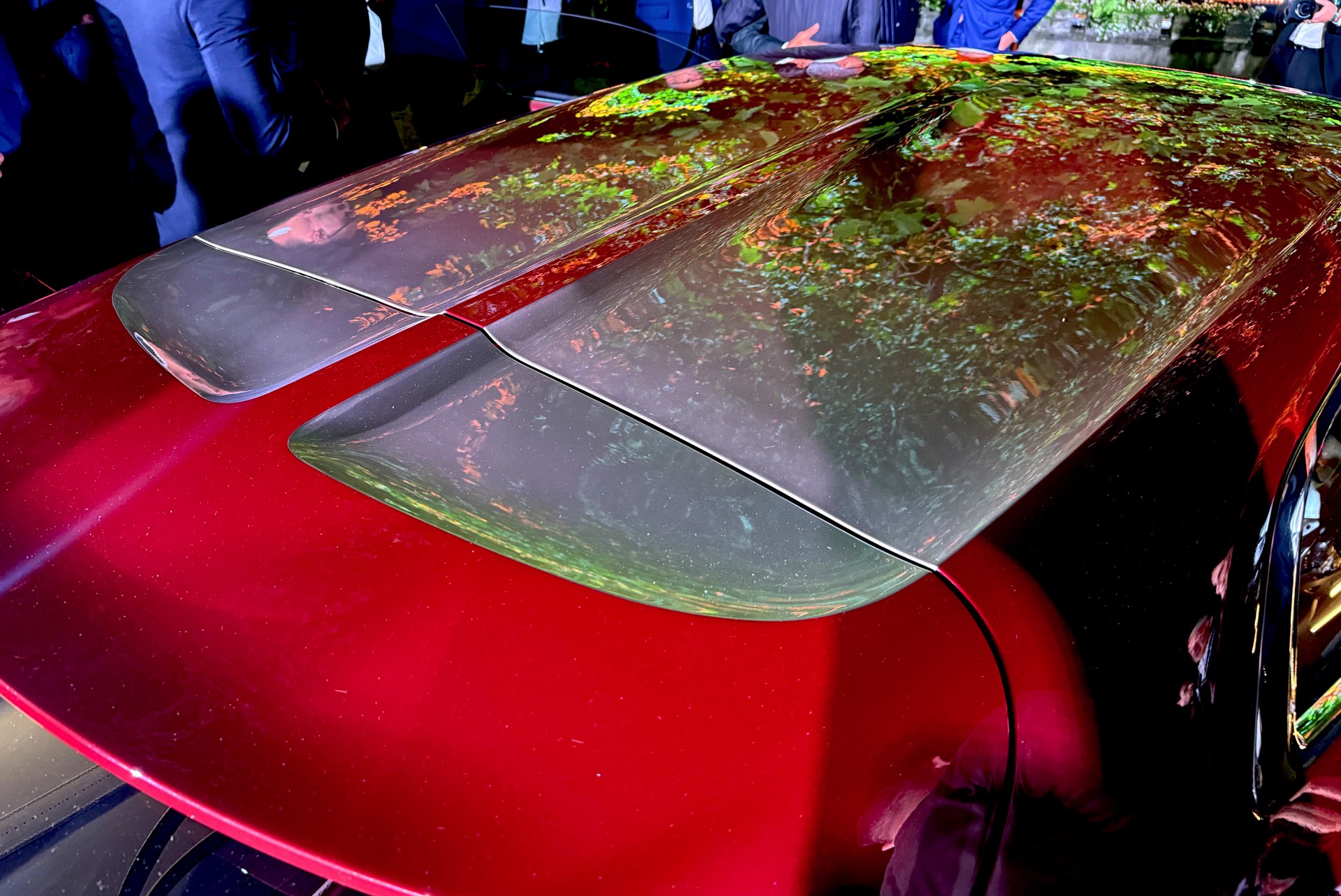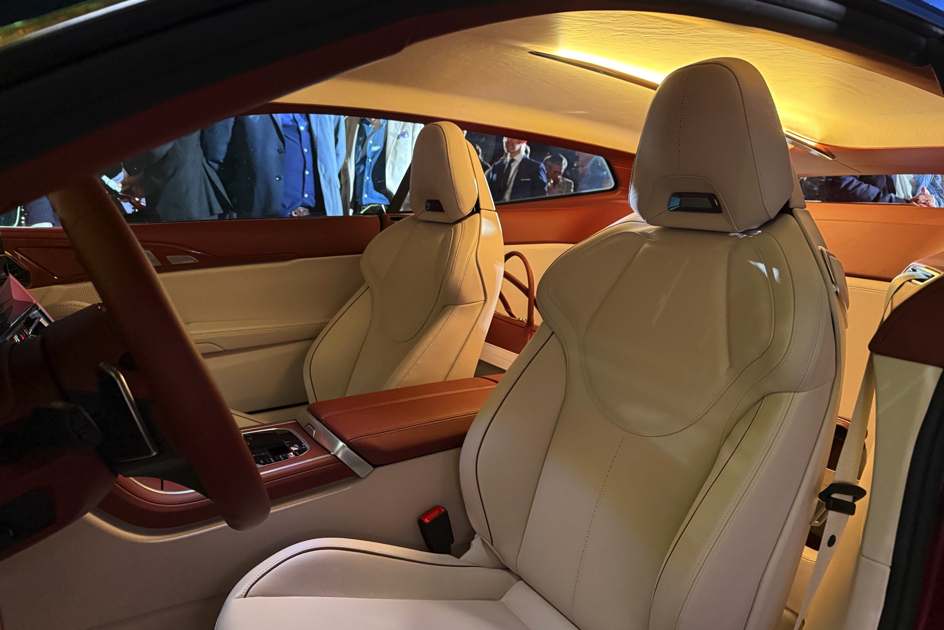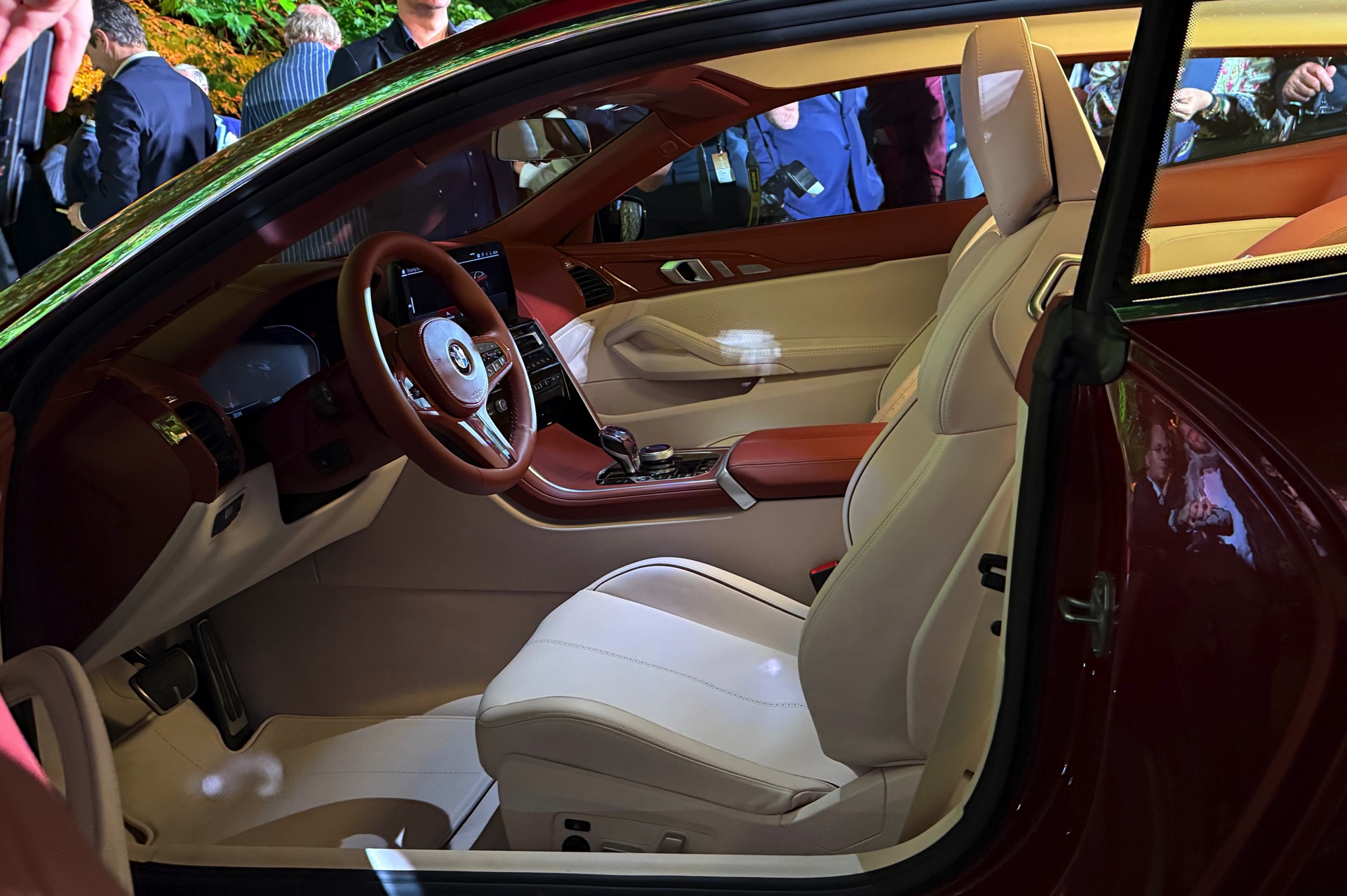 Bei seiner Weltpremiere im Rahmen des Concorso d’Eleganza Villa d’Este 2025 glänzt der BMW Speedtop mit einem Design, das sich im Bereich der Front eng am Skytop Roadster orientiert, der vor einem Jahr am gleichen Ort enthüllt wurde. Dank seiner tiefroten Lackierung wirkt der Speedtop dennoch völlig anders und bei Dunkelheit kommen sowohl die Iconic Glow-Niere als auch die extrem schmal gezeichneten Scheinwerfer ausgesprochen gut zur Geltung.