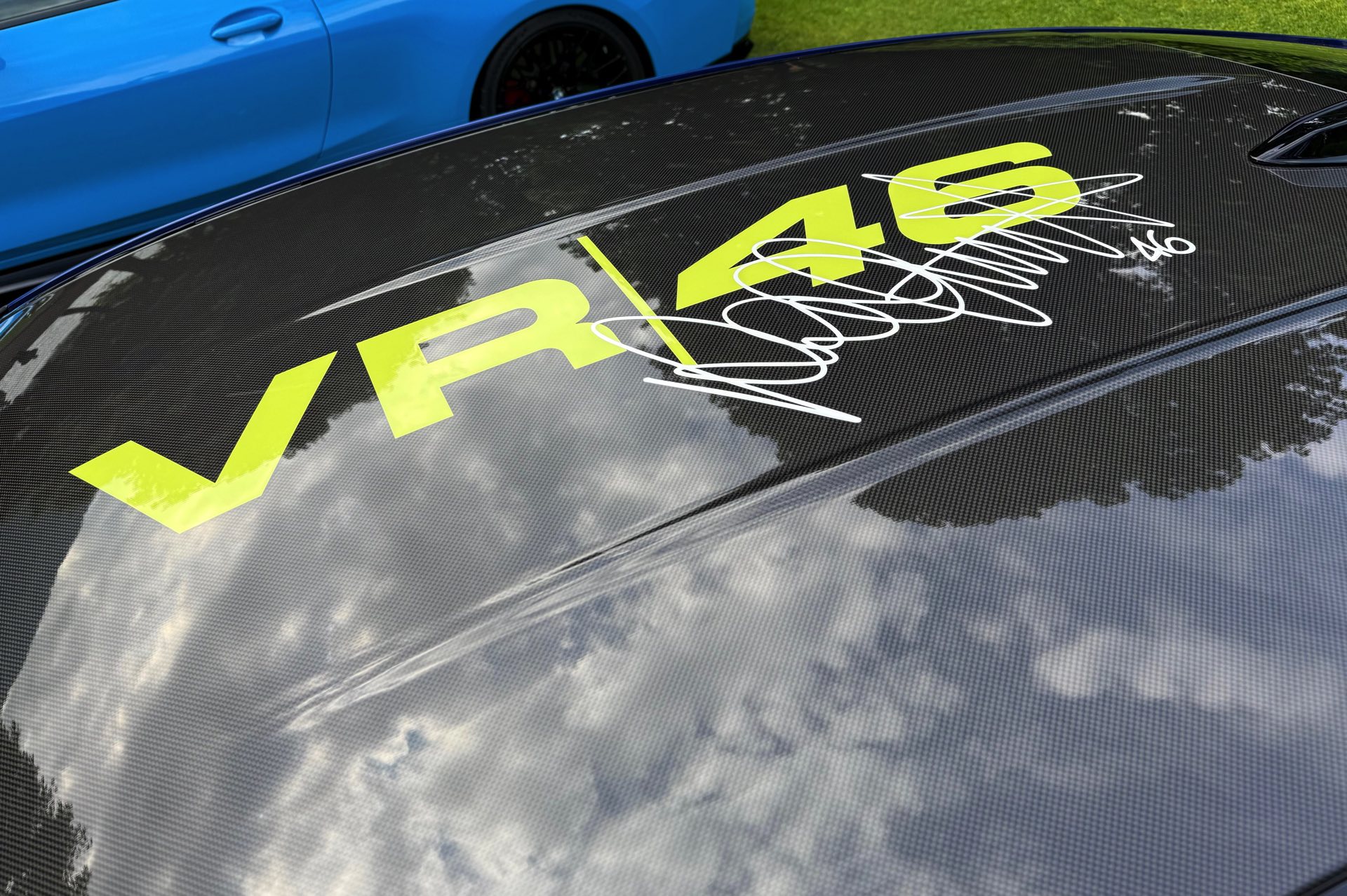 Nur aus ausgewählten Blickwinkeln tritt die spezielle Dach-Gestaltung der Sonderedition in Erscheinung, denn alle 92 BMW M4 CS VR46 tragen ein Carbon-Dach mit riesigem VR|46-Schriftzug sowie einer Unterschrift von “Il Dottore”. Wie aufwändig die Realisierung der Zweifarblackierung ist, zeigen einige Fotos aus der mit viel Handarbeit verbundenen Produktion des Sondermodells in den Werken Landshut und Dingolfing.