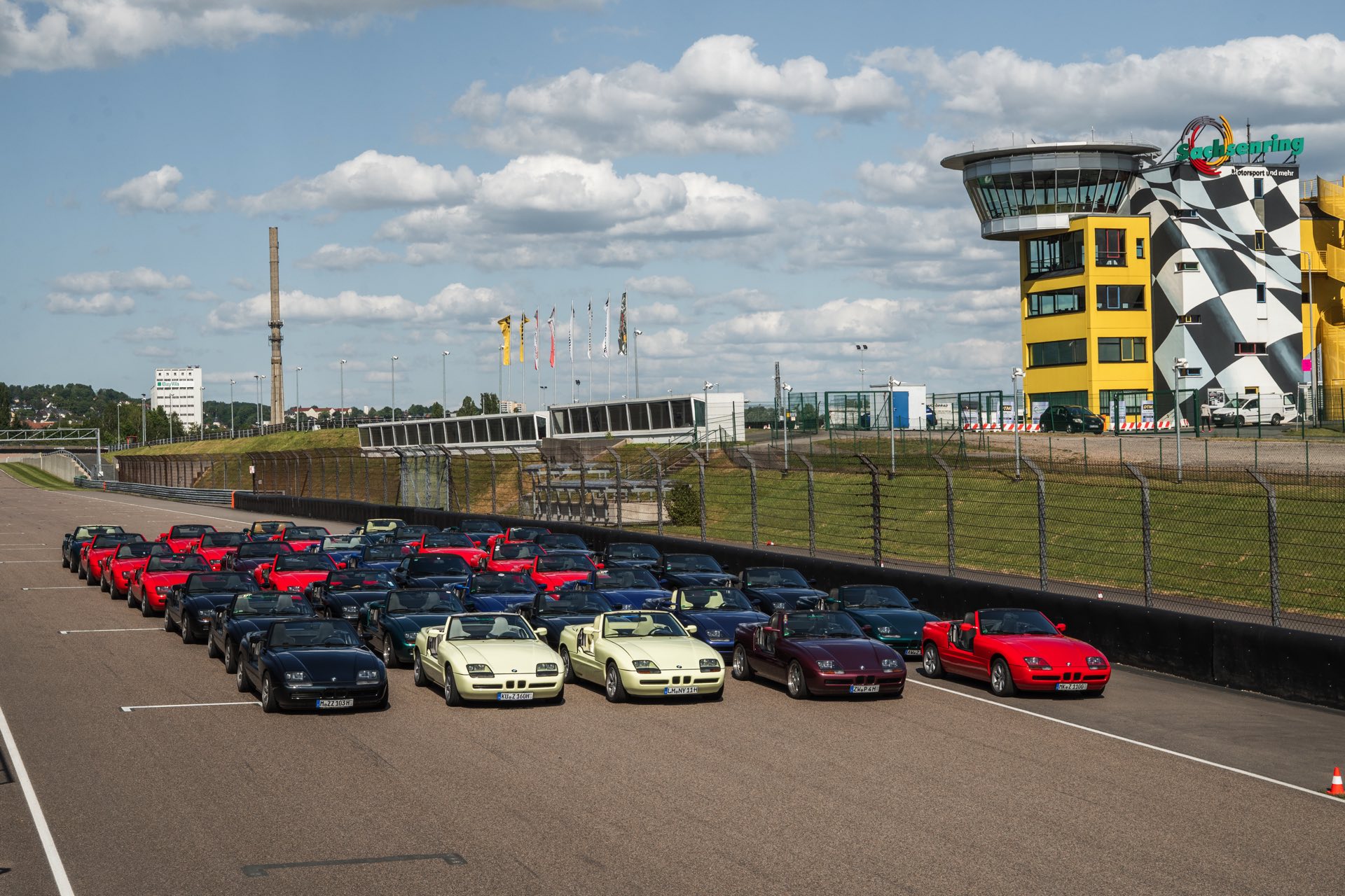 Mit insgesamt nur 8.000 Exemplaren ist der BMW Z1 Roadster nicht nur das erste, sondern auch das seltenste der bisherigen Z-Modelle, selbst von Z3 Coupé und Z4 Coupé wurden mehr als doppelt so viele Einheiten gebaut. Der BMW Z1 Club e.V. versammelte im Rahmen seiner Mitgliederversammlung 2025 nun insgesamt 39 Z1 am Sachsenring, schließlich ist das nahegelegene Chemnitz in diesem Jahr Kulturhauptstadt Europas. Eines der Fahrzeuge war sogar ein BMW Alpina Roadster, von dem nur 66 Stück gebaut wurden.