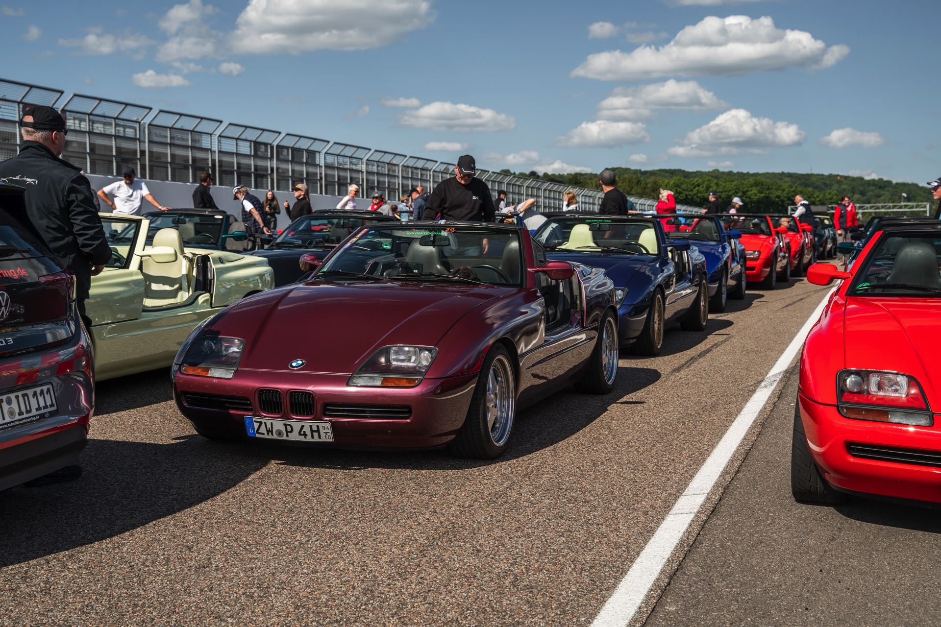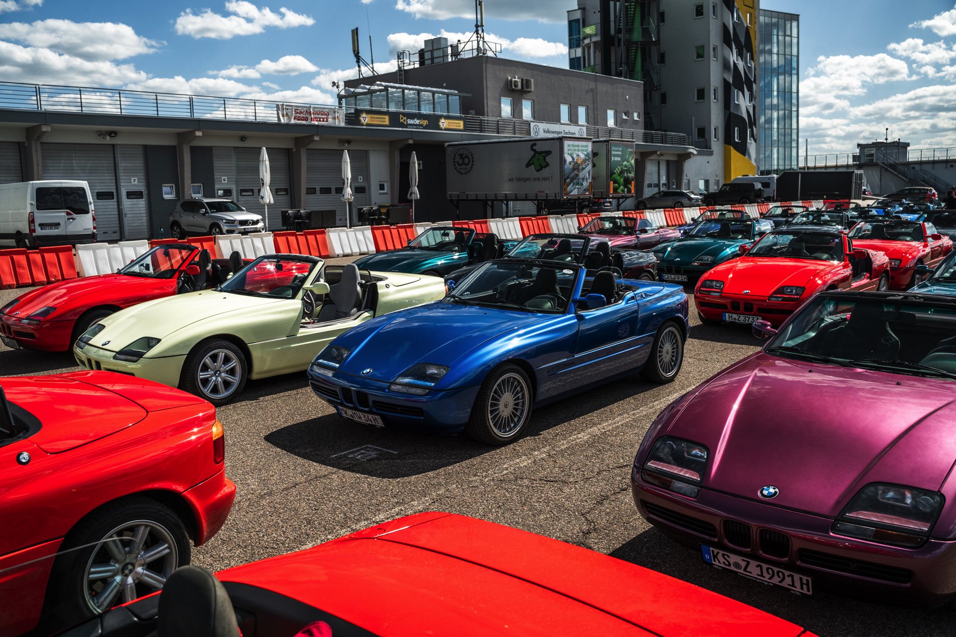 Noch beeindruckender als die bloße Zahl ist die farbliche Vielfalt der versammelten Roadster, denn mit Toprot, Traumschwarz, Magicvolett, Urgrün, Purblau und Fungelb waren alle ab Werk regulär angebotenen Farben auch beim Treffen versammelt. Toprot, Traumschwarz und Urgrün waren einst die meistgefragten Farben und sind daher auch am häufigsten zu sehen. Mit Stückzahlen im jeweils niedrig-dreistelligen Bereich wurden Magicviolett, Purblau und Fungelb erheblich seltener bestellt, zusammen stehen die drei Farben nur für knappe sieben Prozent aller BMW Z1. "
