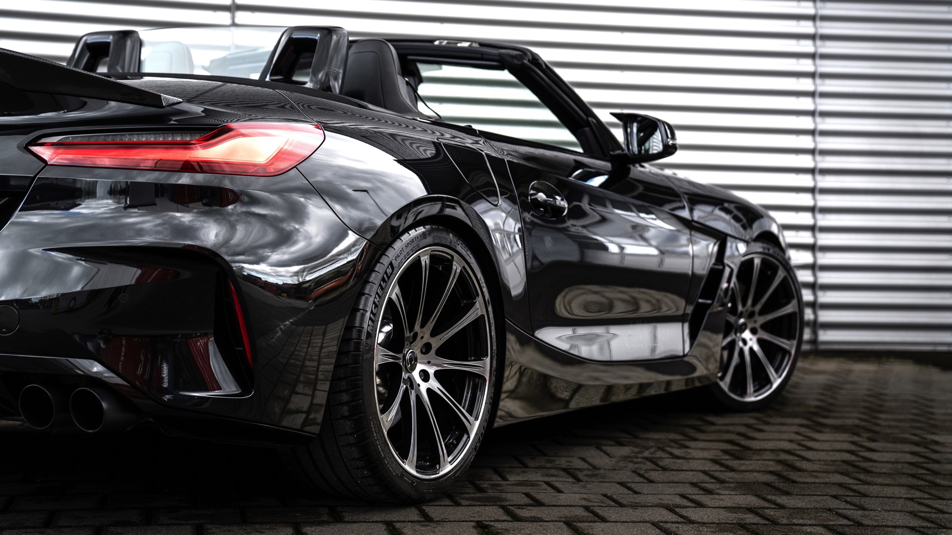 Carbon-Intake, Sportluftfilter und Edelstahl-Abgasanlage erleichtern dem Reihensechszylinder das Ein- und Ausatmen, wahlweise 90 oder sogar 100 Millimeter messende Doppelendrohre bescheren dem BMW Z4 M40i eine noch sportlichere Optik mit vier Endrohren. Aerodynamik und Auftritt profitieren auf Wunsch auch von einer Frontspoiler-Lippe und einem Heckspoiler aus Carbon.