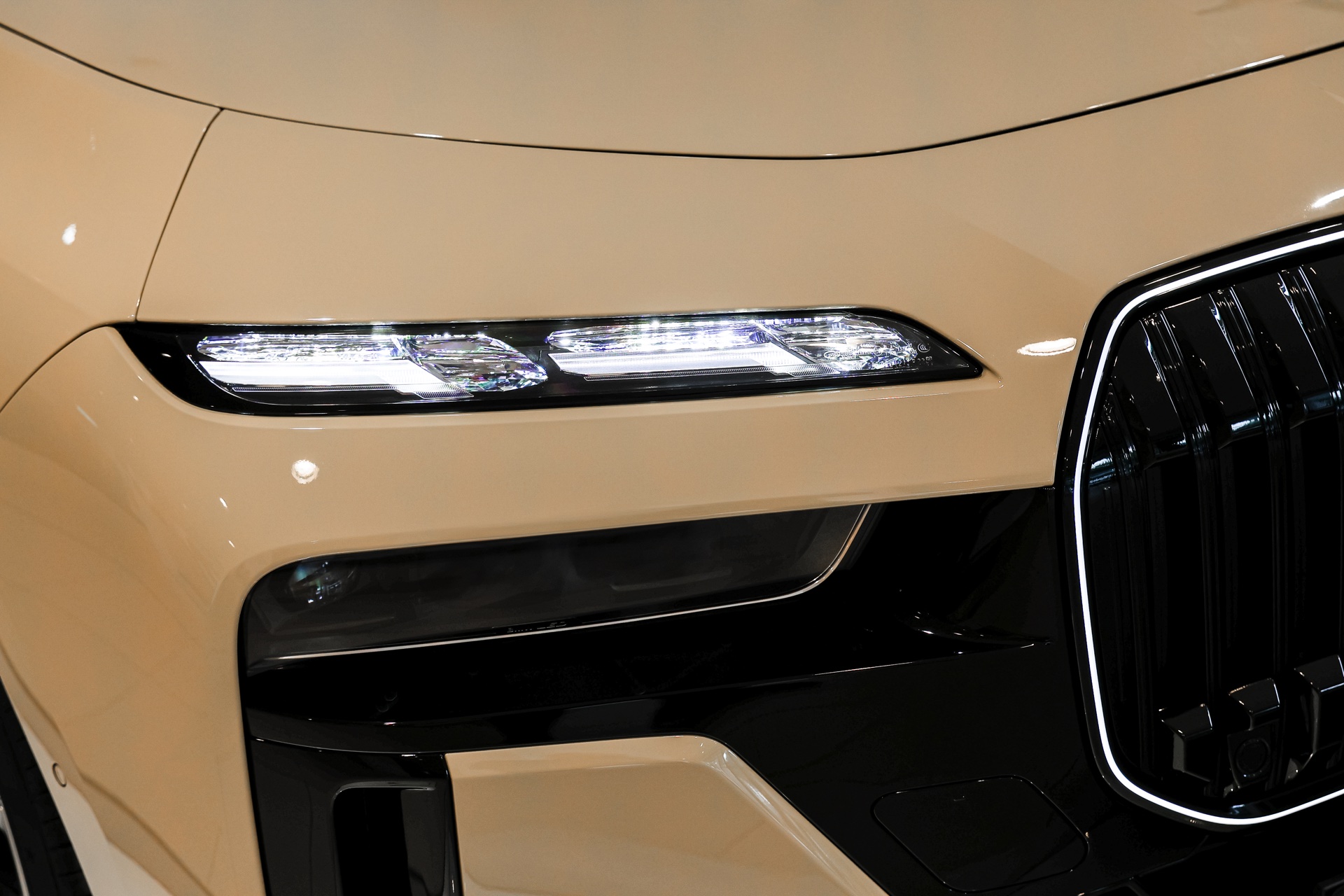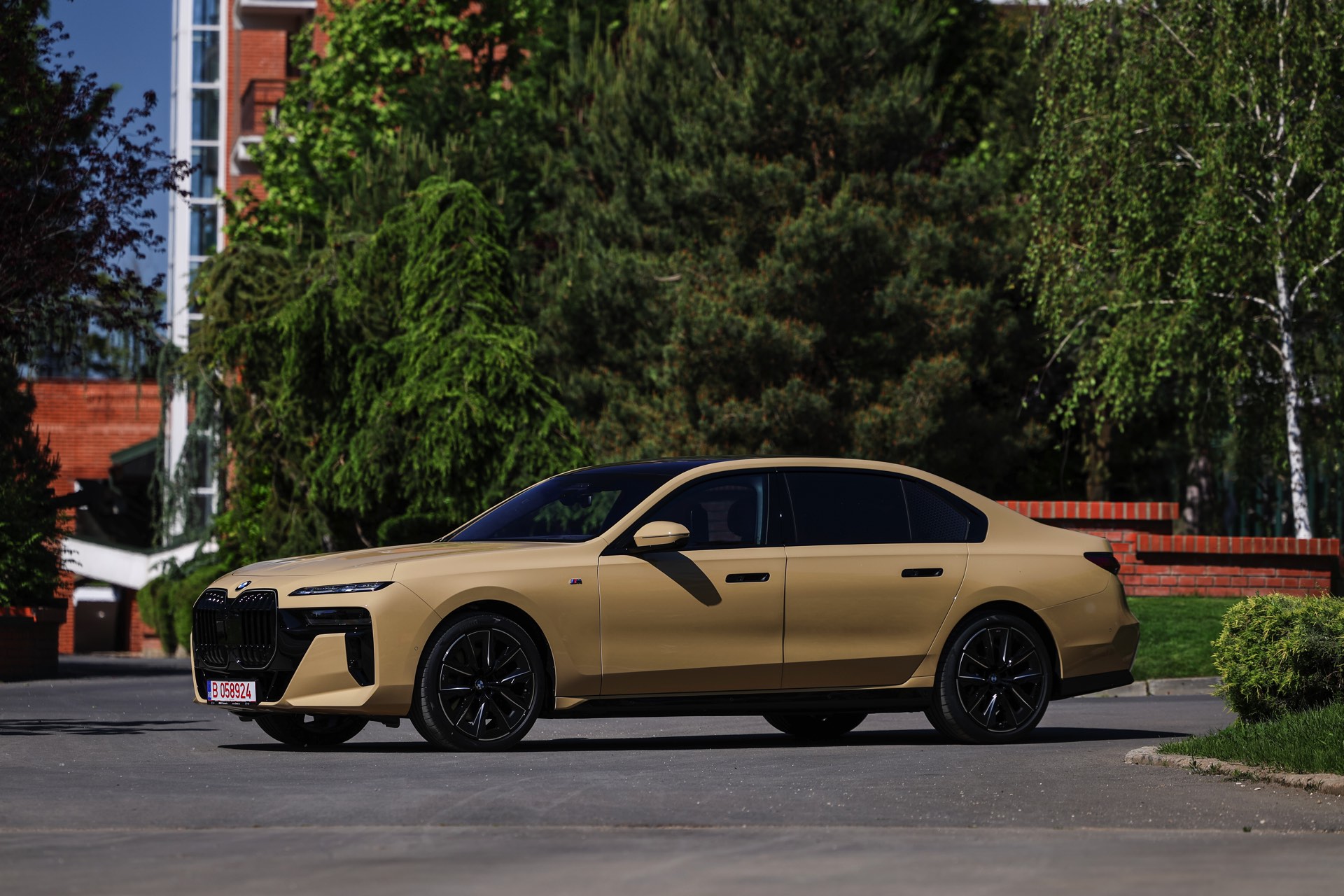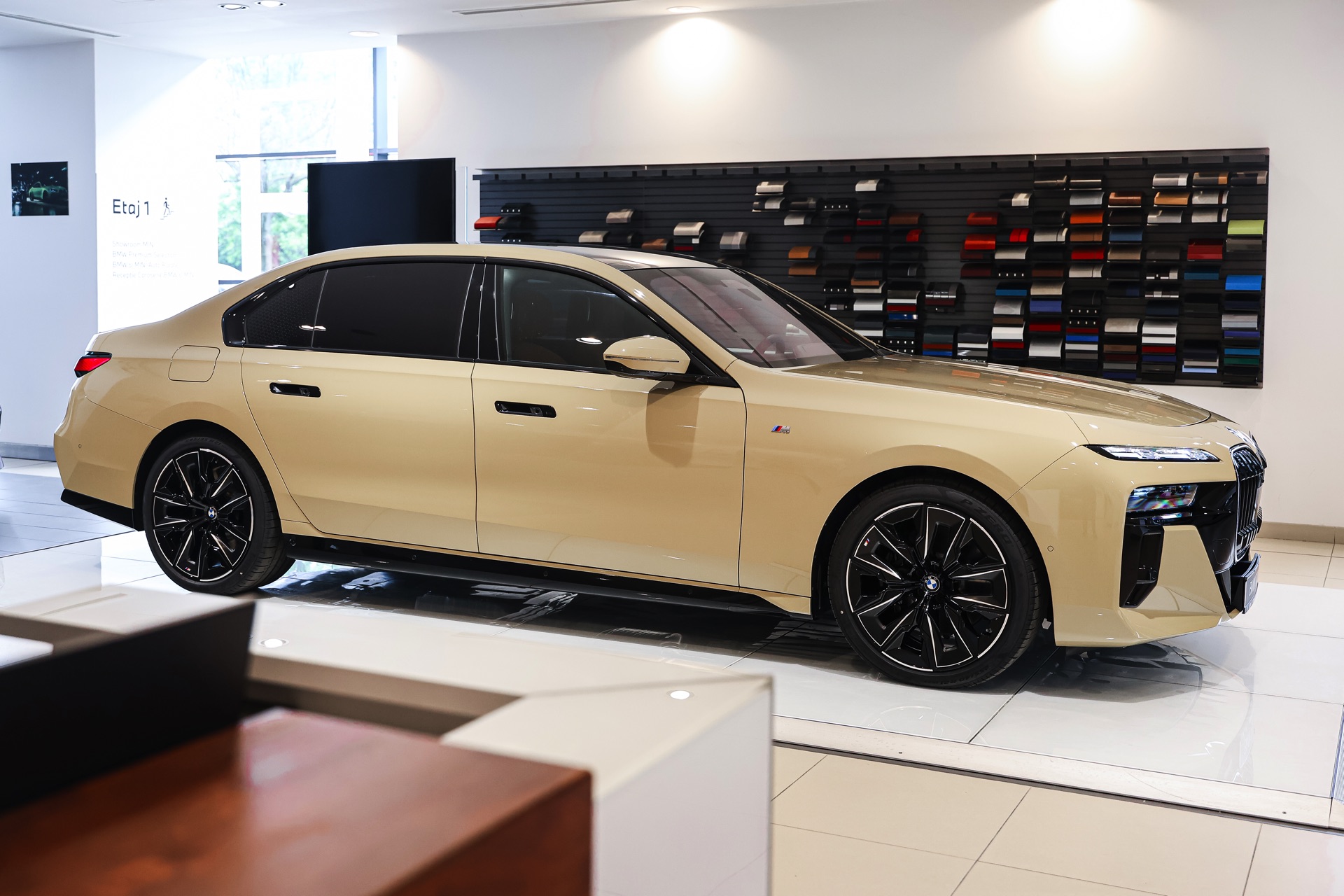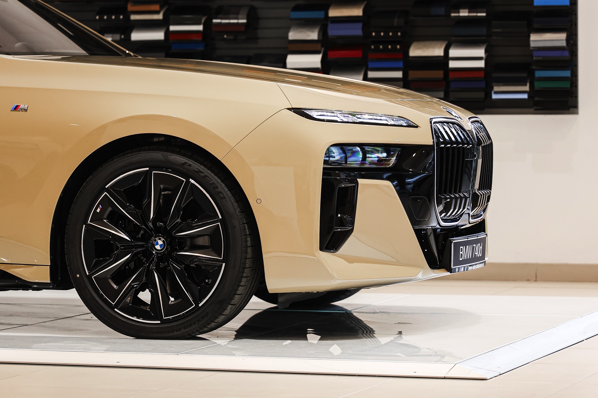 Dabei wird deutlich, dass Desert Sand deutlich kräftiger als Dune Grey ausfällt und auch in hellem Licht unstrittig eine gelbe Lackierung bleibt, während Dune Grey im Scheinwerfer-Licht beinahe weiß wirkt. Der BMW 7er auf den Fotos zur Weltpremiere von Desert Sand in Bukarest kombiniert die Farbe mit den schwarzen Details des M Sport Pro-Pakets und den 21 Zoll großen Aerodynamikrädern 909 M Multicolor Jetblack 3D-Glanzschliff, die ebenfalls mit viel Schwarz glänzen. Weitere Individualisierungs-Optionen ergeben sich durch die Option zur Two-Tone-Lackierung, denn sicher würde Desert Sand Uni auch in Kombination mit einem Greenhouse in Saphirschwarz eine interessante Wirkung entfalten.