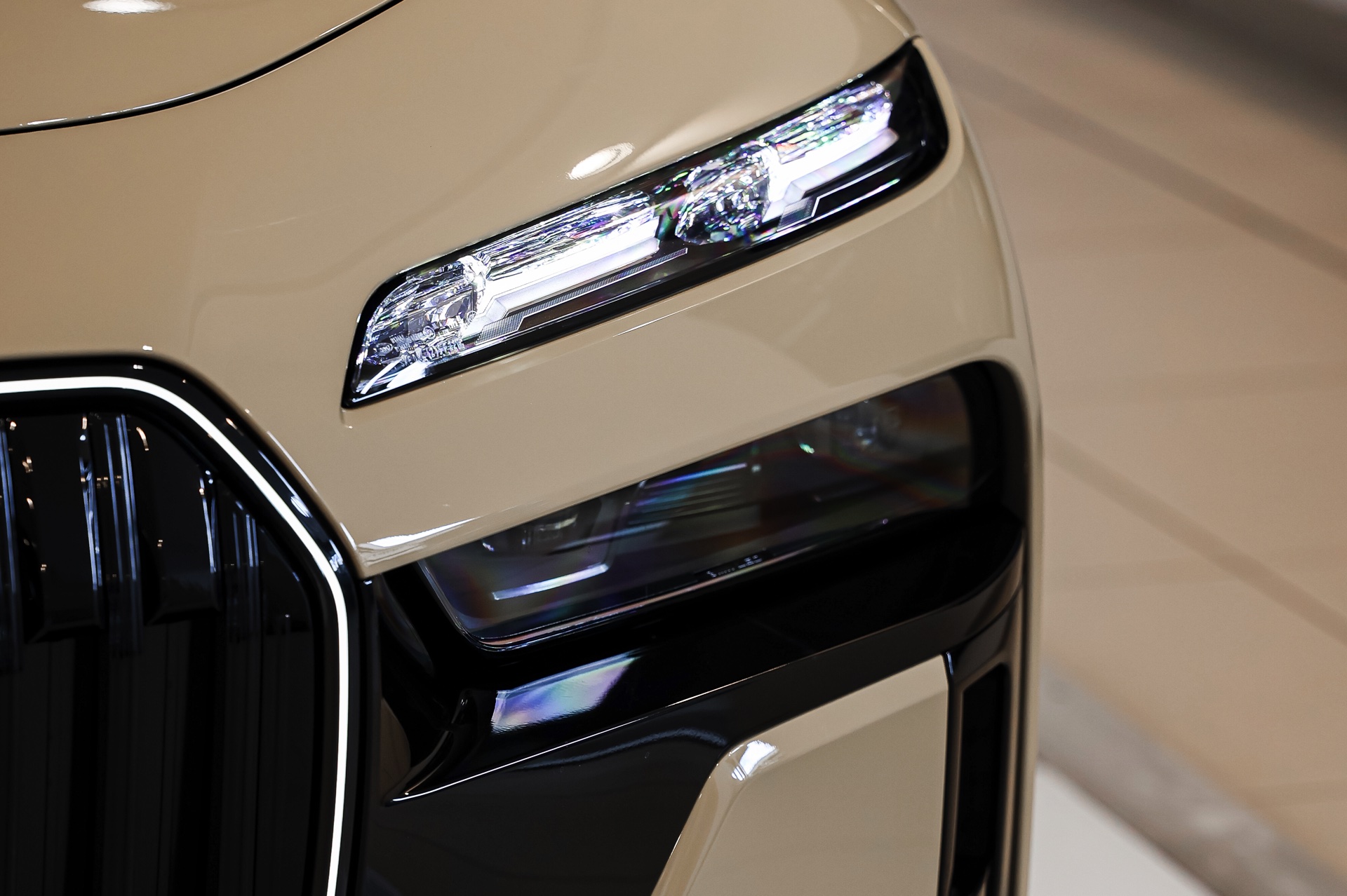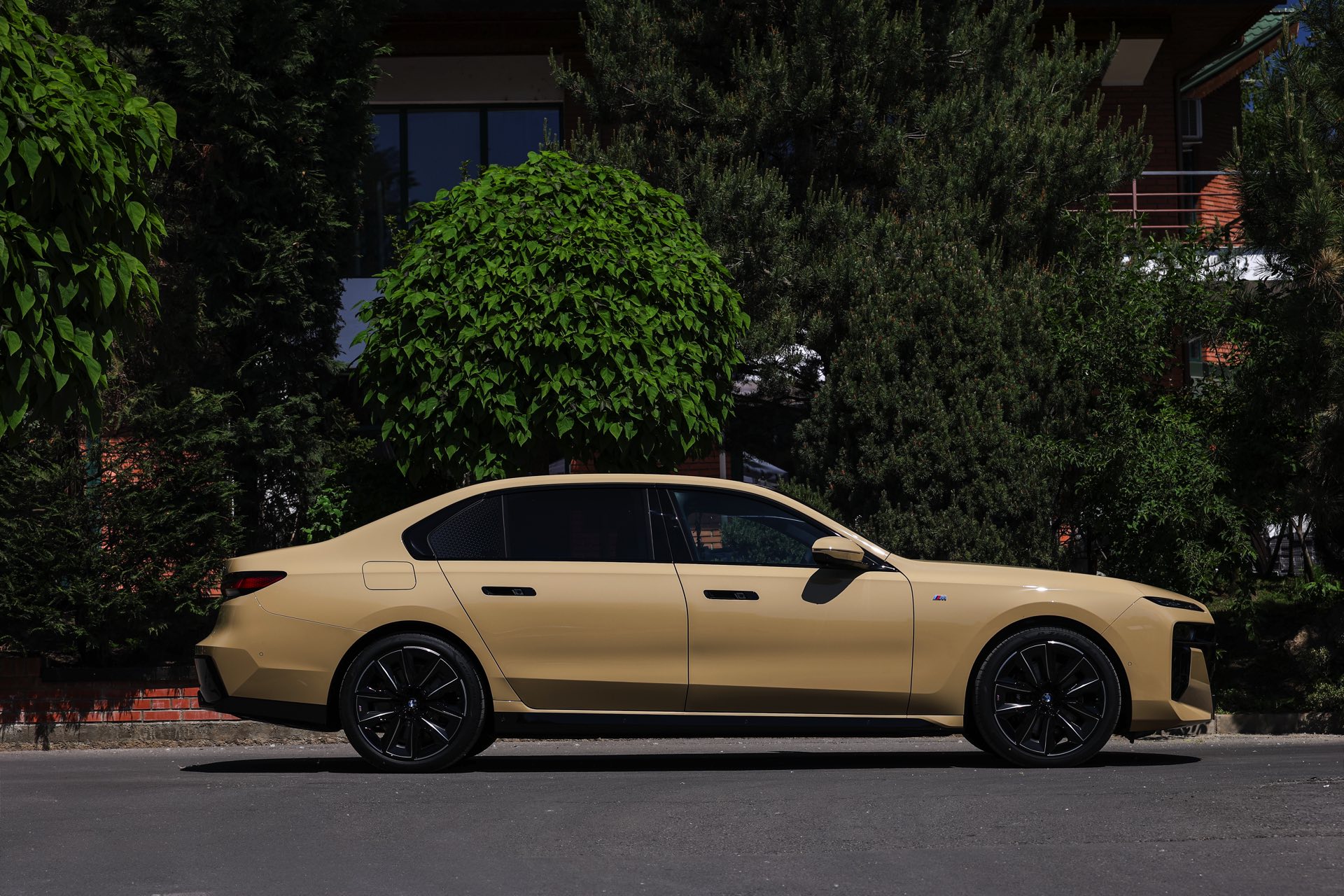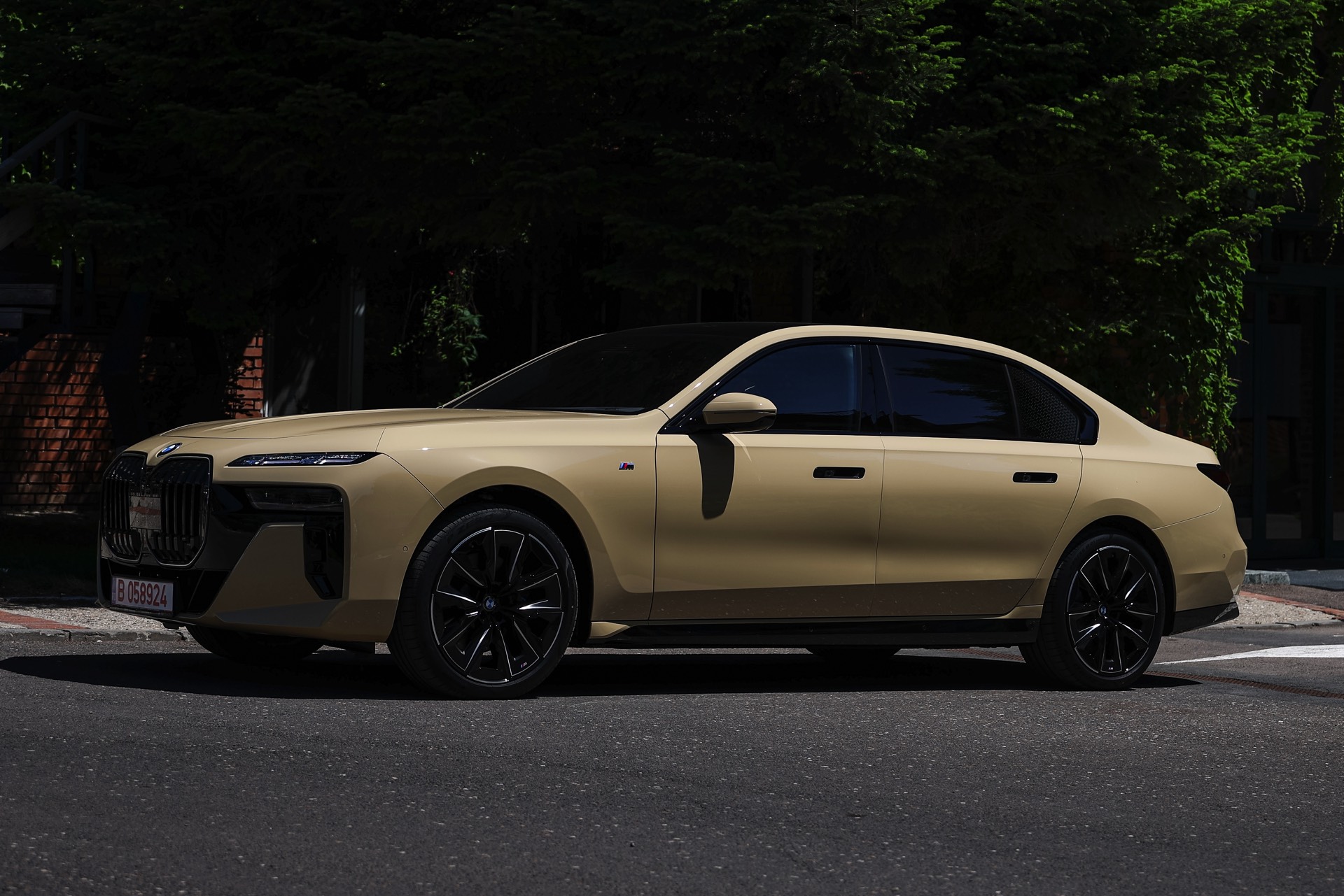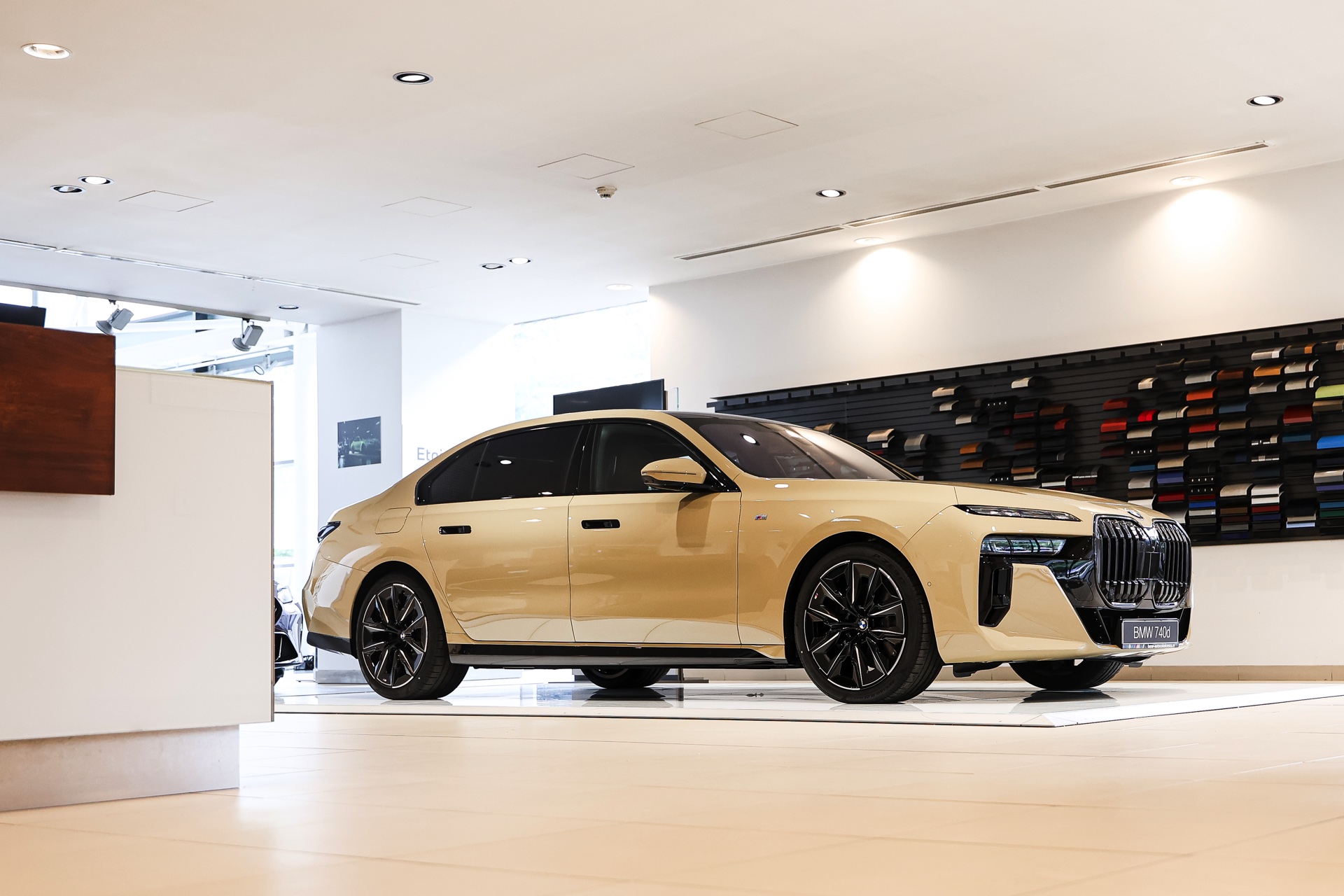 Dabei wird deutlich, dass Desert Sand deutlich kräftiger als Dune Grey ausfällt und auch in hellem Licht unstrittig eine gelbe Lackierung bleibt, während Dune Grey im Scheinwerfer-Licht beinahe weiß wirkt. Der BMW 7er auf den Fotos zur Weltpremiere von Desert Sand in Bukarest kombiniert die Farbe mit den schwarzen Details des M Sport Pro-Pakets und den 21 Zoll großen Aerodynamikrädern 909 M Multicolor Jetblack 3D-Glanzschliff, die ebenfalls mit viel Schwarz glänzen. Weitere Individualisierungs-Optionen ergeben sich durch die Option zur Two-Tone-Lackierung, denn sicher würde Desert Sand Uni auch in Kombination mit einem Greenhouse in Saphirschwarz eine interessante Wirkung entfalten.