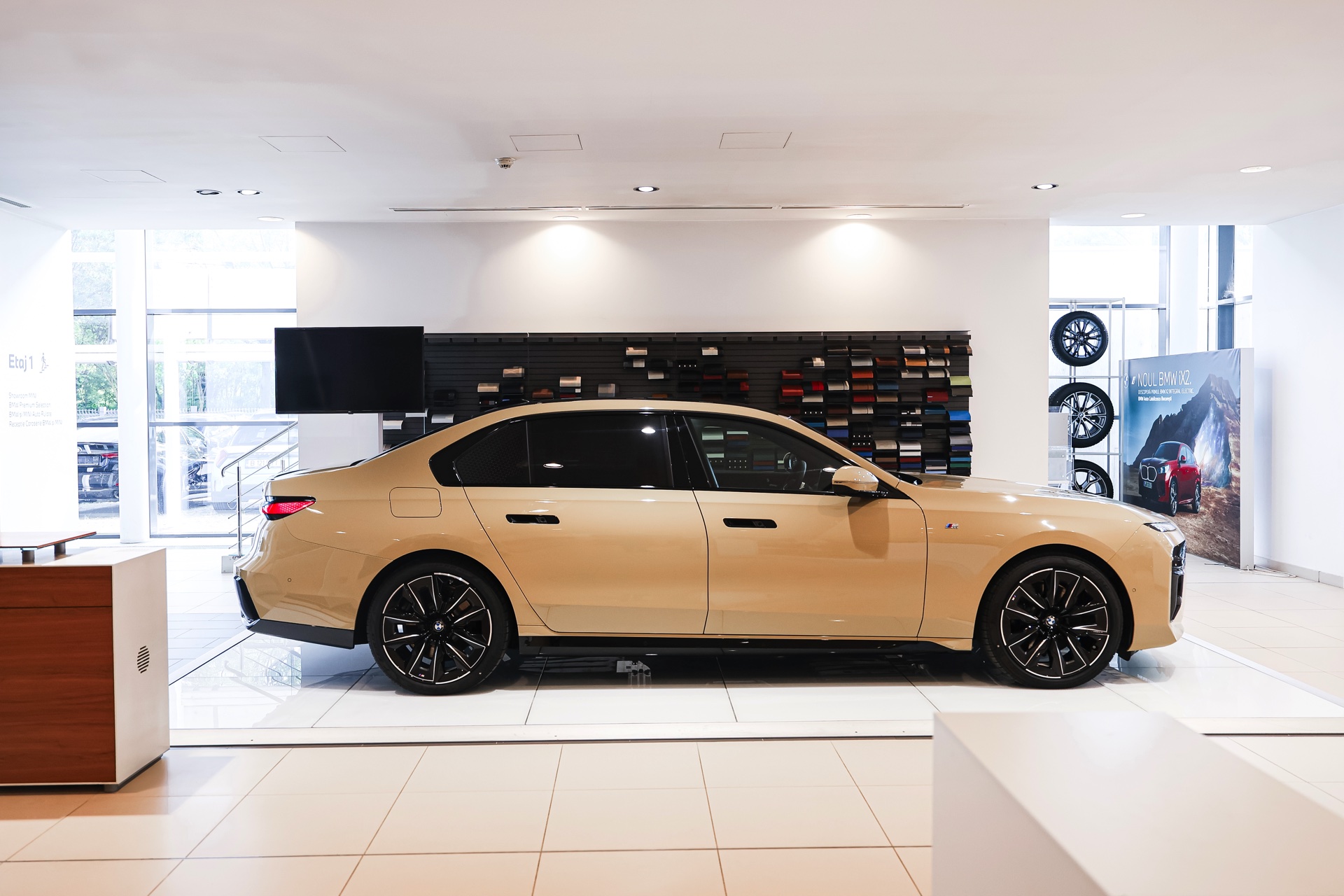 Für alle Liebhaber individueller Automobile wird der BMW 7er durch Desert Sand Uni noch etwas interessanter, auch wenn die Auswahl schon bisher extrem breit war. Wie vielseitig sich die Luxuslimousine ab Werk lackieren lässt, zeigen spektakuläre Fahrzeuge wie der kürzlich am Comer See präsentierte BMW i7 in Sternrubin Neo, matte Varianten wie der i7 in Frozen Preciosa Red oder der i7 in Frozen Purple oder auch ein Elektro-7er in Sonoma Green.