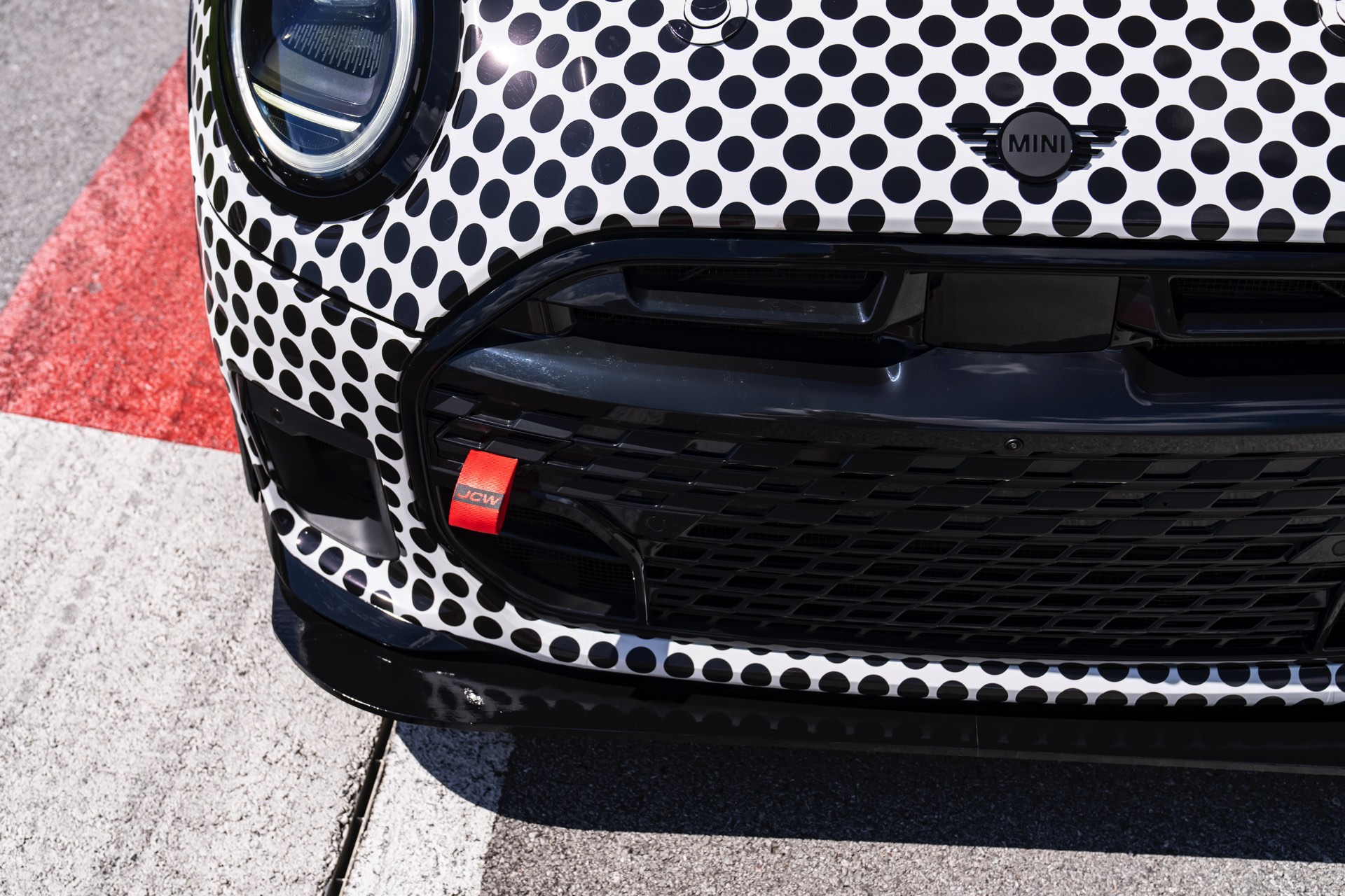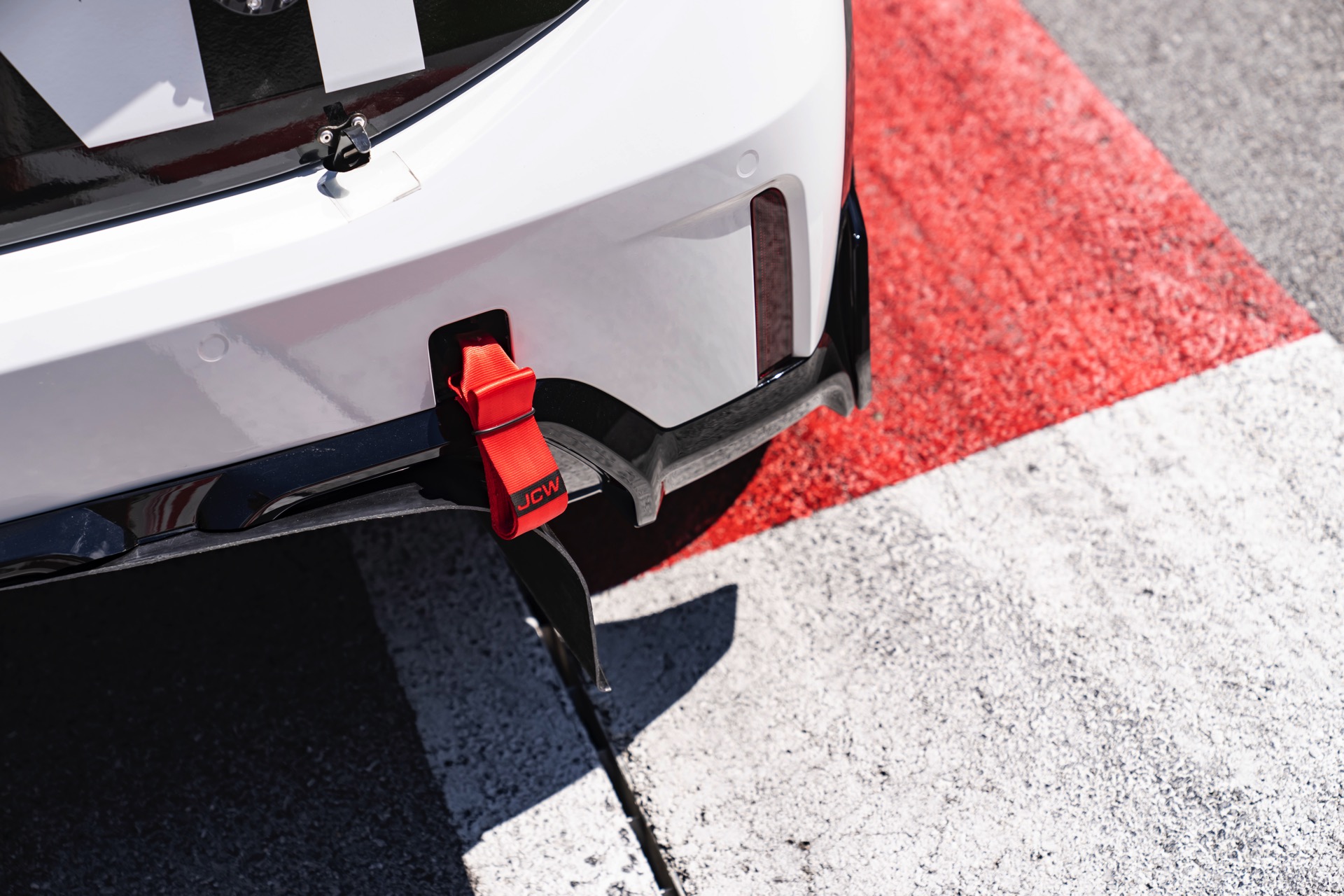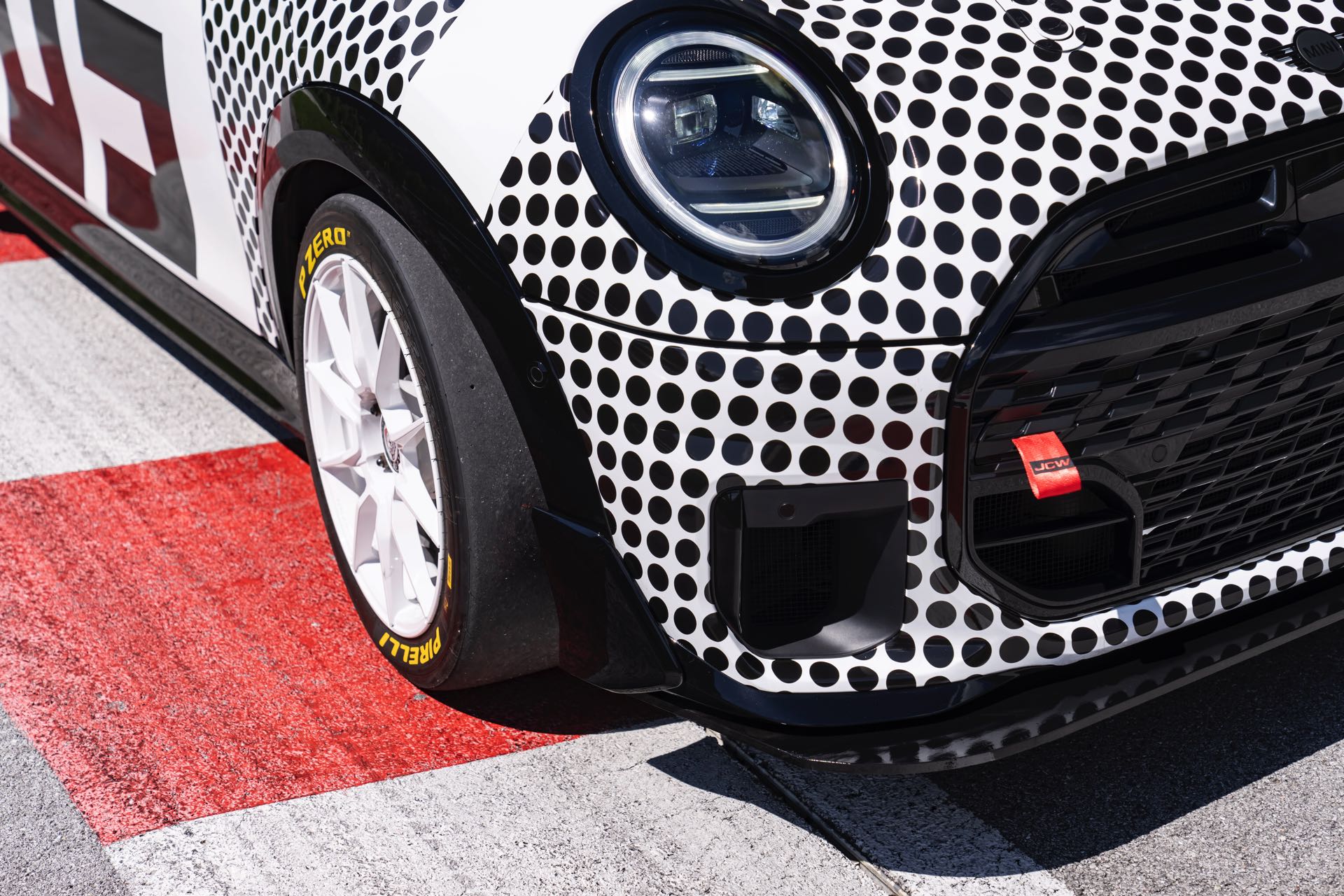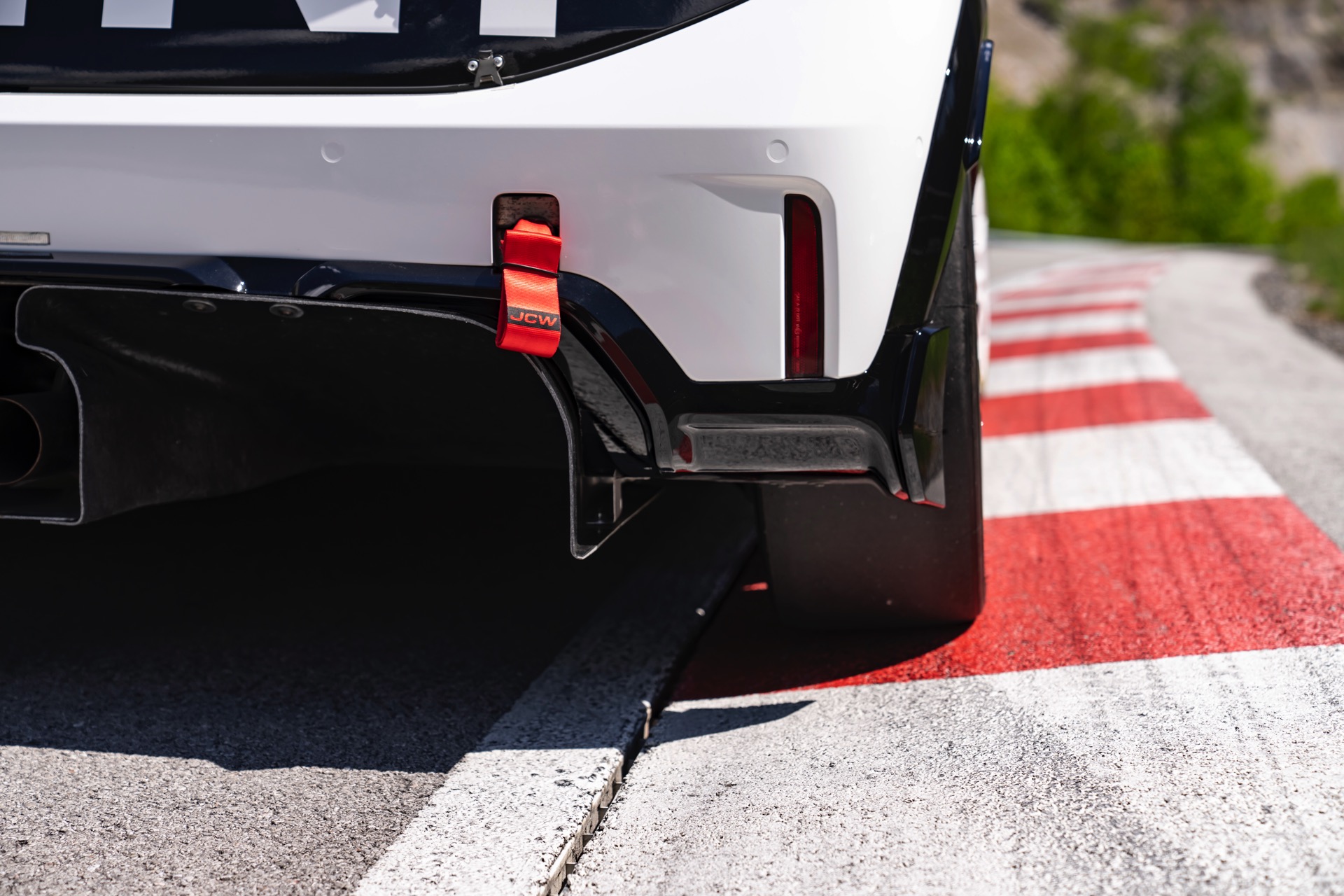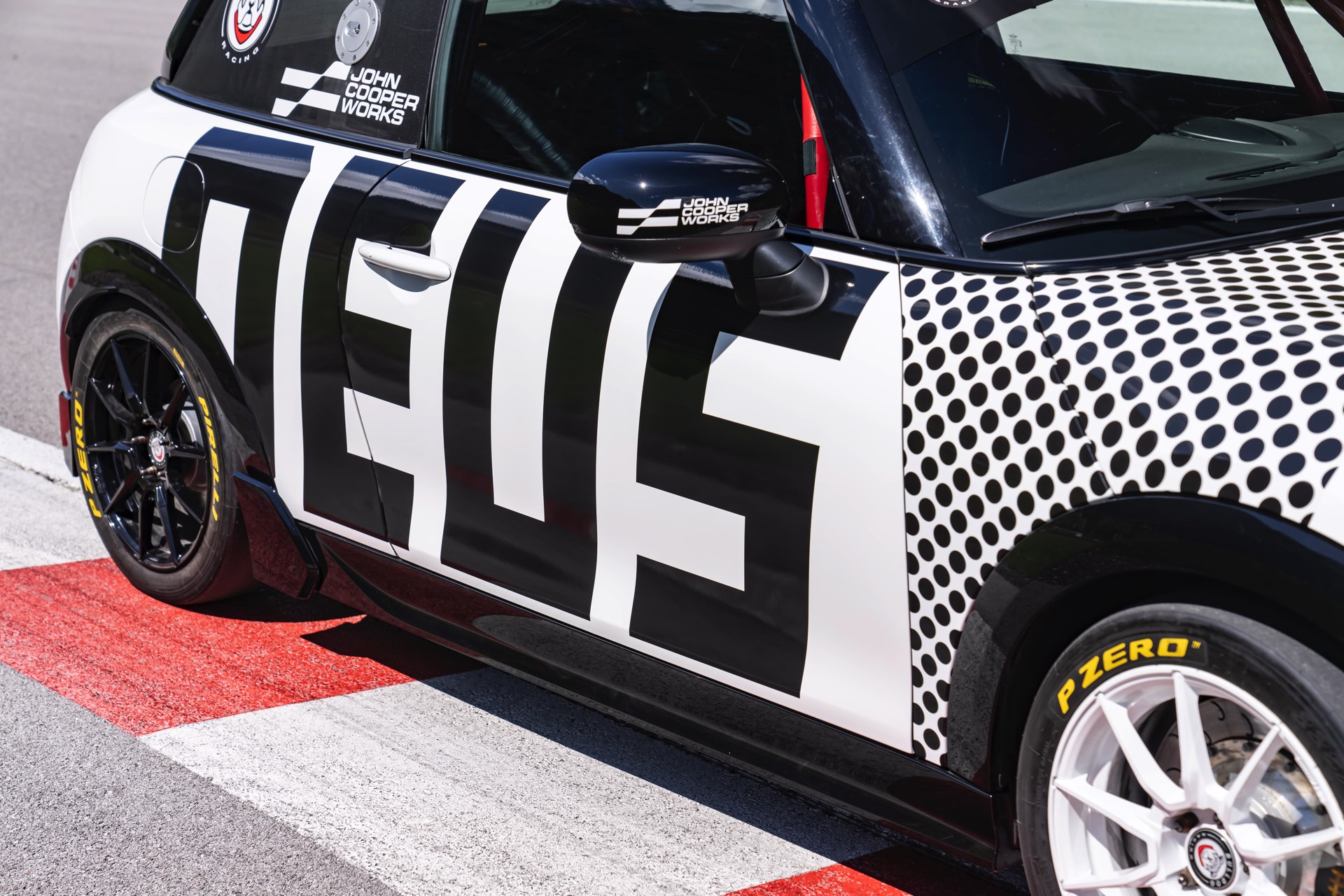 Sieht man von der zweifarbigen Folierung ab, bleibt der MINI JCW optisch relativ nah an der Serie: In der Klasse SP-3T sind weder die extremen Verbreiterungen noch die Aerodynamik-Exzesse eines BMW M4 GT3 Evo zulässig. Dennoch finden sich auf den zweiten Blick einige Verfeinerungen, die zum Teil über das John Cooper Works-Zubehör auch für den öffentlichen Straßenverkehr erhältlich sind: Front-, Seitenschweller- und Heck-Winglets stammen genau wie der Dachkanten-Spoiler aus dem werkseigenen Tuning-Zubehör. "