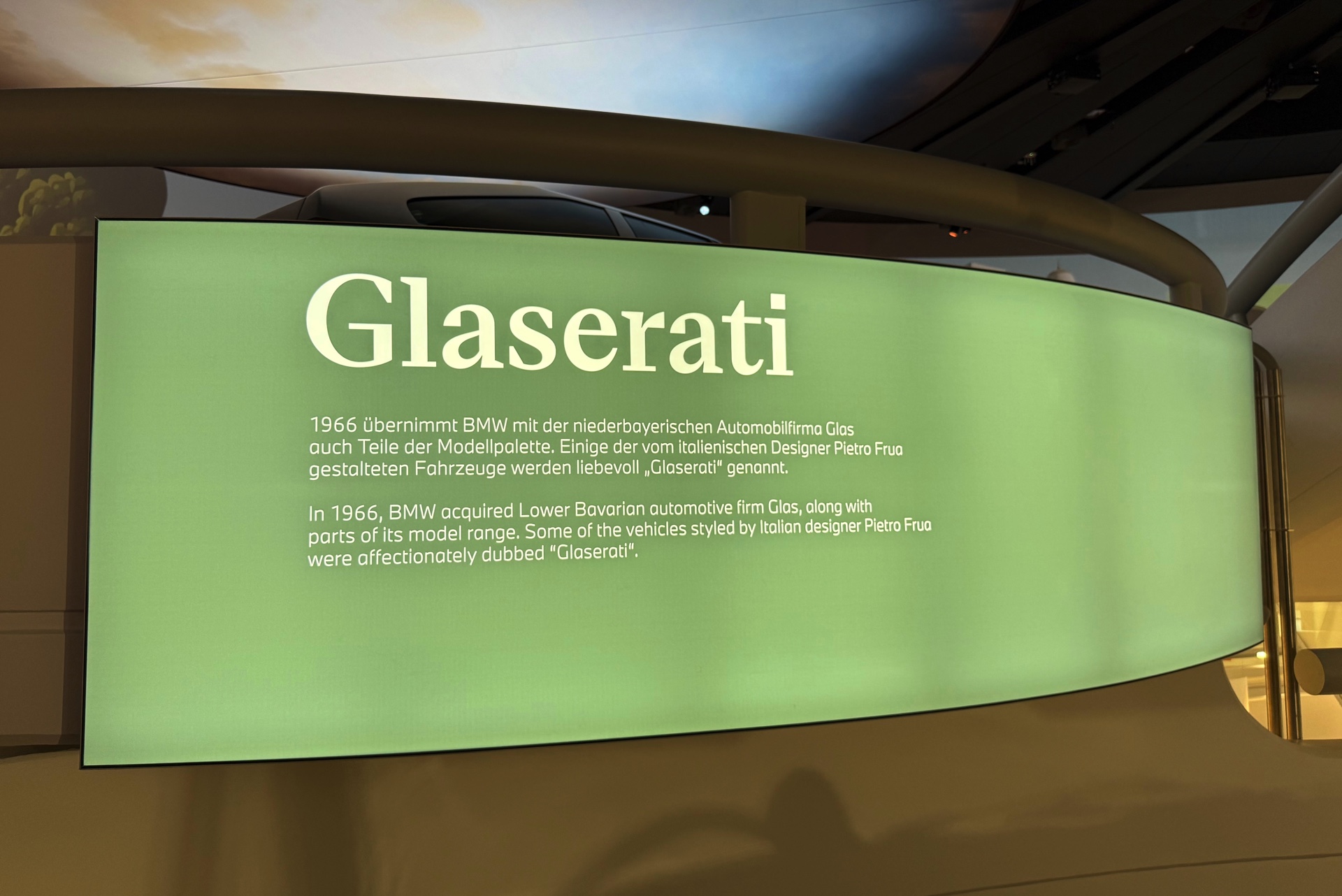 So verdiente sich der BMW 1800 SA auch das BMW-Logo an der Front. Mit dem 1,8 Liter großen Vierzylinder-Motor leistete er 90 PS, als BMW 2000 SA mit 2,0 Liter Hubraum waren 100 PS drin. Aufgrund des Designs aus der Feder von Pietro Frua versteht es sich von selbst, dass die Glaserati auch in der aktuellen Belle Macchine-Ausstellung im BMW Museum München nicht fehlen dürfen.
