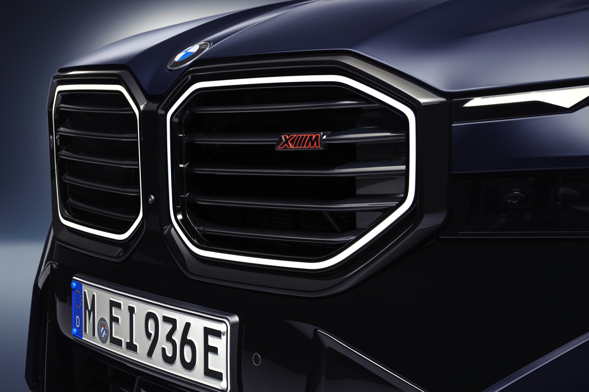 Auf den ersten Fotos sehen wir den neuen BMW XM Label mit der matten Individual-Lackierung in Frozen Tanzanite Blue, die jetzt als Sonderwunsch-Farbe erhältlich ist. Weiter individualisieren lässt sich die Optik mit einer Nieren-Einfassung in Hochglanz-Schwarz und auch die Welcome Light-Inszenierung wurde erneuert. Statt 21-Zöllern zählen nun 22-Zoll-Felgen zum Serienumfang des XM Label, optional gibt es eine neue 23-Zoll-Felge im Styling 1096 M Schwarz.