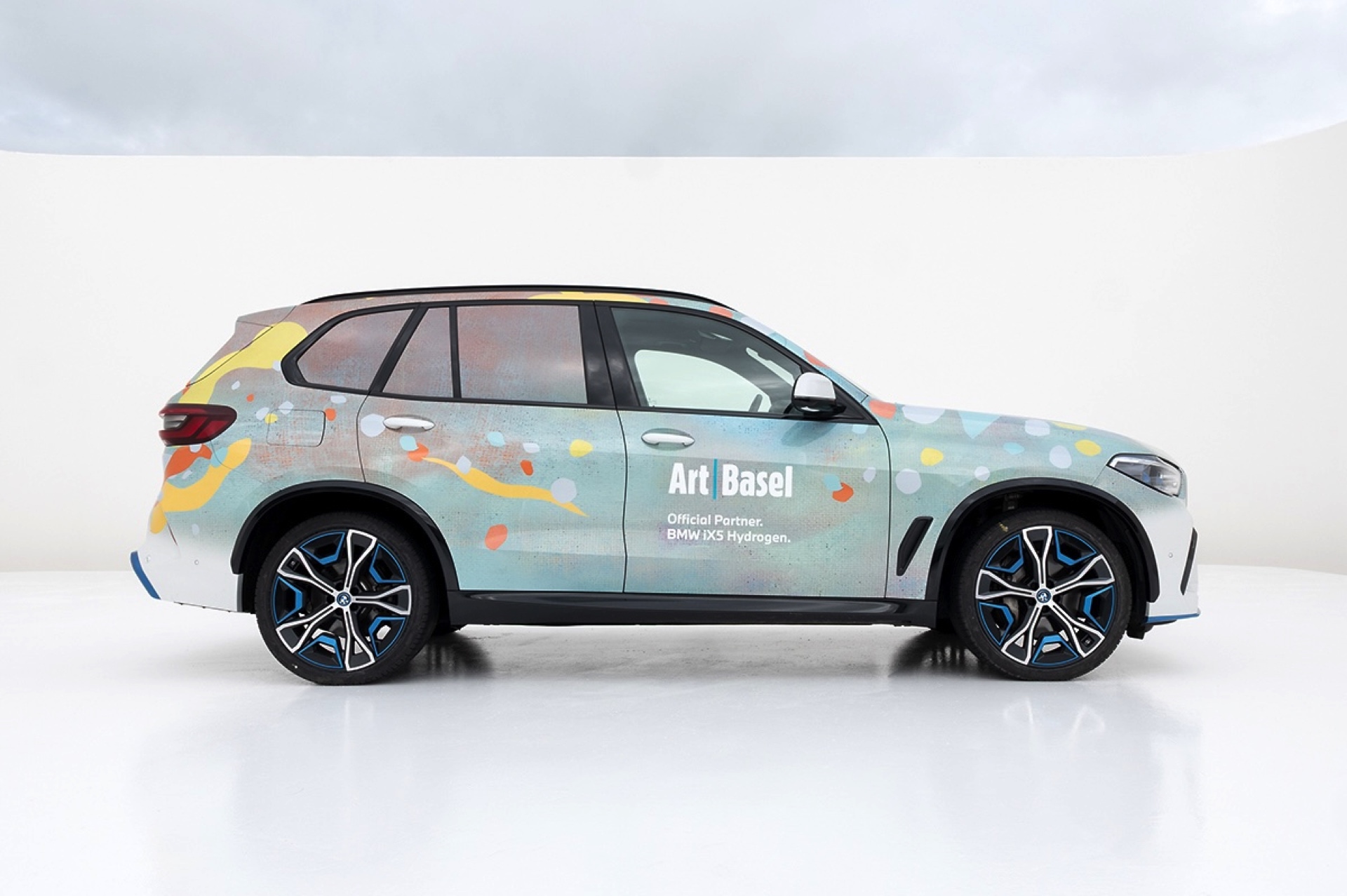 50 Jahre BMW Art Cars werden 2025 nicht nur mit diversen Ausstellungen der bisherigen Fahrzeuge gefeiert, sondern auch mit einem mobilen Kunstwerk für die diesjährige Art Basel. Alvaro Barrington durfte auf Basis des BMW iX5 mit Wasserstoff-Brennstoffzelle (zum Praxistest) gleich mehrere Fahrzeuge in seinem speziellen Look gestalten, denn die Wasserstoff-X5 werden wie schon im Vorjahr als lokal emissionsfreie VIP-Shuttle im Rahmen der Kunstmesse genutzt. Ausgewählt wurde Barrington von keinem Geringeren als Hans Ulrich Obrist, der einst Mitglied der BMW Art Car Jury war.