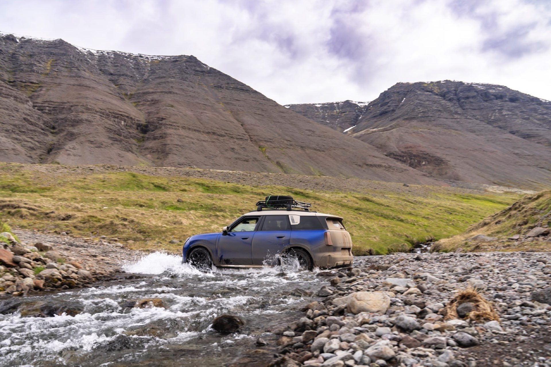 80 Prozent aller Straßen auf Island sind unbefestigt und auch wenn die Ring Road vor ein paar ein paar Jahren durchgehend asphaltiert wurde, ist eine Tour mit einem normalen Fahrzeug wenig empfehlenswert. Während die meisten Touristen mit weißen Mietwagen wie dem Dacia Duster 4×4 die Insel bevorzugt asphaltiert erkunden und echte Offroadfans mit Defender, G-Klasse, Patrol oder speziell aufgerüsteten Expeditionsfahrzeugen unterwegs sind, geht es für uns mit einem Mini Countryman SE All4 (U25) auf große Fahrt – elektrisch angetrieben und leicht aufgerüstet.