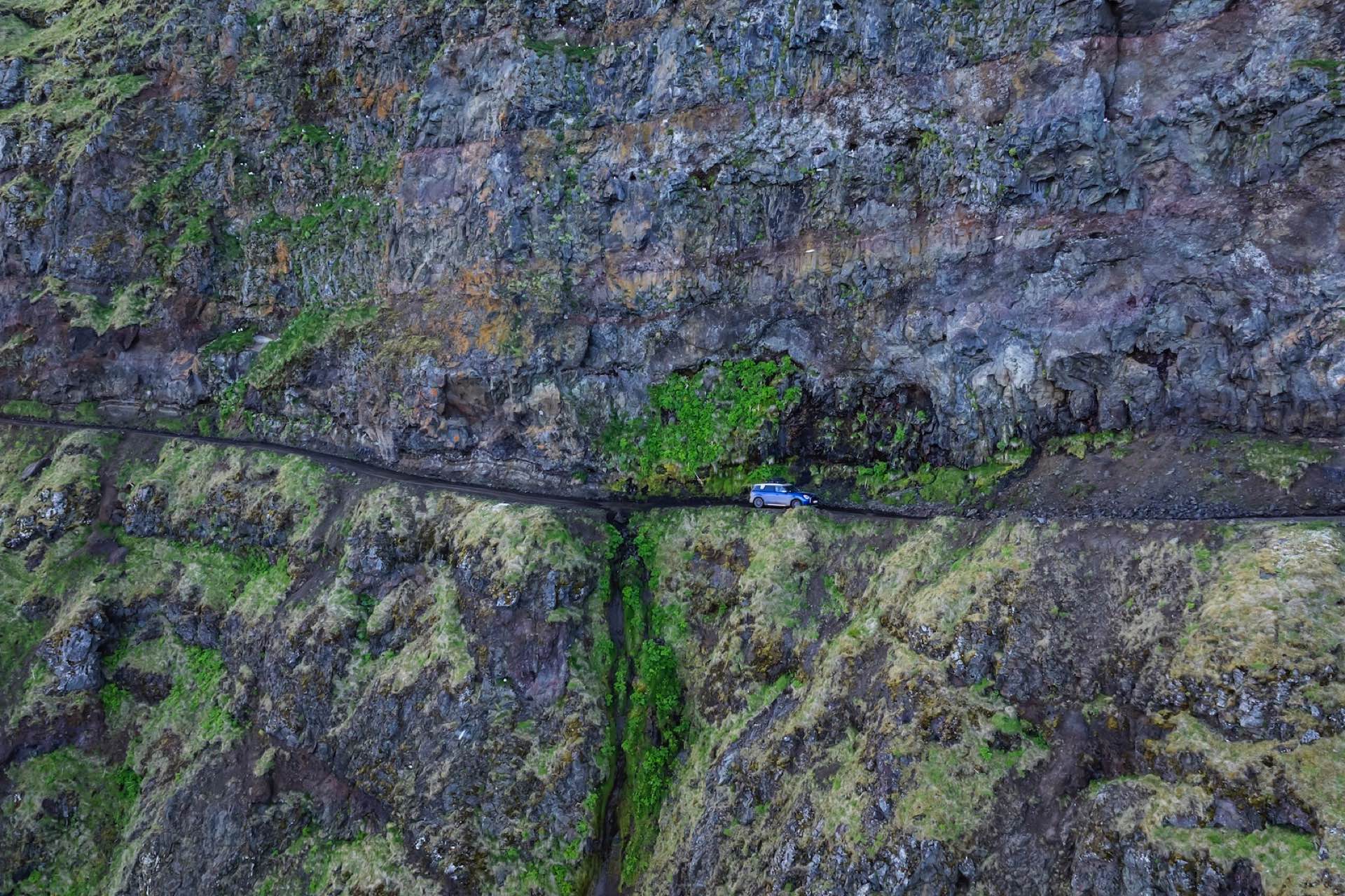 Bei dem langsamen Offroad-Tempo ist die elektrische Reichweite keinerlei Problem und allein die überschaubare Bodenfreiheit zwingt bisweilen zu Ausweichmanövern. Sollte die gesamte Route 622 mit dem E-Countryman tatsächlich zu bezwingen sein? Nach knapp zwei Stunden Fahrt aus Thingeyri heraus über Stock und Stein die Gewissheit – er schafft es nicht, denn die starken Regenfälle der vergangenen zwei Wochen haben zu einem Murenabgang geführt und die mittlerweile ohnehin ebenso schmale wie anspruchsvolle Piste ist von keinem Fahrzeug mehr zu passieren. Da helfen auch Spaten, Sandbleche und Wagenheber nichts mehr.