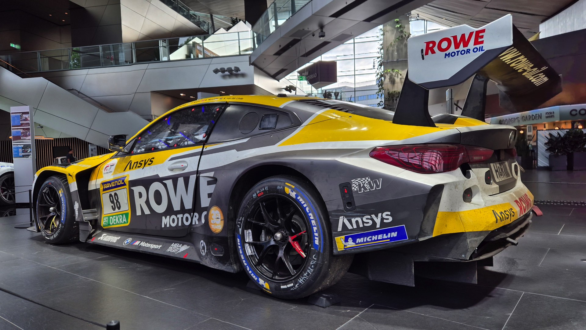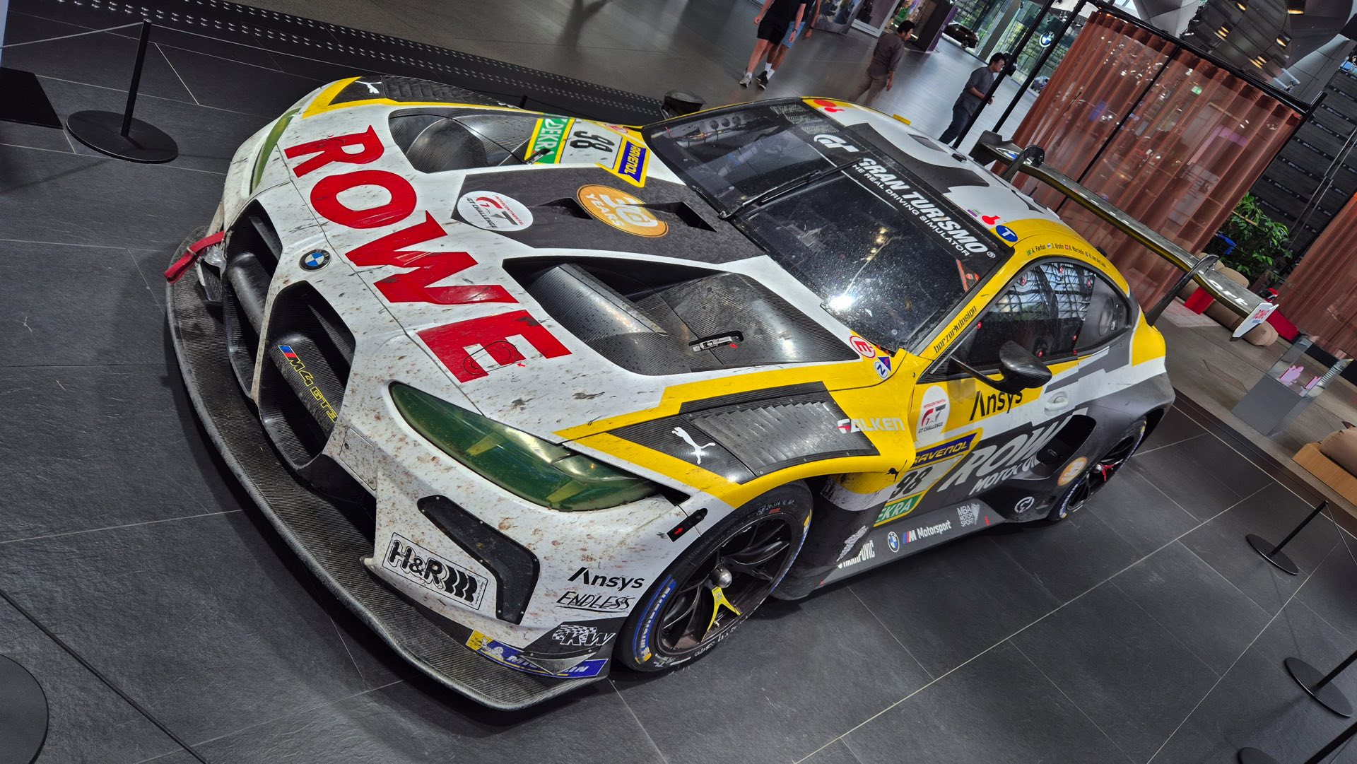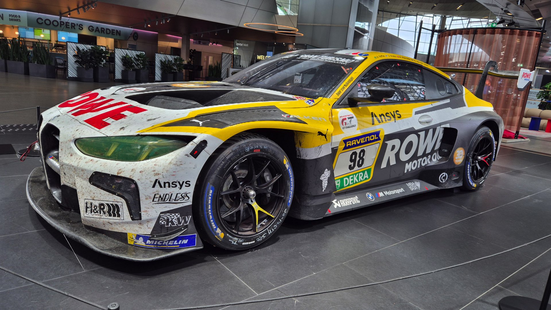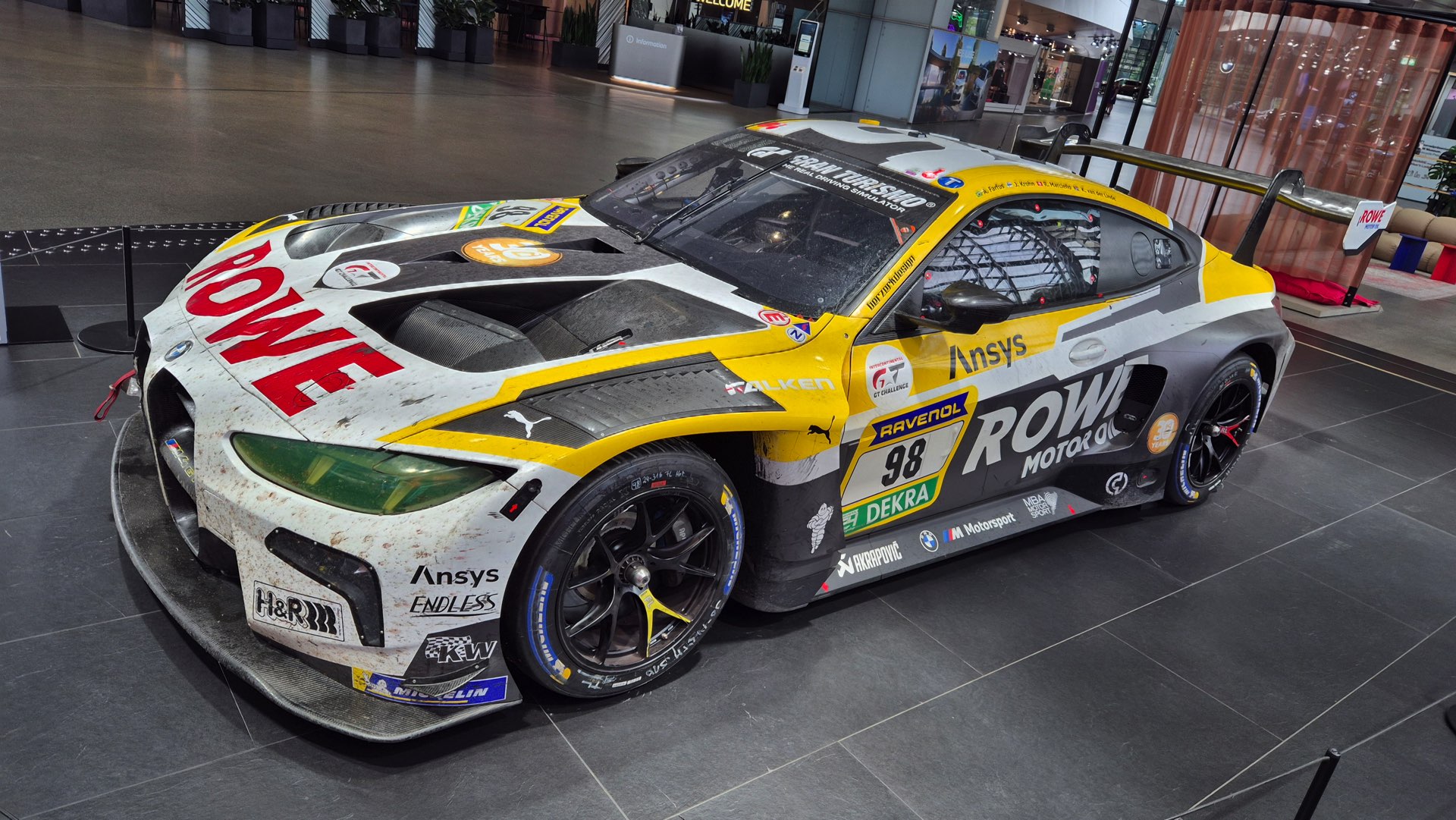 Das nun in der BMW Welt München gezeigte Fahrzeug ist einerseits vom 24-Stunden-Rennen gezeichnet, es ist aber auch ein Zeugnis eines weitestgehend reibungslosen Rennens: Größere Schäden oder Reparatur-Spuren sucht man am ROWE-M4 mit der Startnummer 98 vergeblich, im Wesentlichen präsentiert der von Augusto Farfus, Raffaele Marciello, Kelvin van der Linde und Jesse Krohn pilotierte Bolide nur diverse Verschmutzungen und andere Schönheitsfehler.