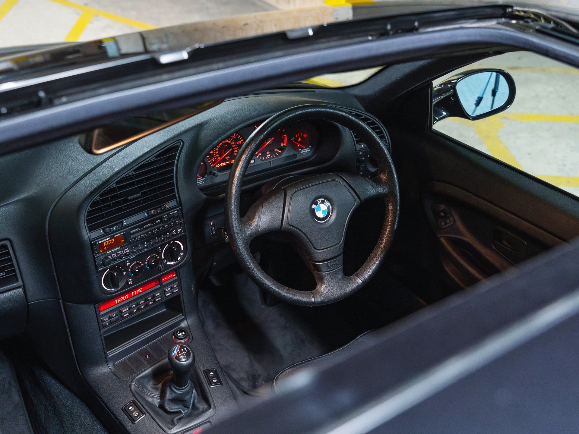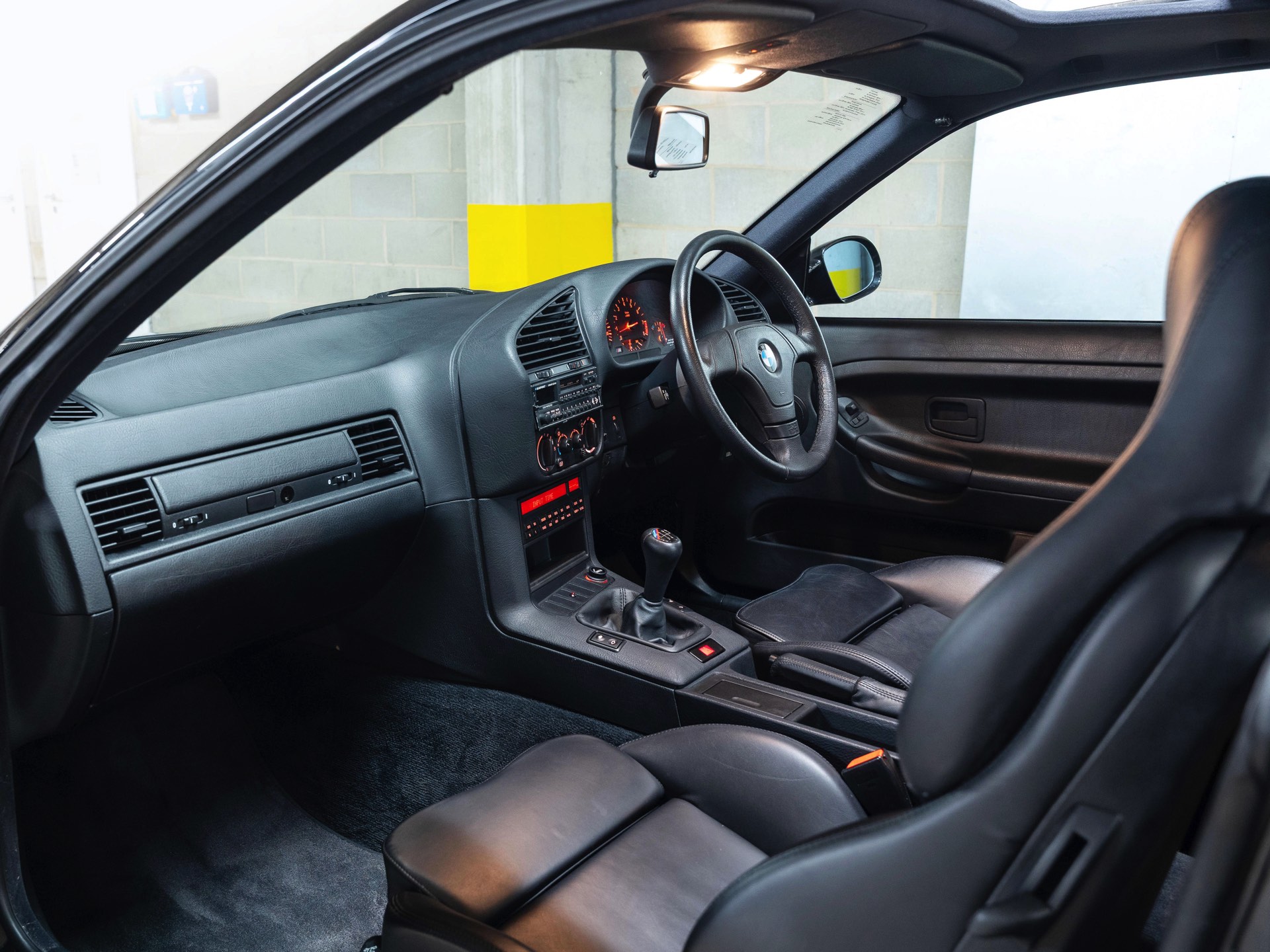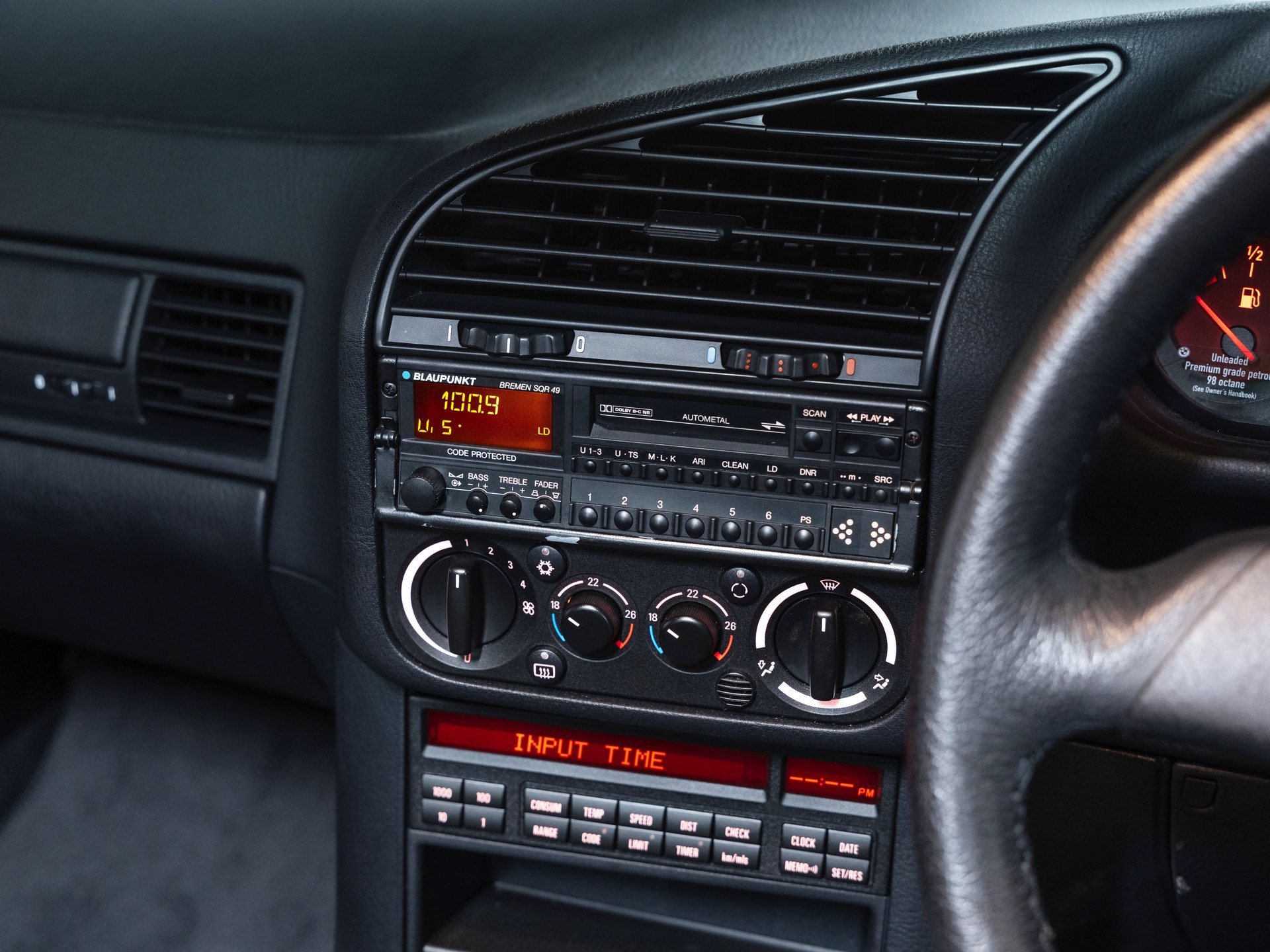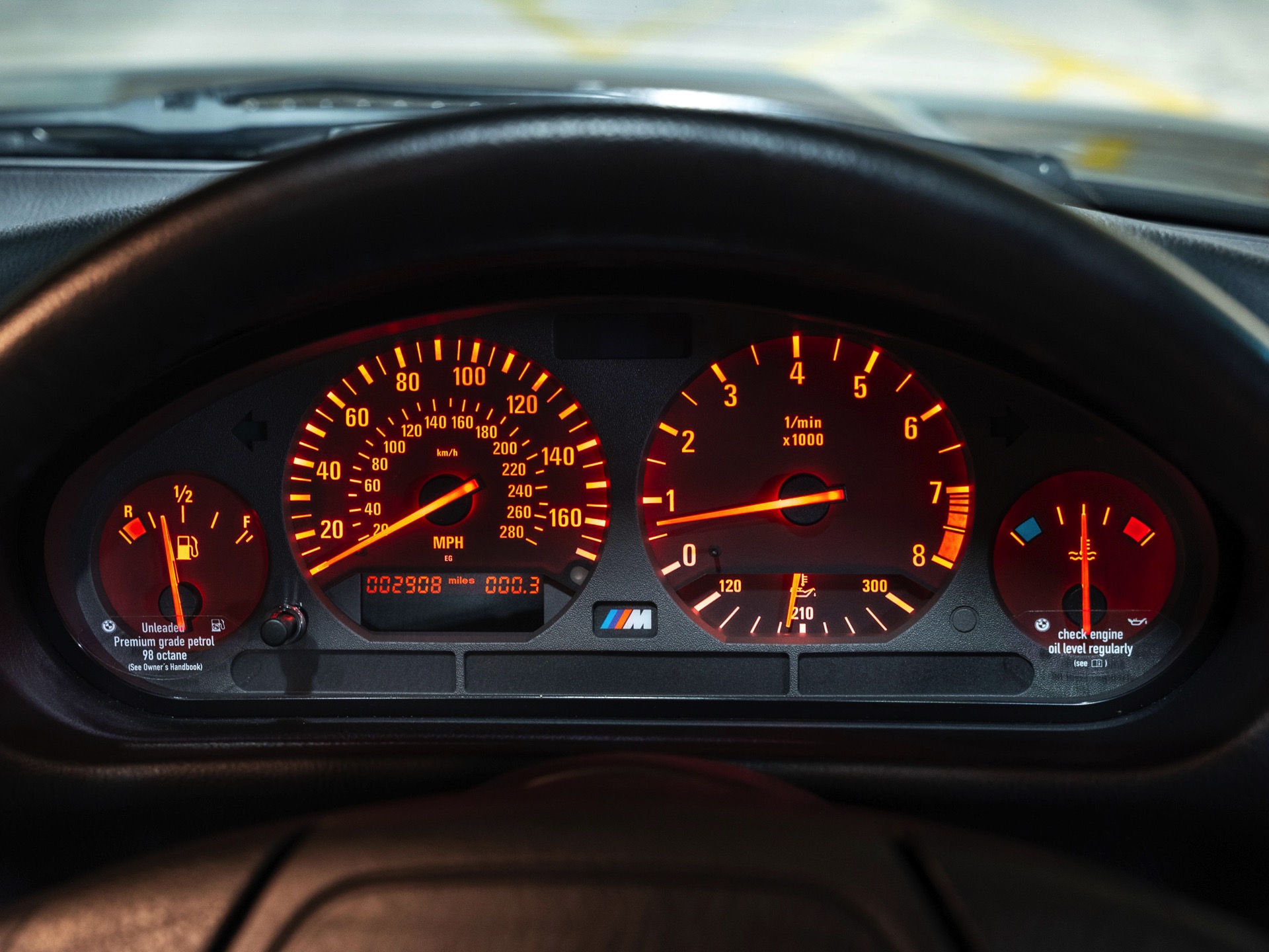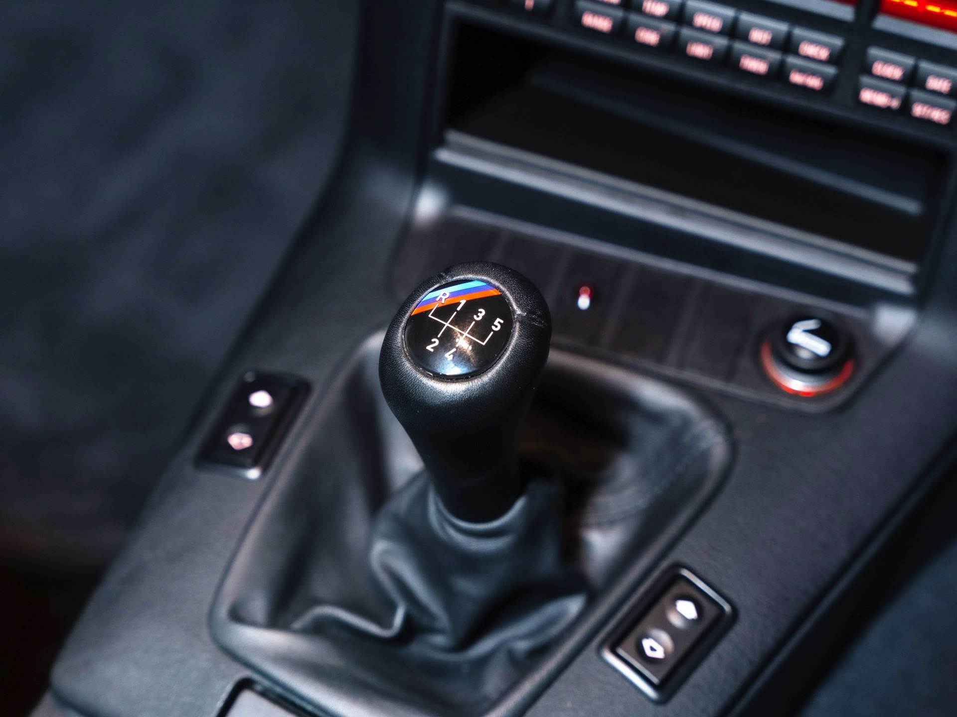Wie das 5-Gang-Getriebe zeigt, handelt es sich noch um den ursprünglichen M3 mit seiner 3,0 Liter großen Variante des Reihensechszylinders S50, der stärkere Motor mit 3,2 Liter Hubraum war als Handschalter stets mit 6 Gängen ausgerüstet. Auch so stehen aber satte 286 PS im Datenblatt und der Sprint von 0 auf 100 km/h gelingt in glatten 6 Sekunden.