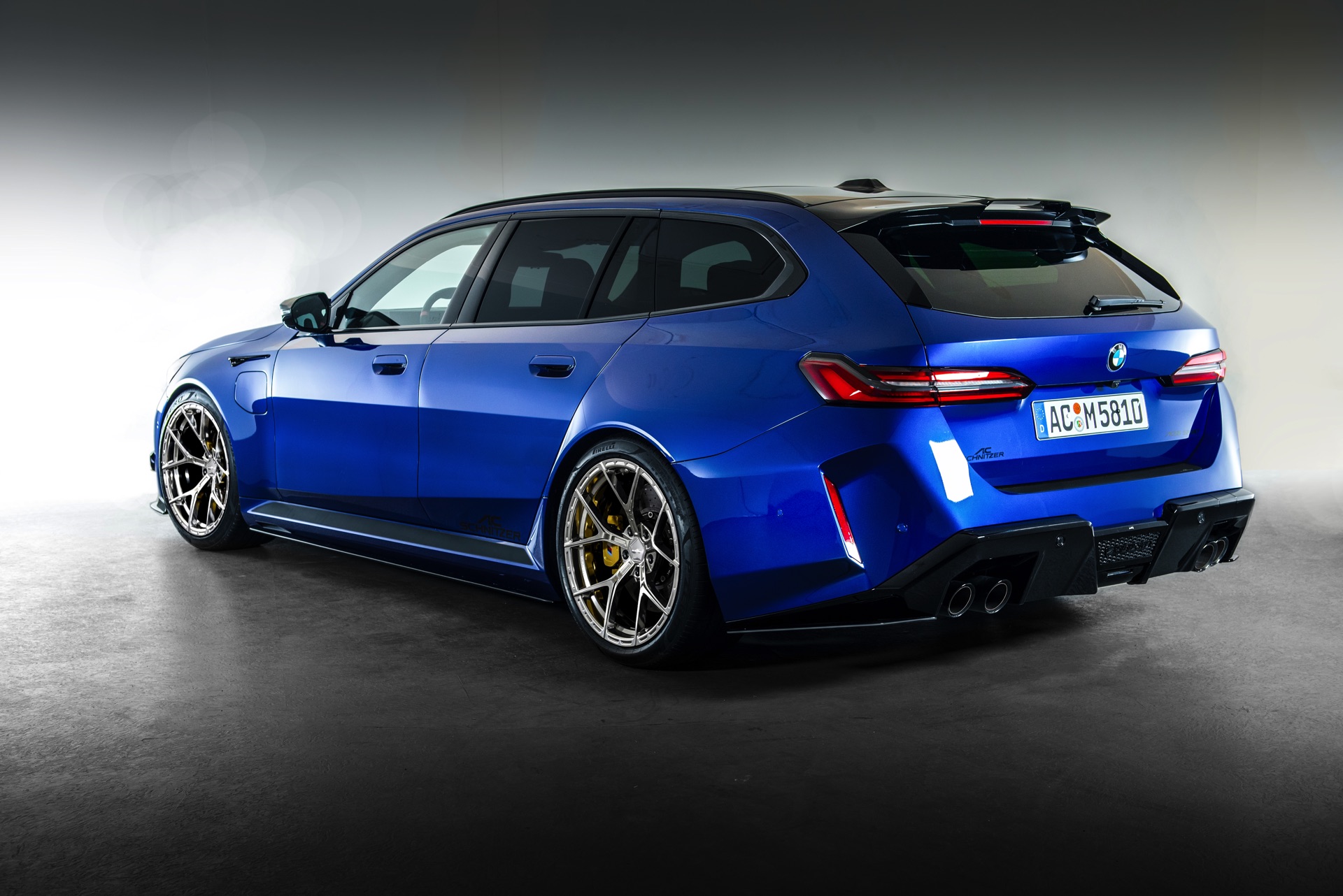 Passend zur Leistungssteigerung, die wie bei AC Schnitzer mit einer 3-jährigen Baugruppen-Garantie verbunden ist, gibt es einen neuen Sport-Nachschalldämpfer mit vier Carbon-ummantelten 110-Millimeter-Endrohren und Klappensteuerung. Optimal in Szene gesetzt wird die neue Abgasanlage von einem ganzen Paket an Aerodynamik-Komponenten: Für die Heckpartie des BMW M5 Touring gibt es einen dreiteiligen Diffusor-Einsatz und einen Dach-Heckspoiler, außerdem bietet AC Schnitzer passende Seitenschweller, einen Frontsplitter und Front Side Wings für noch mehr Überholprestige an.