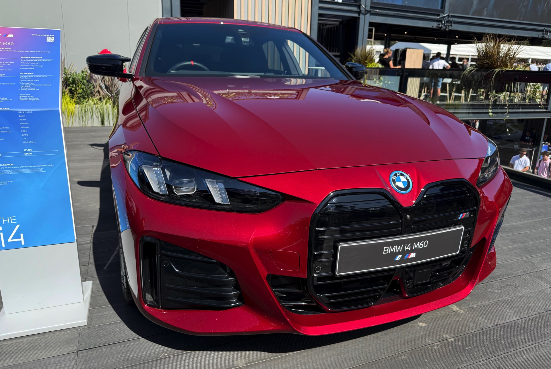 Beim Goodwood Festival of Speed feiert der neue BMW i4 M60 eine vergleichsweise stille ‘Weltpremiere’, die offiziell gar nicht so genannt wird. Passend dazu verzichten die Münchner auf eine prominente Platzierung im Rampenlicht, obwohl es sich um den Nachfolger des meistverkauften M-Modells der letzten Jahre handelt. Da es das Wetter in diesem Jahr besonders gut mit den Goodwood-Besuchern meint, gibt es statt Rampenlicht immerhin volles Sonnenlicht – was auch die Lackierung in Fire Red richtig zum Strahlen bringt.