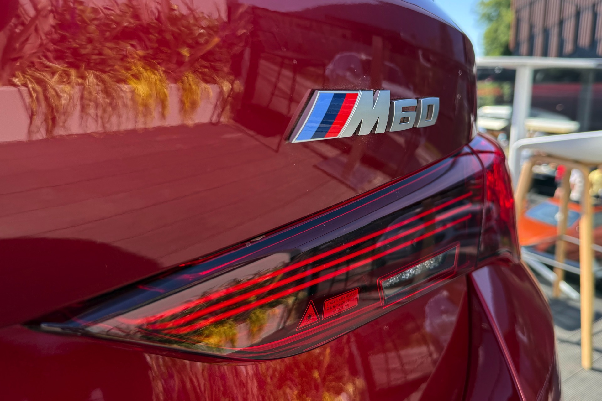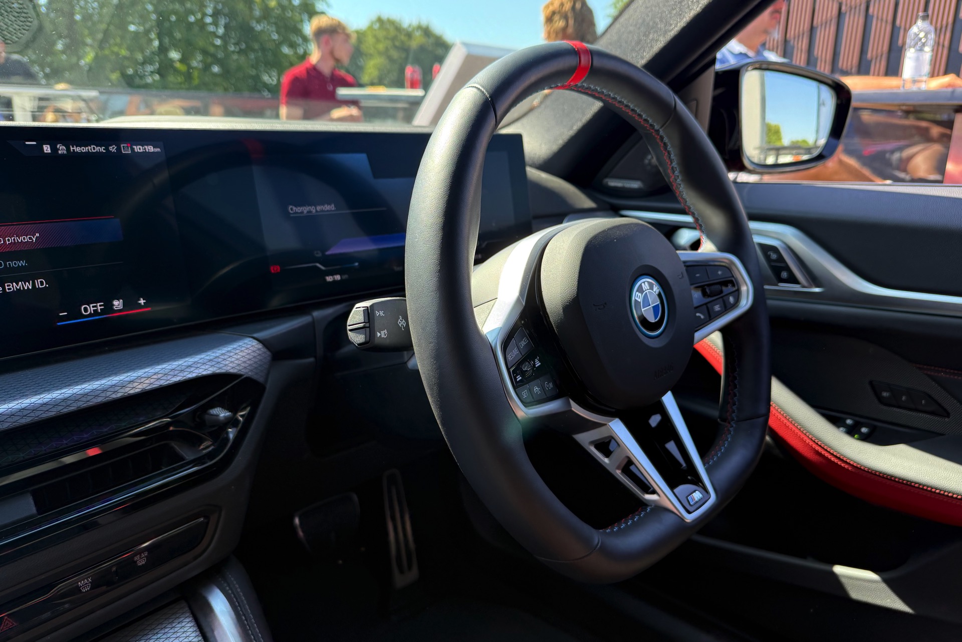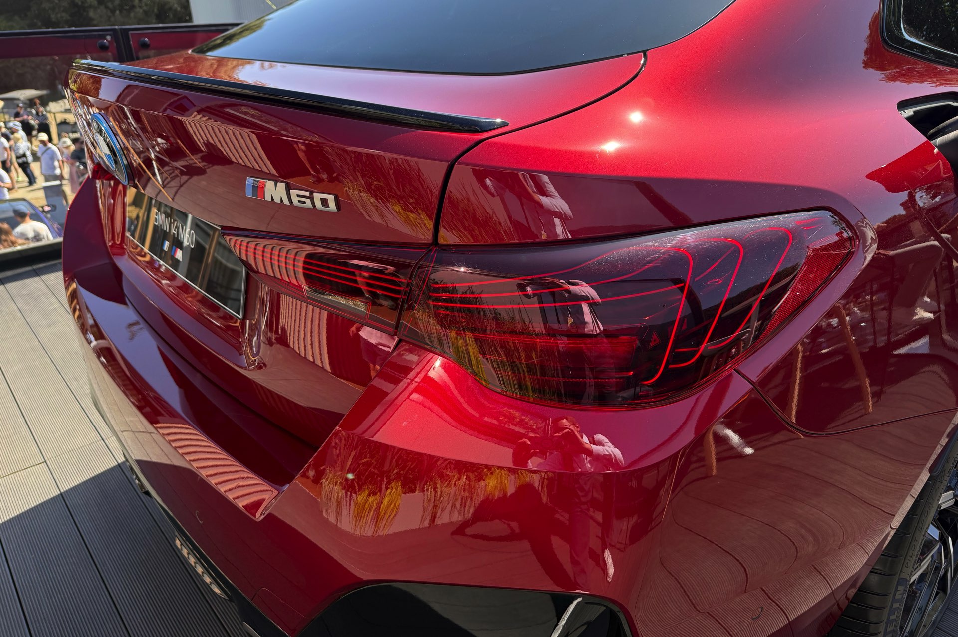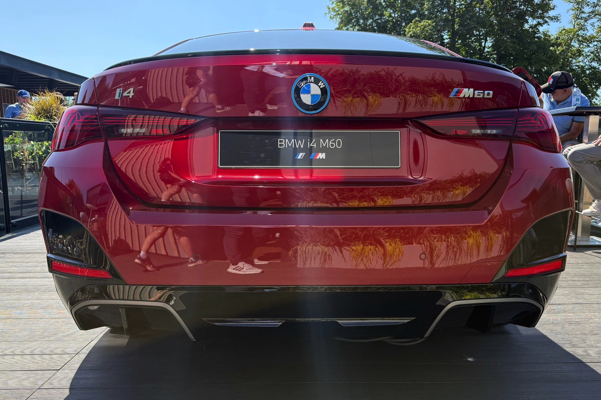 Beim Goodwood Festival of Speed 2025 glänzt der BMW i4 M60 in Fire Red Metallic, außerdem trägt er die 19 Zoll großen Leichtmetallräder Y-Speiche 859 M Bicolor: