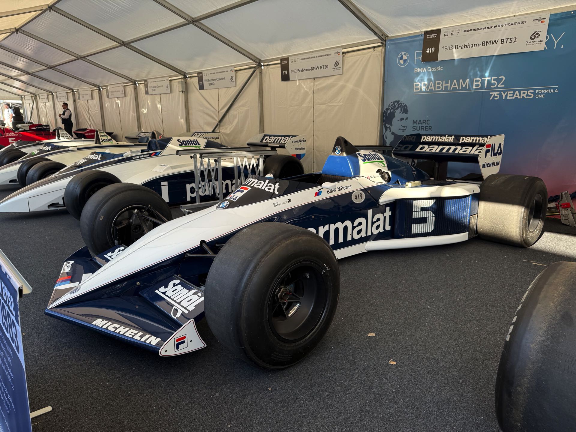 In einer noch höheren Liga als die gezeigten Tourenwagen präsentierte sich eine ganze Reihe historischer Formel 1-Rennwagen mit BMW Power, darunter auch der Brabham BT52, mit dem Nelson Piquet 1983 zur ersten F1-Weltmeisterschaft mit einem Turbo-Motor fuhr.