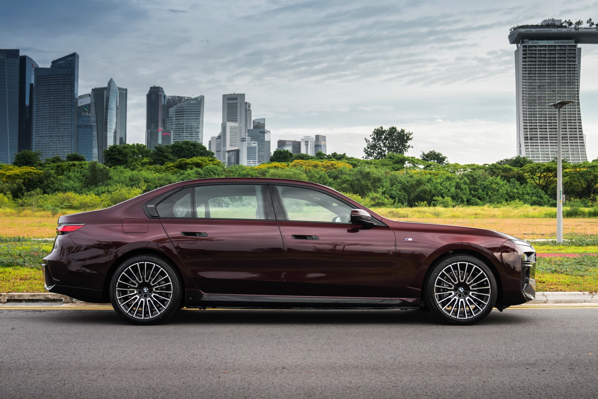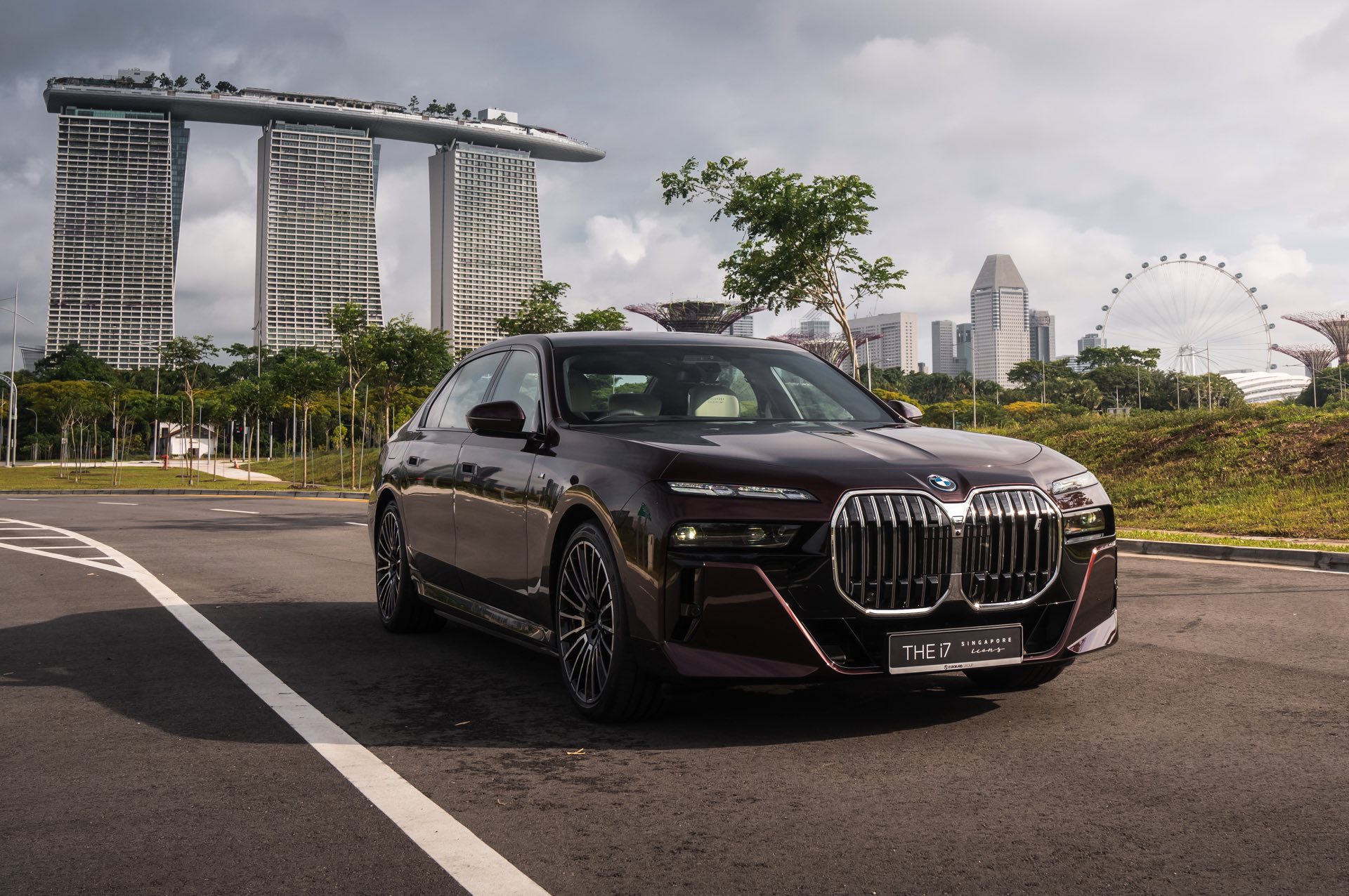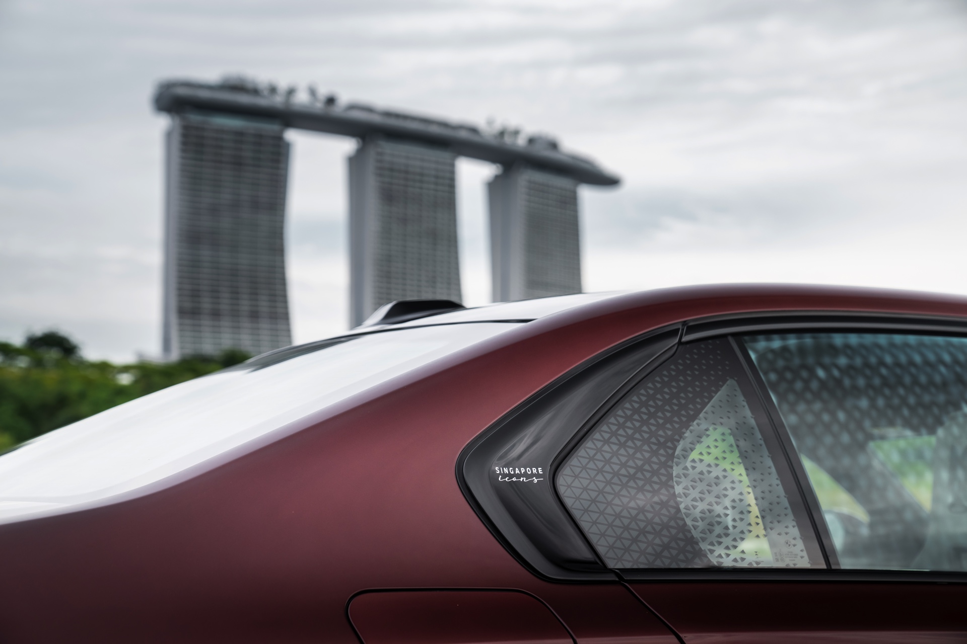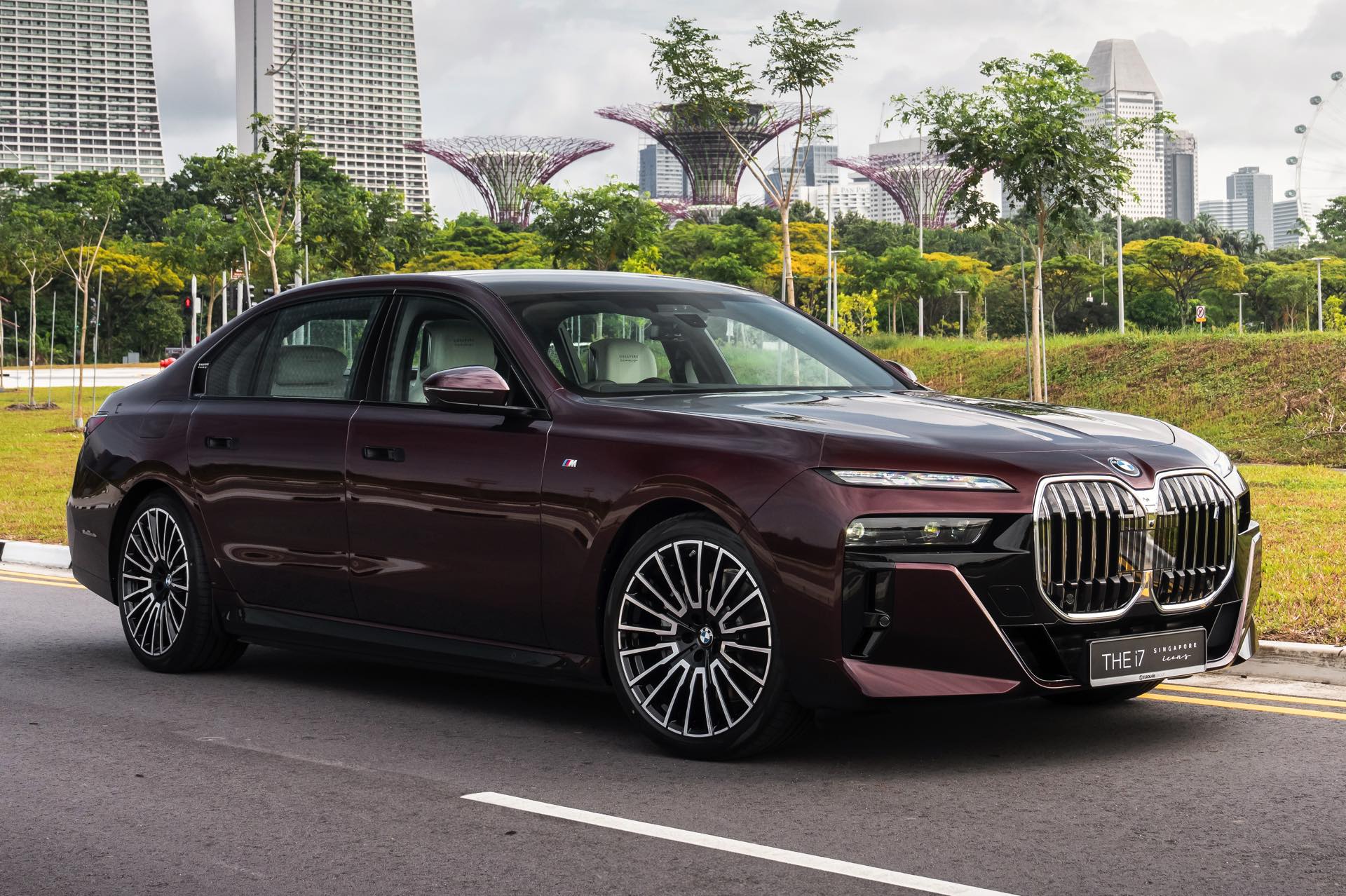 Madeira Red stammt ursprünglich aus dem beinahe unerschöpflichen Farbportfolio von Rolls-Royce, unter dem Farbcode R20 steht es aber auch als Sonderwunsch-Farbe von BMW Individual zur Wahl. Das intensive Dunkelrot ist von der Farbe des Rotweins aus Madeira sowie fast schon schwarzer Kirschen inspiriert. In den Lack sind metallische Flakes integriert, die nur im direkten Sonnenlicht in Erscheinung treten und für einen besonderen Glanz sorgen. Zur Exklusivität des BMW i7 Singapore Icons trägt bei, dass in der Metropole bisher kein anderer BMW in Madeira Red unterwegs ist – und zumindest als Neuwagen soll es auch dabei bleiben, denn die Farbe ist in Singapur ab sofort nicht mehr bestellbar.