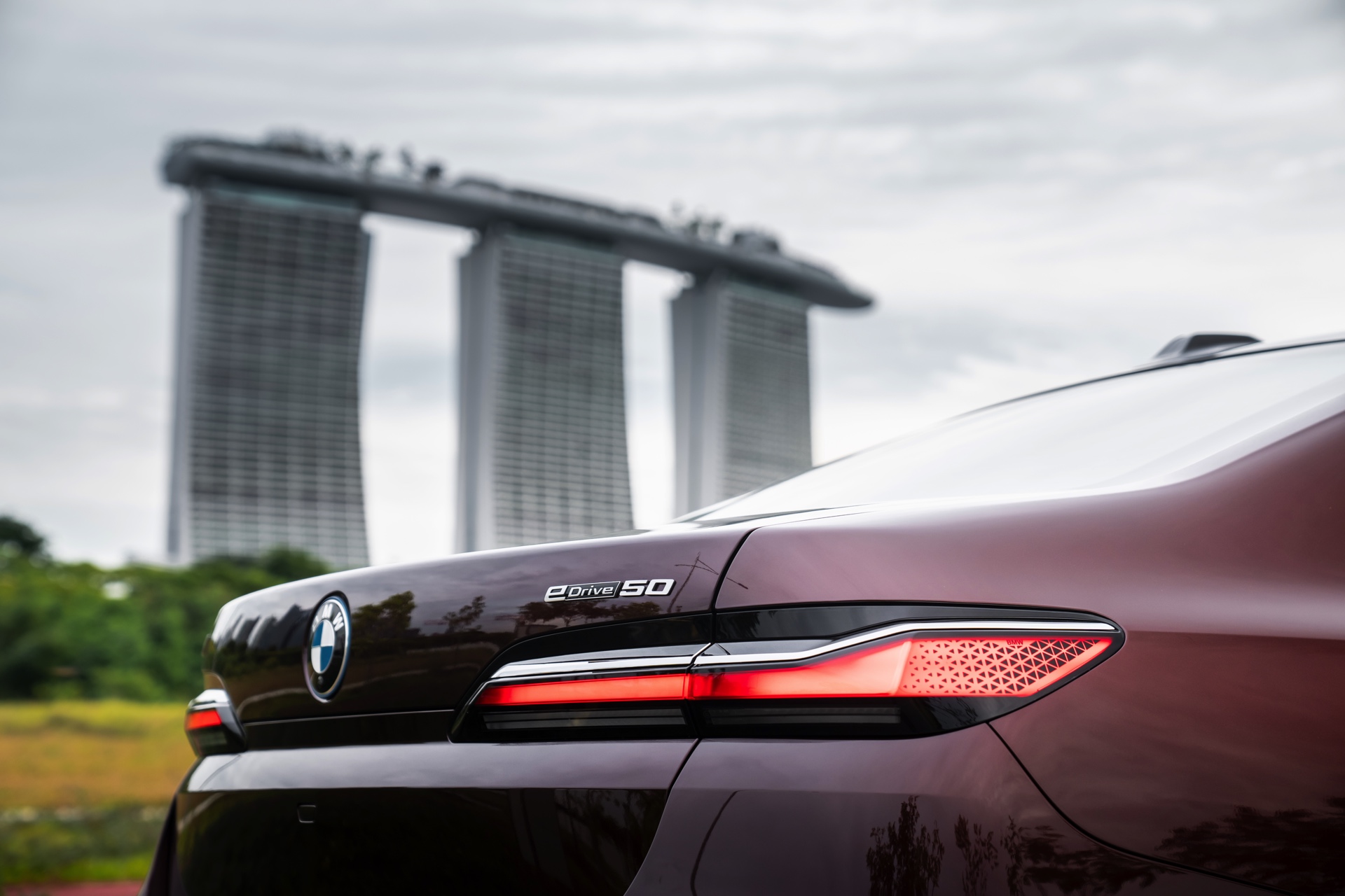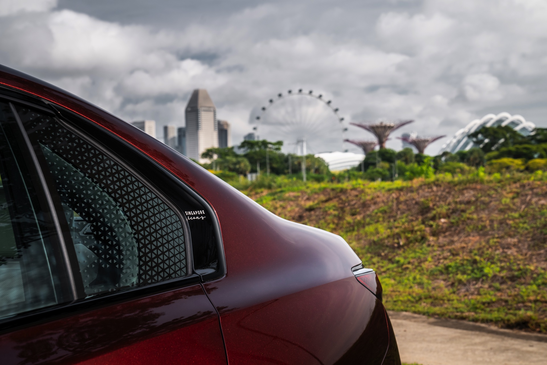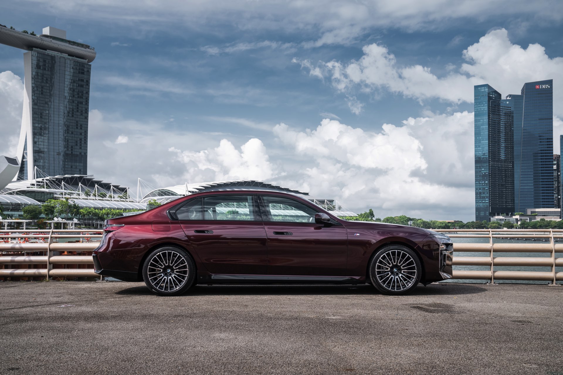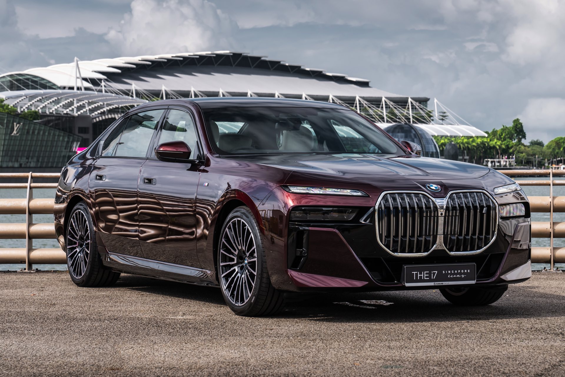 Madeira Red stammt ursprünglich aus dem beinahe unerschöpflichen Farbportfolio von Rolls-Royce, unter dem Farbcode R20 steht es aber auch als Sonderwunsch-Farbe von BMW Individual zur Wahl. Das intensive Dunkelrot ist von der Farbe des Rotweins aus Madeira sowie fast schon schwarzer Kirschen inspiriert. In den Lack sind metallische Flakes integriert, die nur im direkten Sonnenlicht in Erscheinung treten und für einen besonderen Glanz sorgen. Zur Exklusivität des BMW i7 Singapore Icons trägt bei, dass in der Metropole bisher kein anderer BMW in Madeira Red unterwegs ist – und zumindest als Neuwagen soll es auch dabei bleiben, denn die Farbe ist in Singapur ab sofort nicht mehr bestellbar.